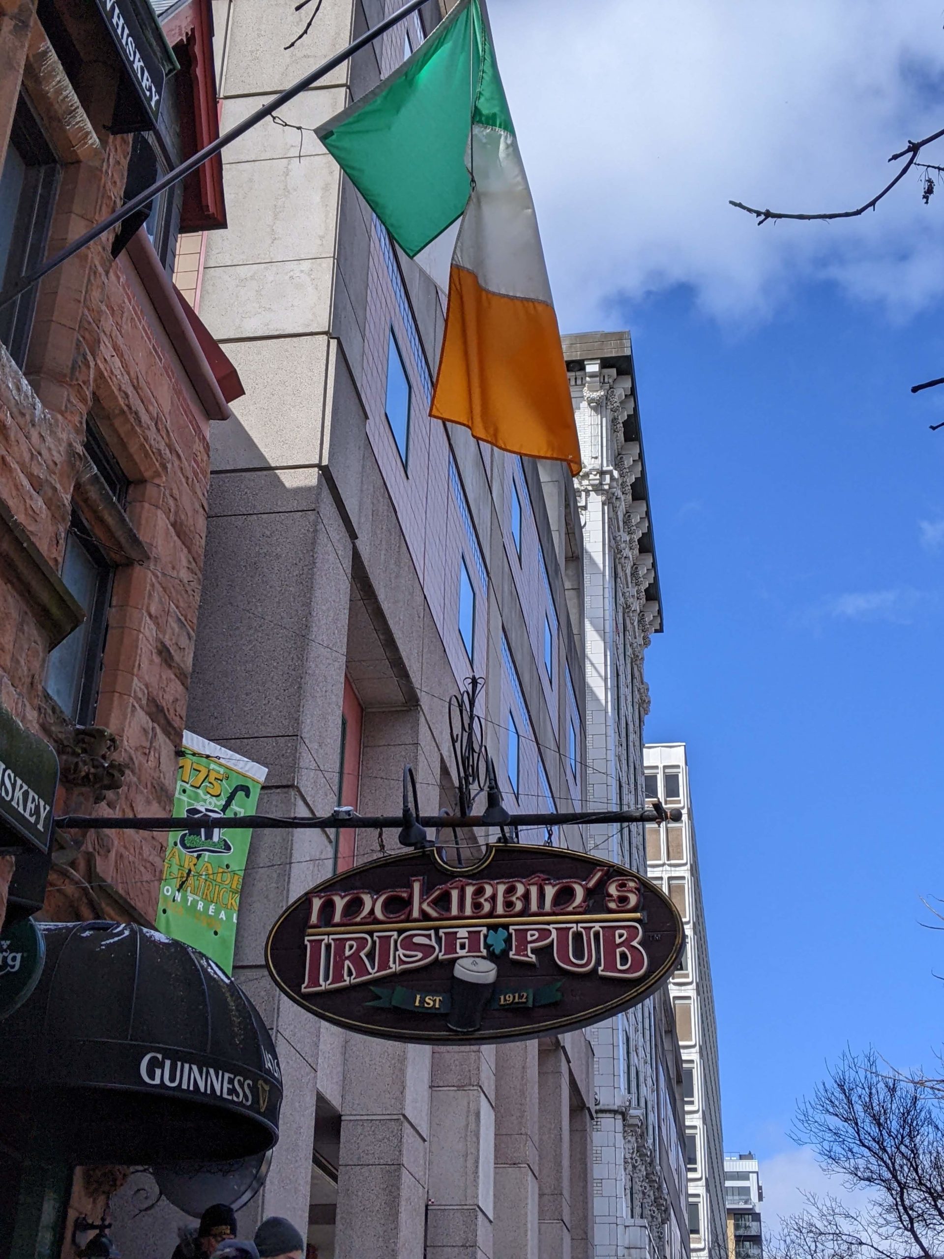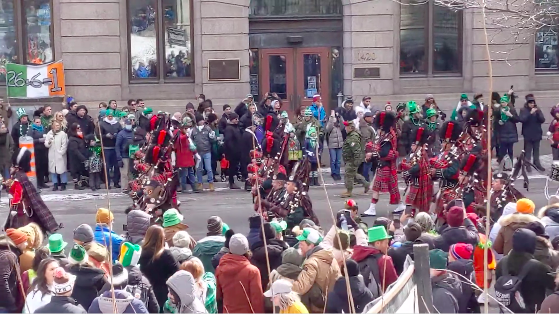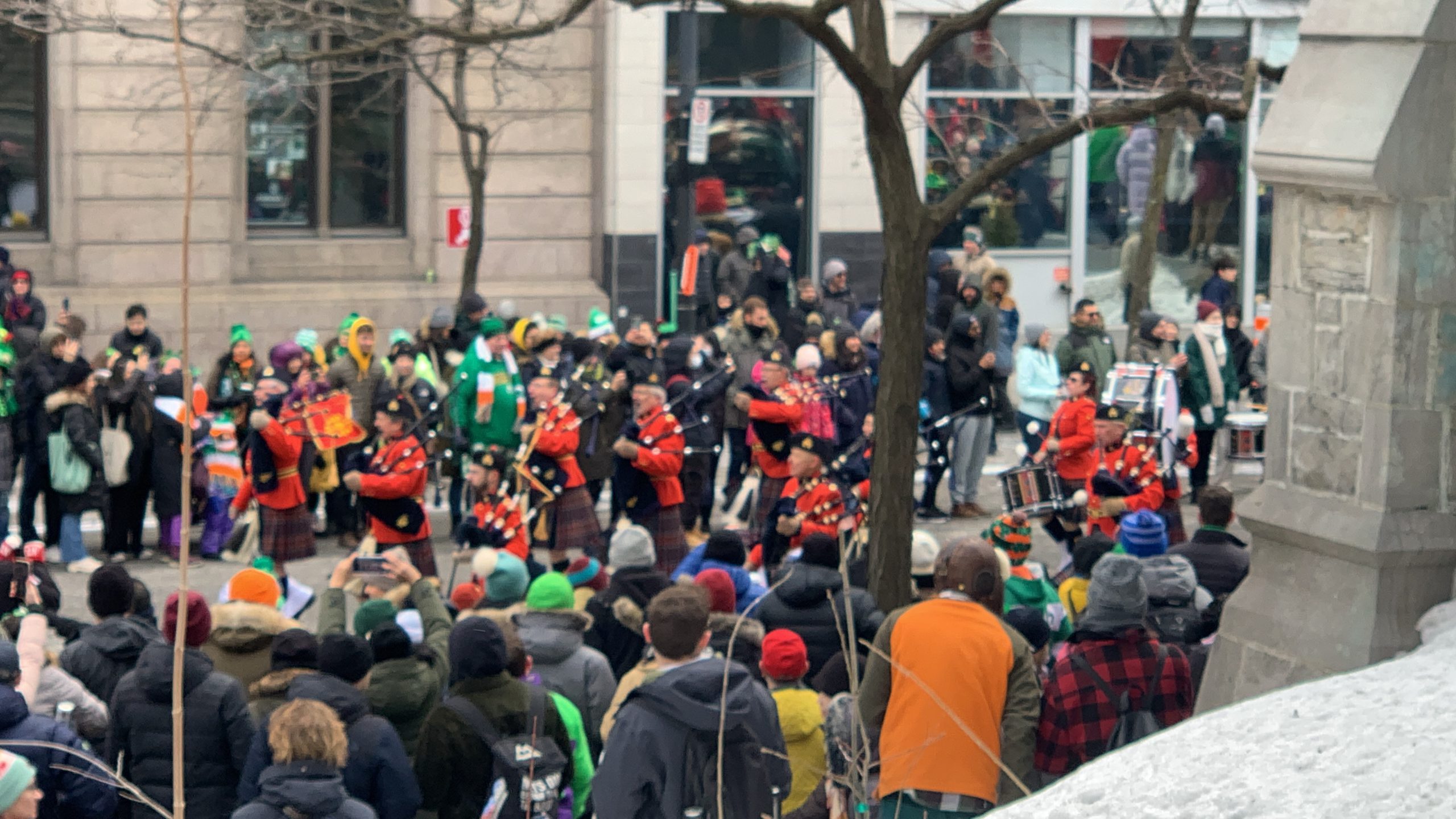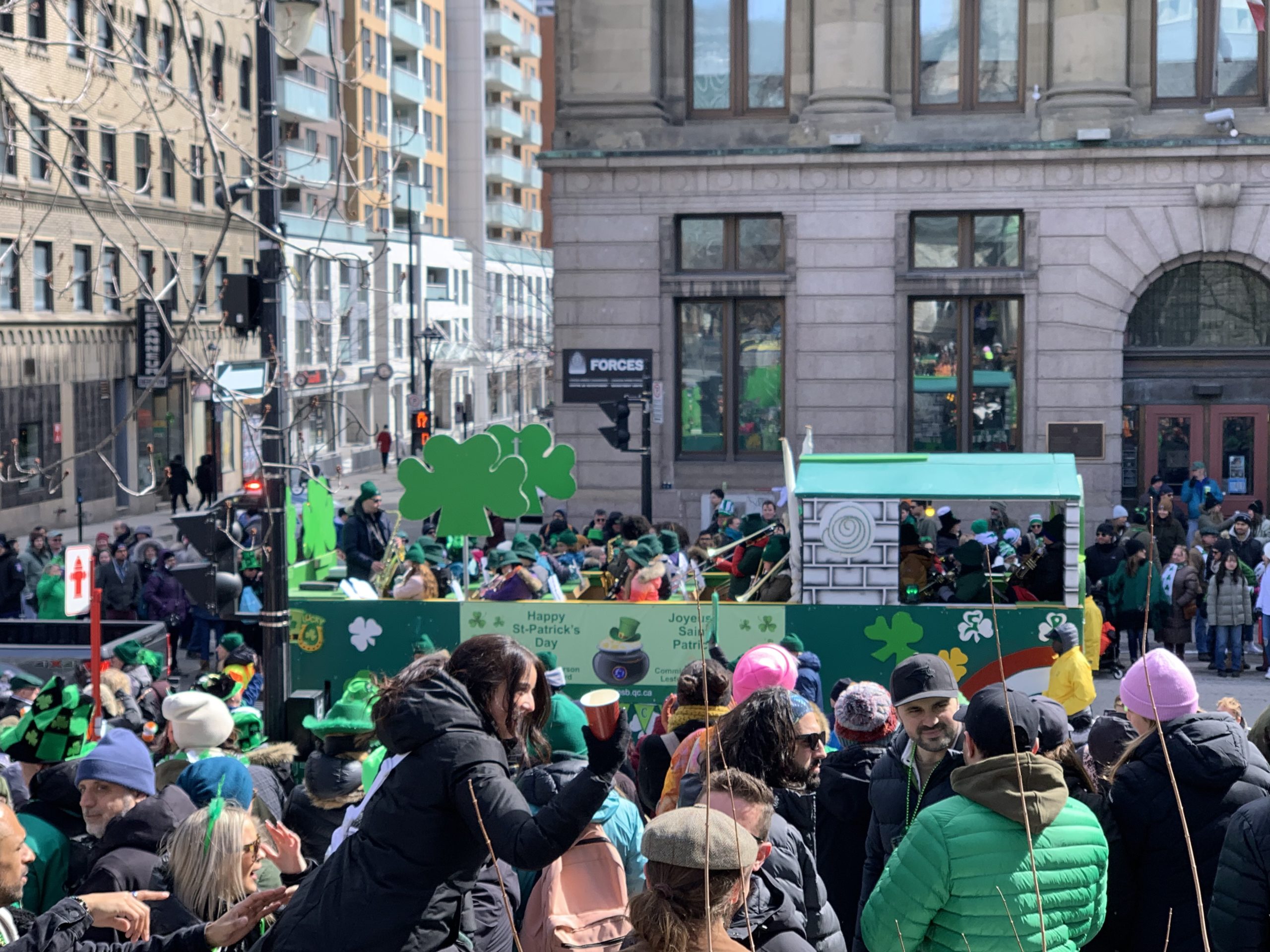 Nous sommes allés voir le défilé de la Saint Patrick ce midi. Il y avait beaucoup de vert, bien sûr, des fanfares avec de nombreuses cornemuses, et plusieurs chars bien décorés. Les enfants ont bien aimé, si ce n’est qu’il a fait particulièrement froid (-6°C environ), et que nous étions un peu sous-équipés ! Oups !