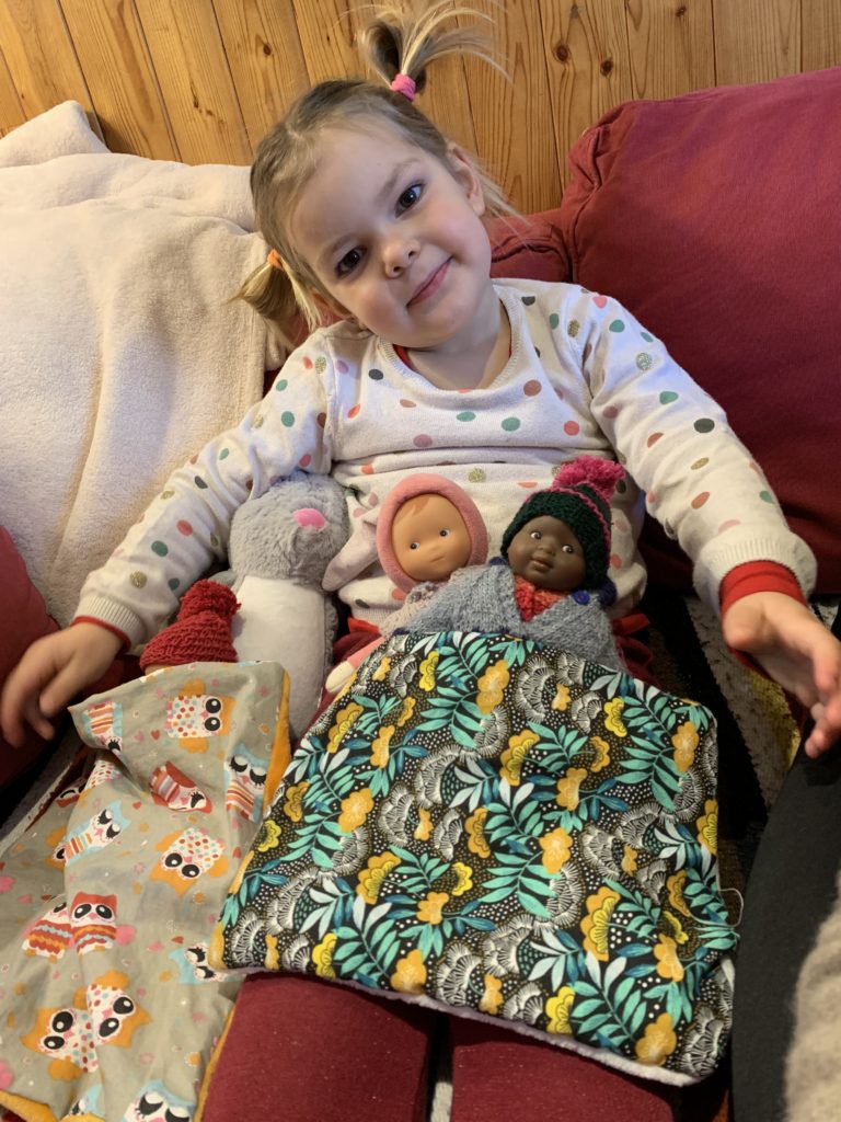 Les soirées sont un peu plus difficile pour Odile depuis le début de l’école, car le soir je dois davantage partager mon attention entre les 3 enfants, tandis que quand Émile et Lucie étaient avec moi toute la journée, elle était toujours la reine de la soirée ! Le matin également, nous sommes davantage minutés par le début de l’école, donc moins sereins.