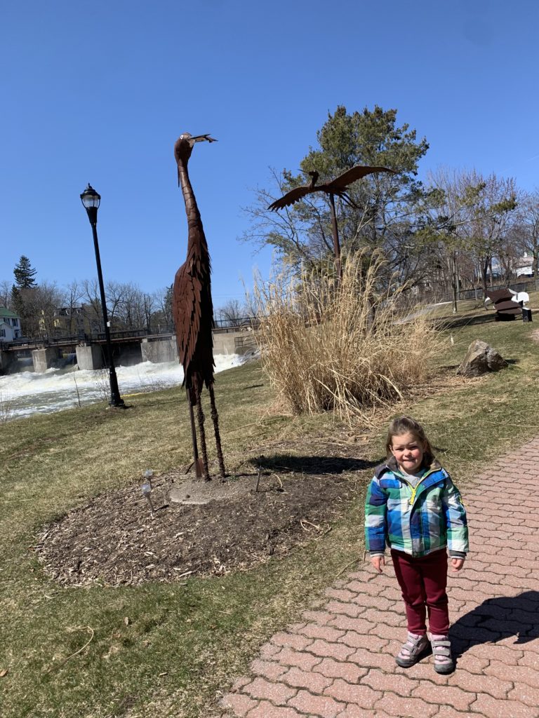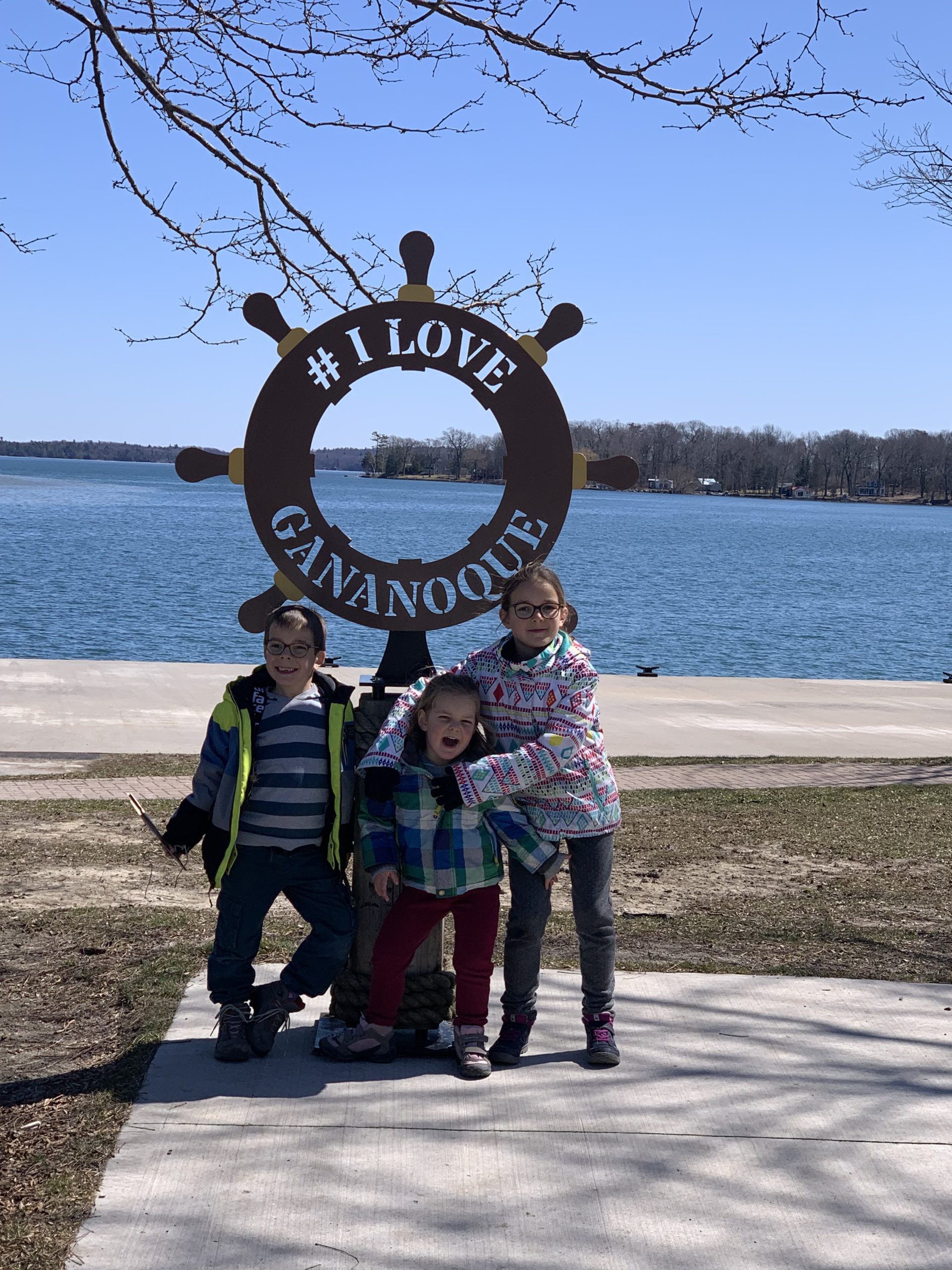 Nous sommes ensuite allés nous promener à Gananoque. Nous y avons visité le musée sur l’histoire de la région, où les enfants ont trouvé beaucoup de choses amusantes. Ils ont particulièrement aimé la partie sur les animaux locaux (beaucoup d’oiseaux que nous avons vus, et que nous manipulons dans le jeu Wingspan), et celle avec des jouets plus ou moins anciens.