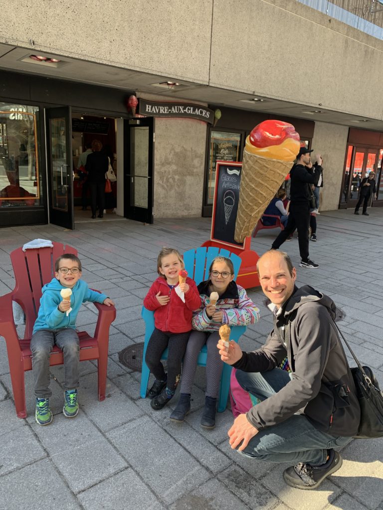 Après la pluie verglaçante de la semaine dernière, nous avons eu une journée à 27 °C cette semaine ! Pas facile à suivre cette météo : on alterne entre le tee-shirt et le manteau de neige; les running shoes et le pantalon de neige !