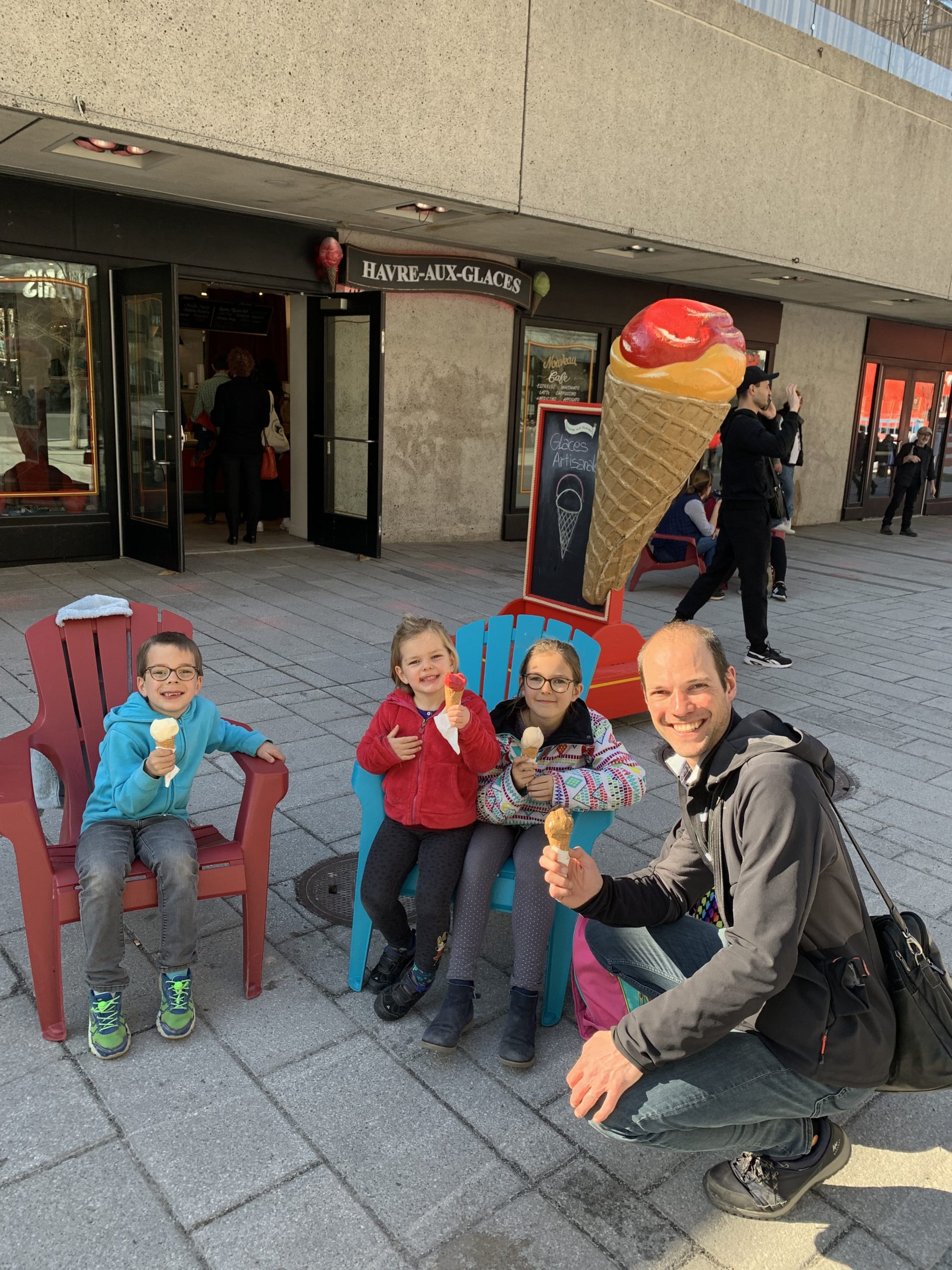Après la pluie verglaçante de la semaine dernière, nous avons eu une journée à 27 °C cette semaine ! Pas facile à suivre cette météo : on alterne entre le tee-shirt et le manteau de neige; les running shoes et le pantalon de neige !