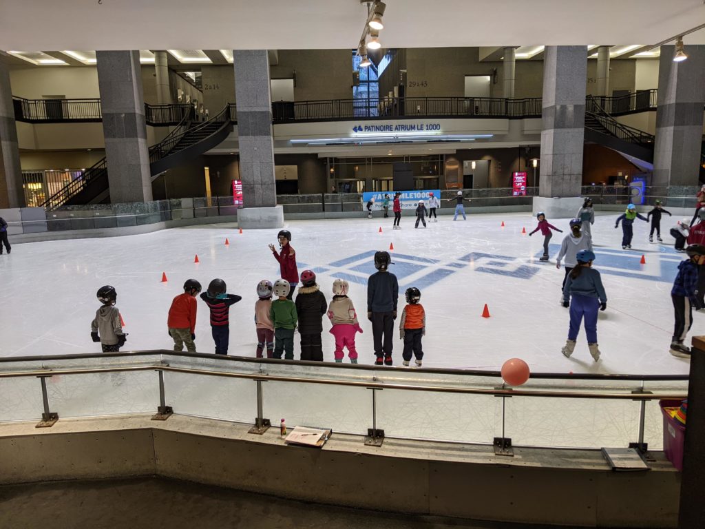 Lundi soir, premier cours de la nouvelle session de patin. Émile et Lucie sont inscrits tous les deux, mais nous nous y sommes pris trop tard pour Odile (nous avons surtout compris trop tard que nous aurions aussi pu l’inscrire elle, bien que l’âge minimal indiqué était 5 ans … dommage !). Émile est donc dans le groupe de Théo, et Lucie dans celui de Paul.