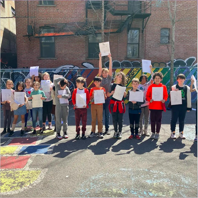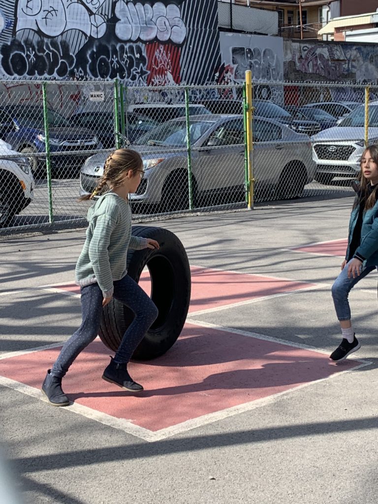 Et voici un aperçu de Lucie dans sa cours de récréation : un cours d’art la semaine dernière, dont les photos ont été partagées par sa maîtresse, et une récréation juste avant la fin de la journée, que j’ai vu en arrivant un peu en avance.