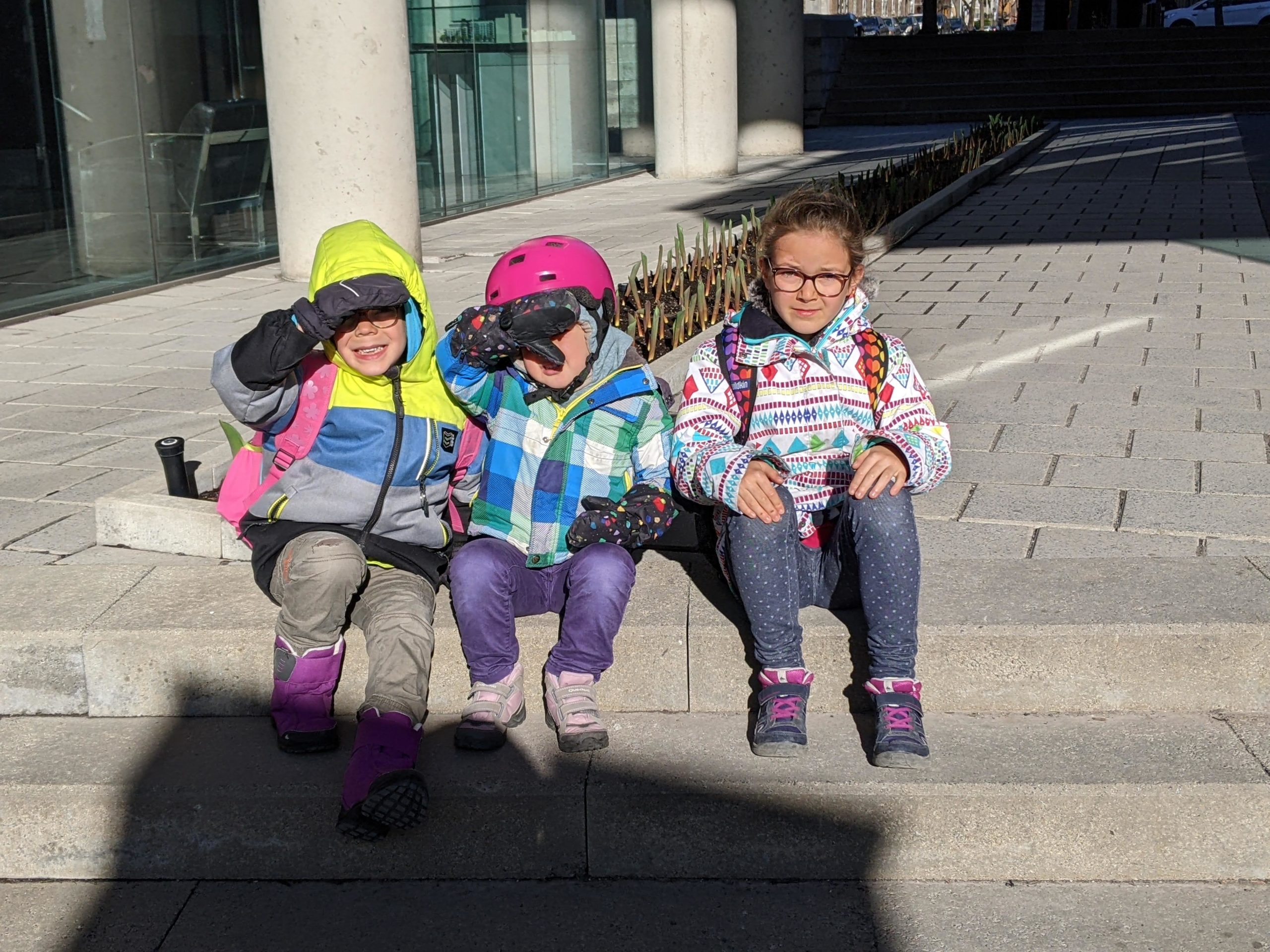 Et voici un aperçu de Lucie dans sa cours de récréation : un cours d’art la semaine dernière, dont les photos ont été partagées par sa maîtresse, et une récréation juste avant la fin de la journée, que j’ai vu en arrivant un peu en avance.