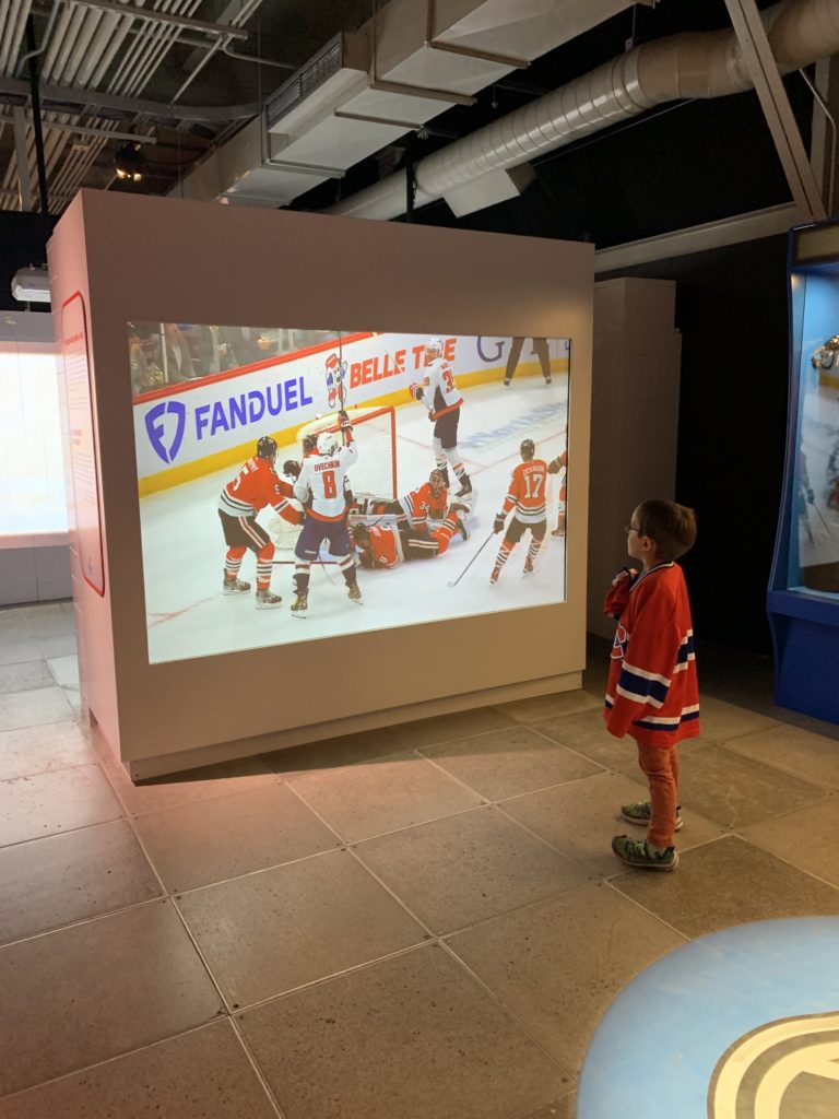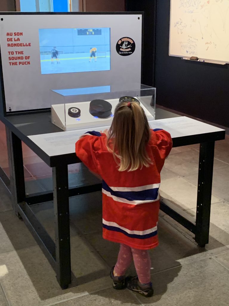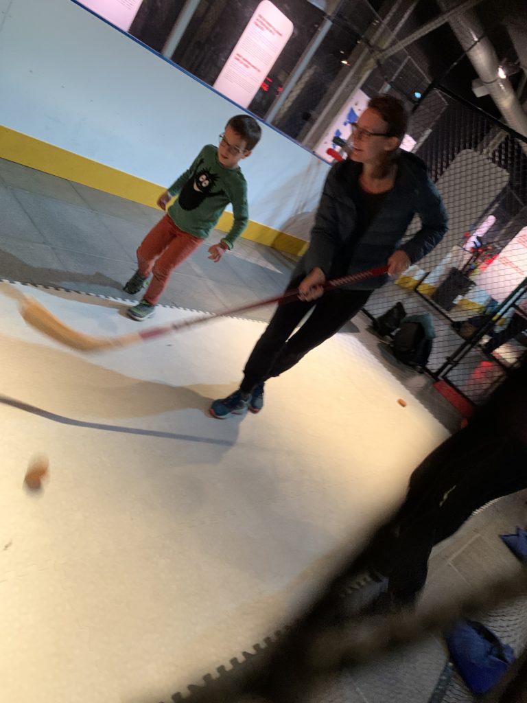 Nous sommes aussi aller dans la zone Explore, puis faire le tour de l’exposition sur le hockey. Les enfants sont comme à la maison dans ce musée maintenant 😉