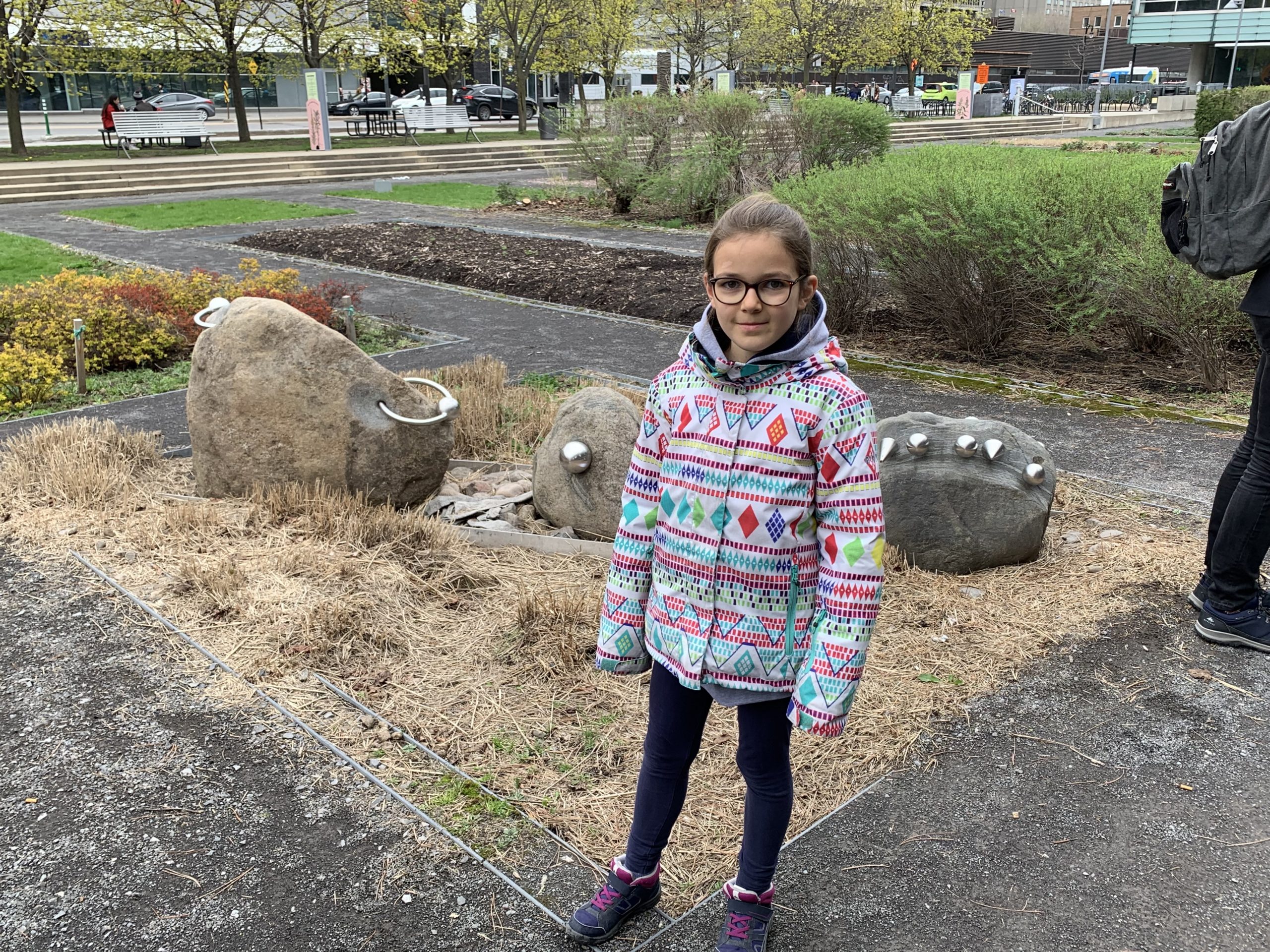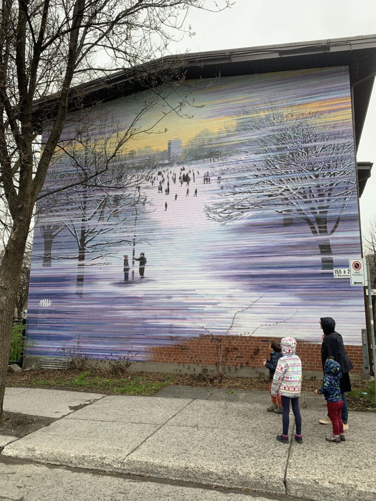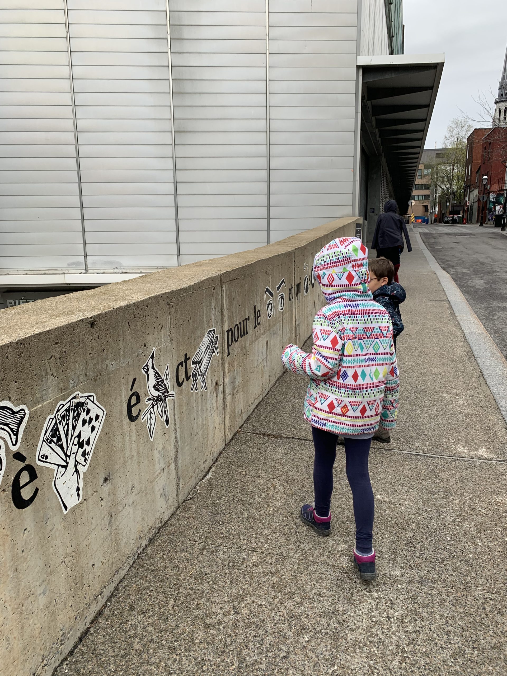 Il a bien plu aujourd’hui encore, mais nous avons réussi à faire un petit tour entre les gouttes pour montrer à Tata Agathe nos murales préférées dans le quartier. Nous avons même trouvé la dernière (celle de l’Été) de la série qu’il nous manquait 😉