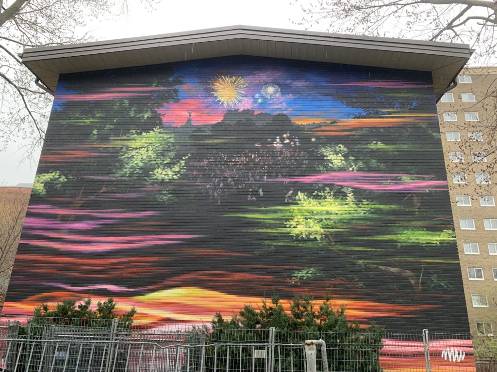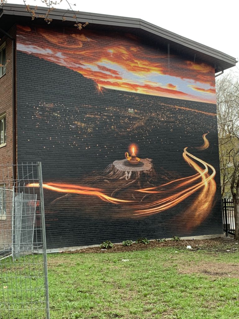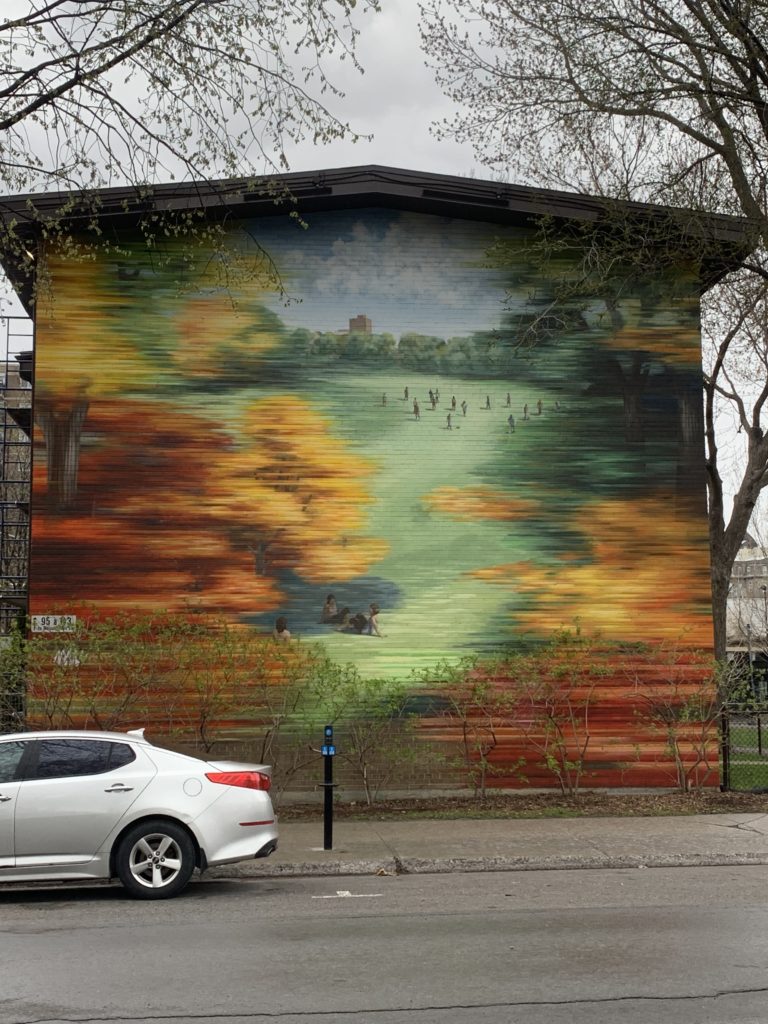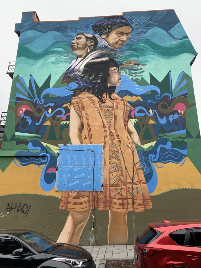 Il a bien plu aujourd’hui encore, mais nous avons réussi à faire un petit tour entre les gouttes pour montrer à Tata Agathe nos murales préférées dans le quartier. Nous avons même trouvé la dernière (celle de l’Été) de la série qu’il nous manquait 😉