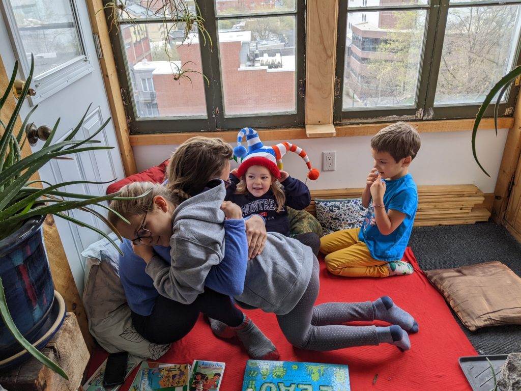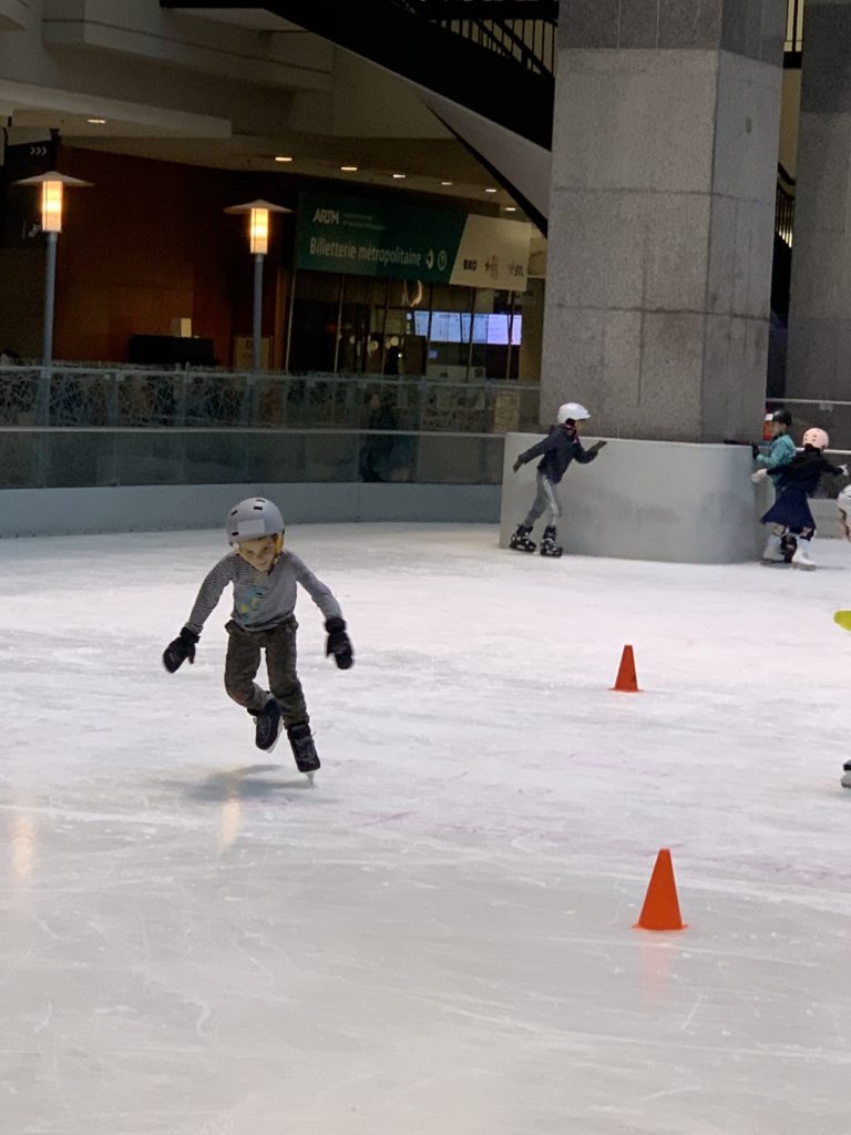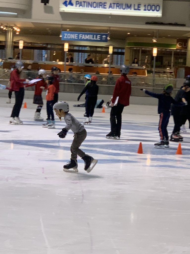 Nous sommes tous allés au cours de patin ce soir. Les enfants continuent leurs progrès, c’est chouette.