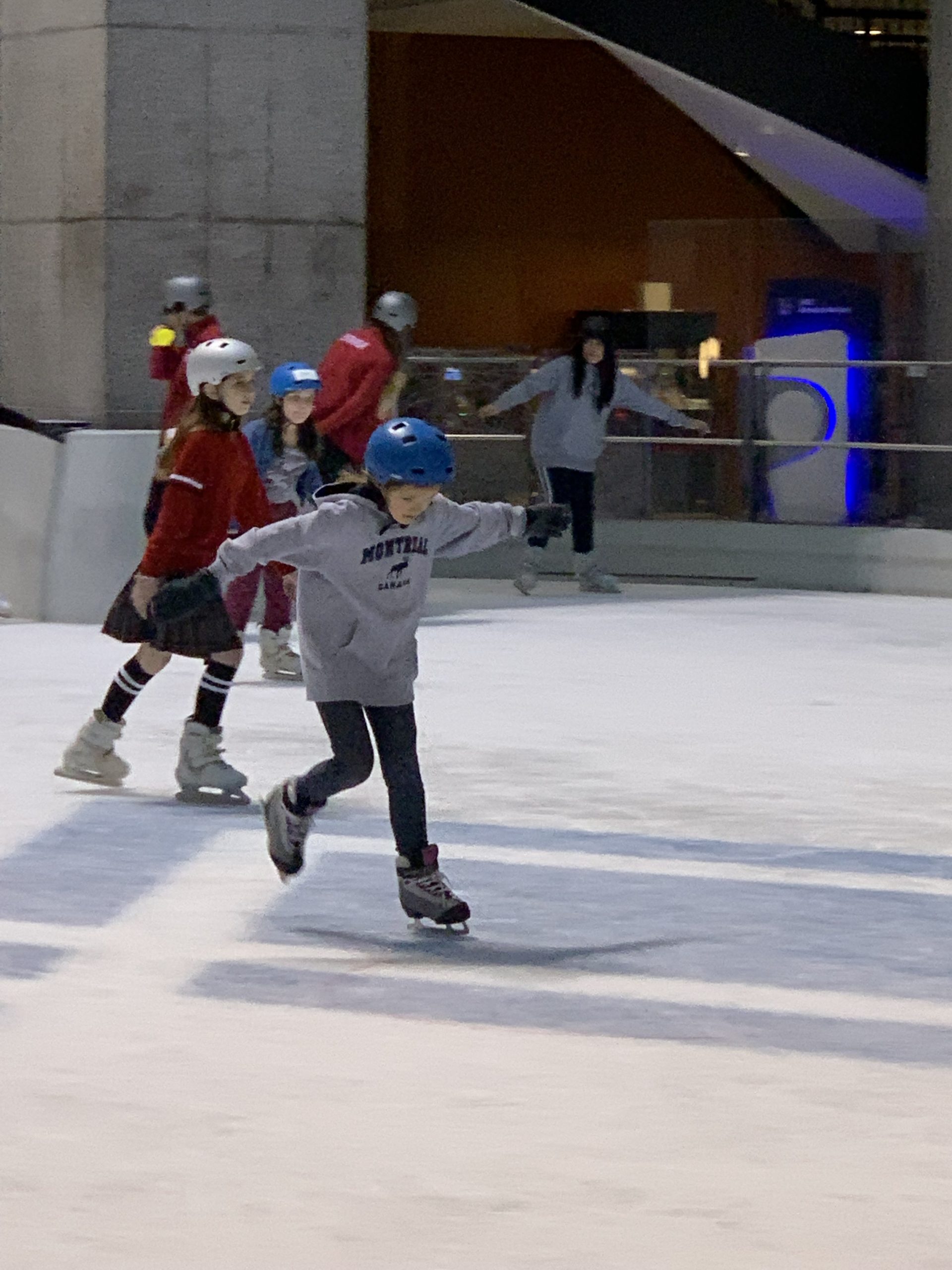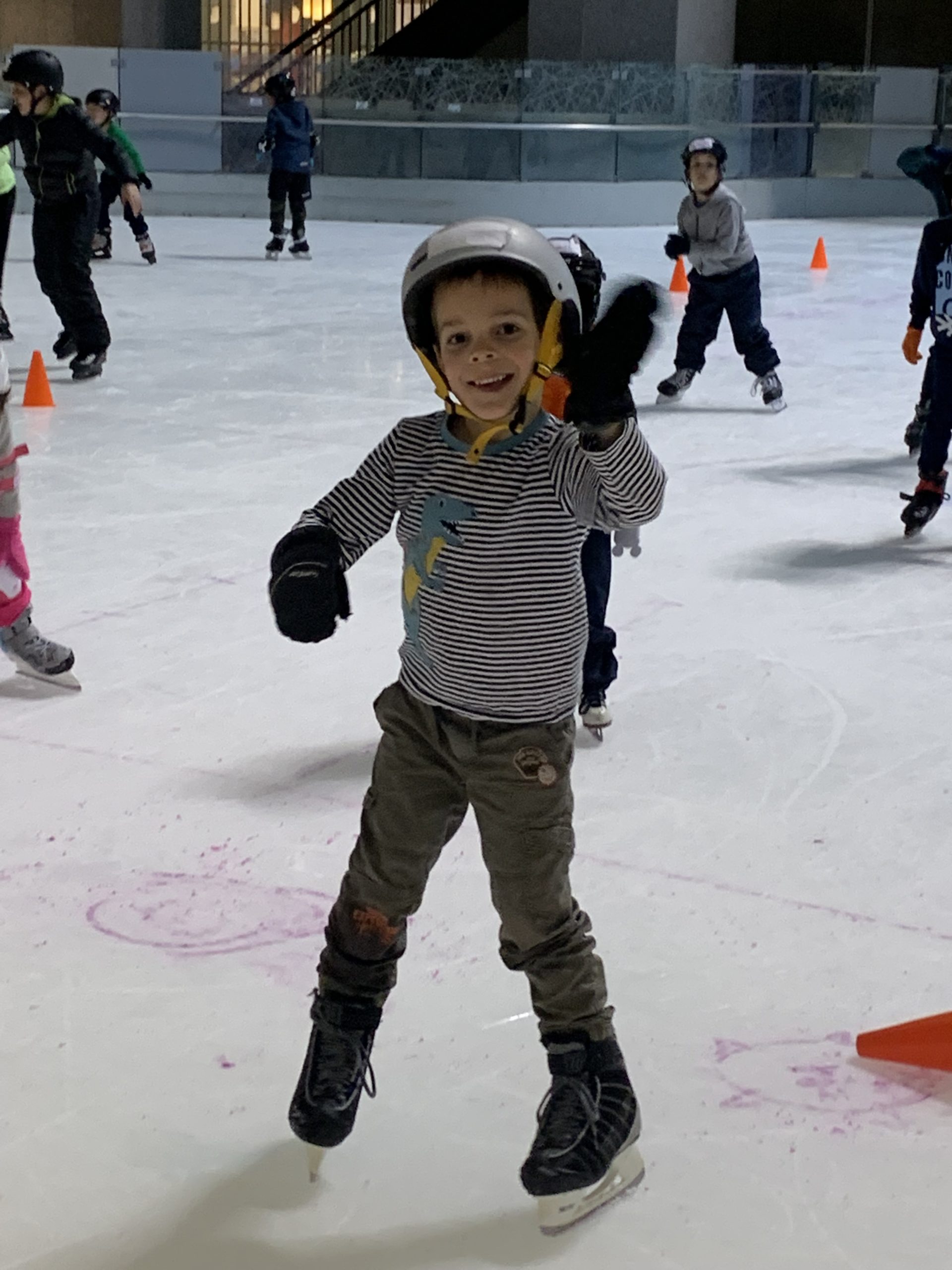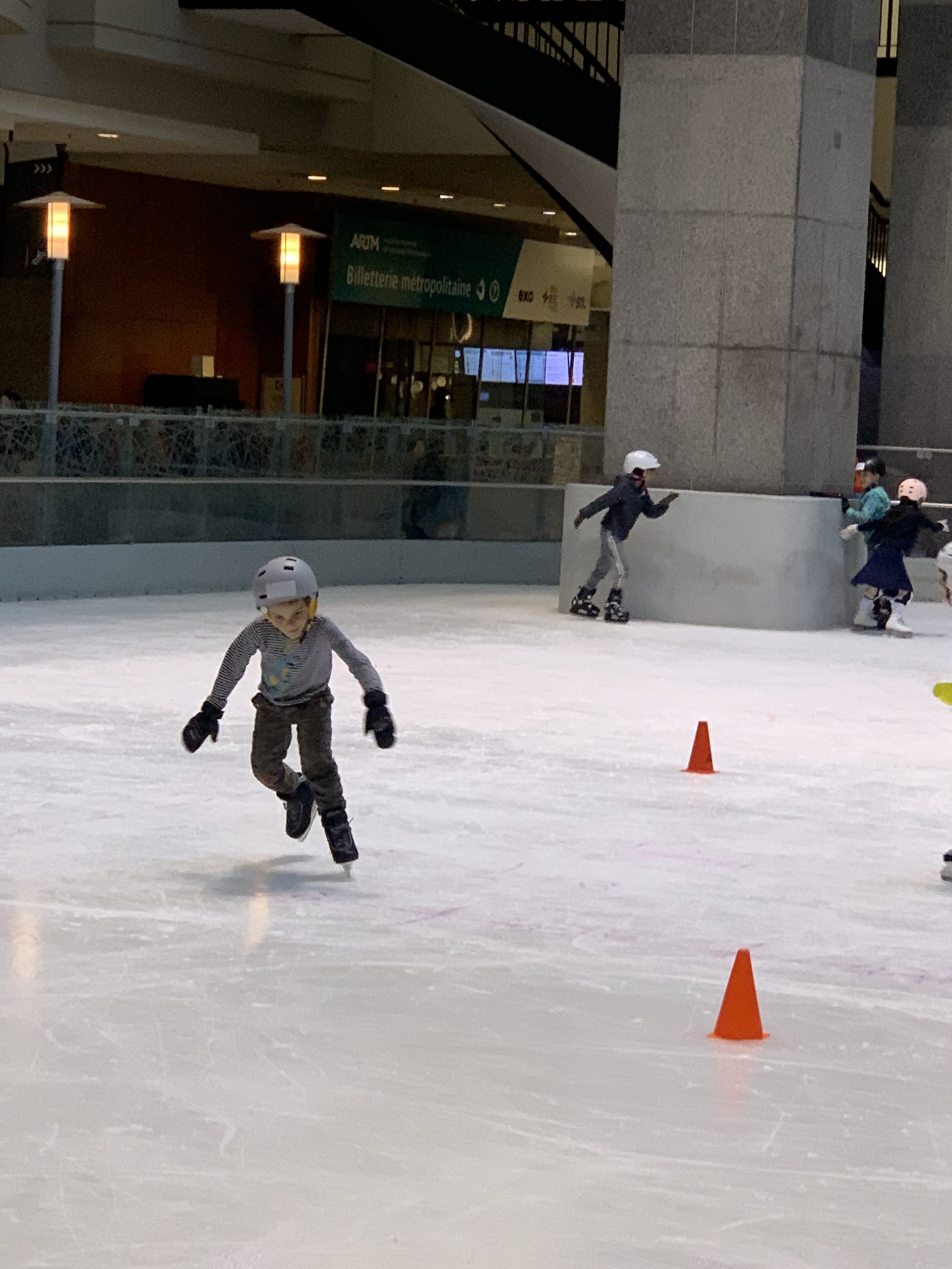 Nous sommes tous allés au cours de patin ce soir. Les enfants continuent leurs progrès, c’est chouette.