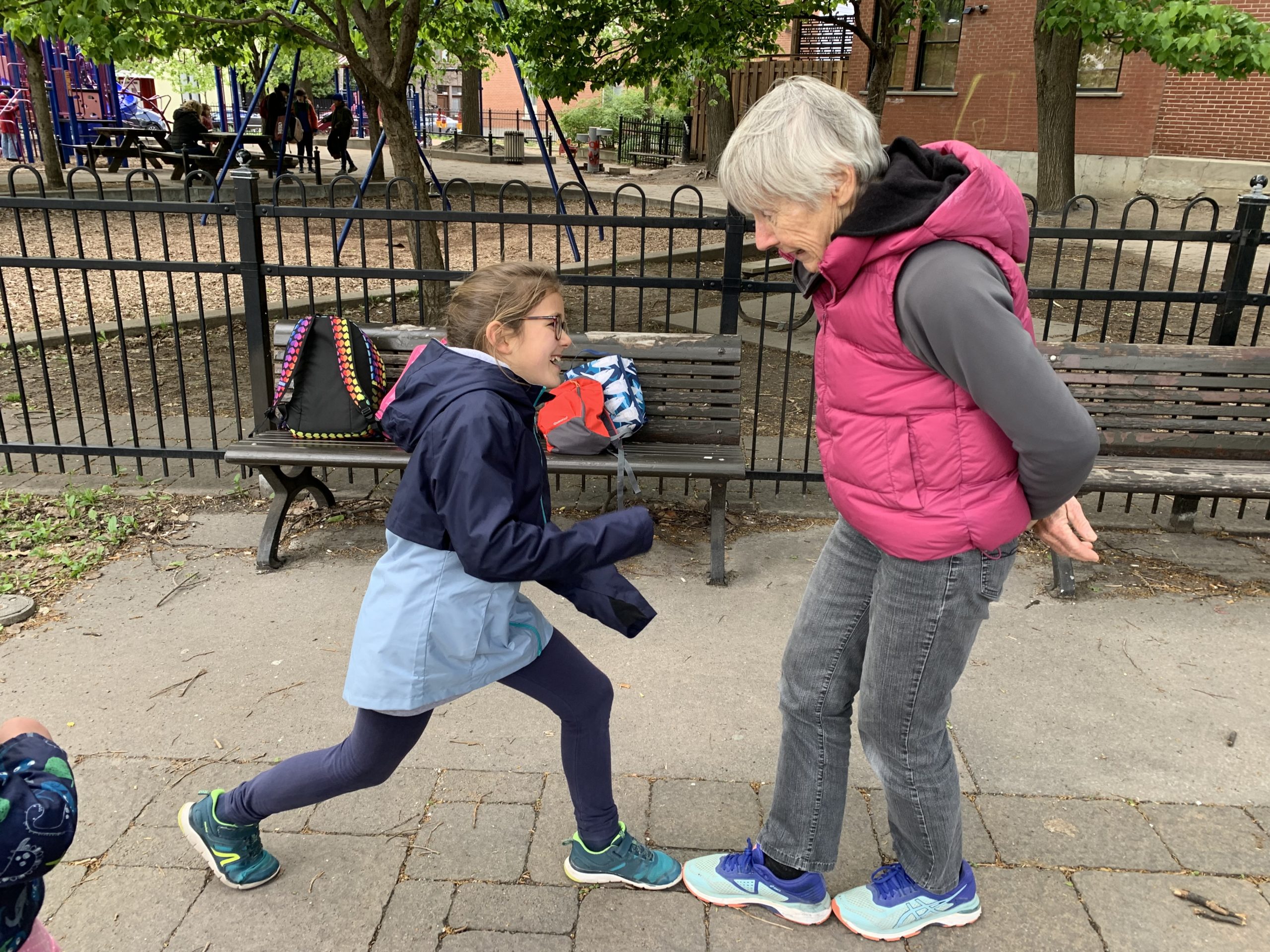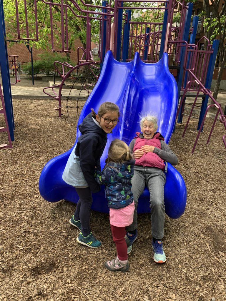 Grand-papa et grand-maman ont découvert le quartier, guidés par Odile, les aires de jeux, l’école d’Émile et Lucie et la garderie d’Odile.