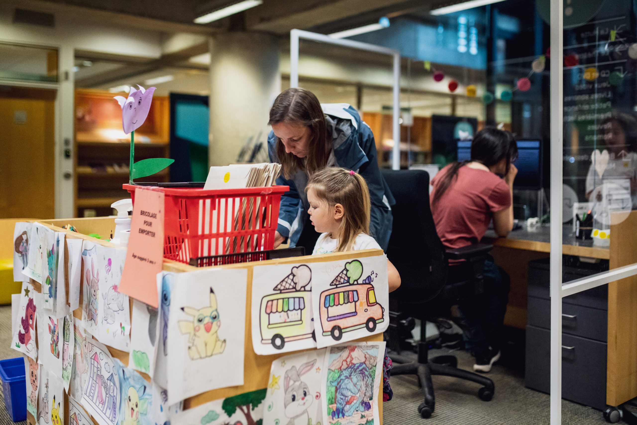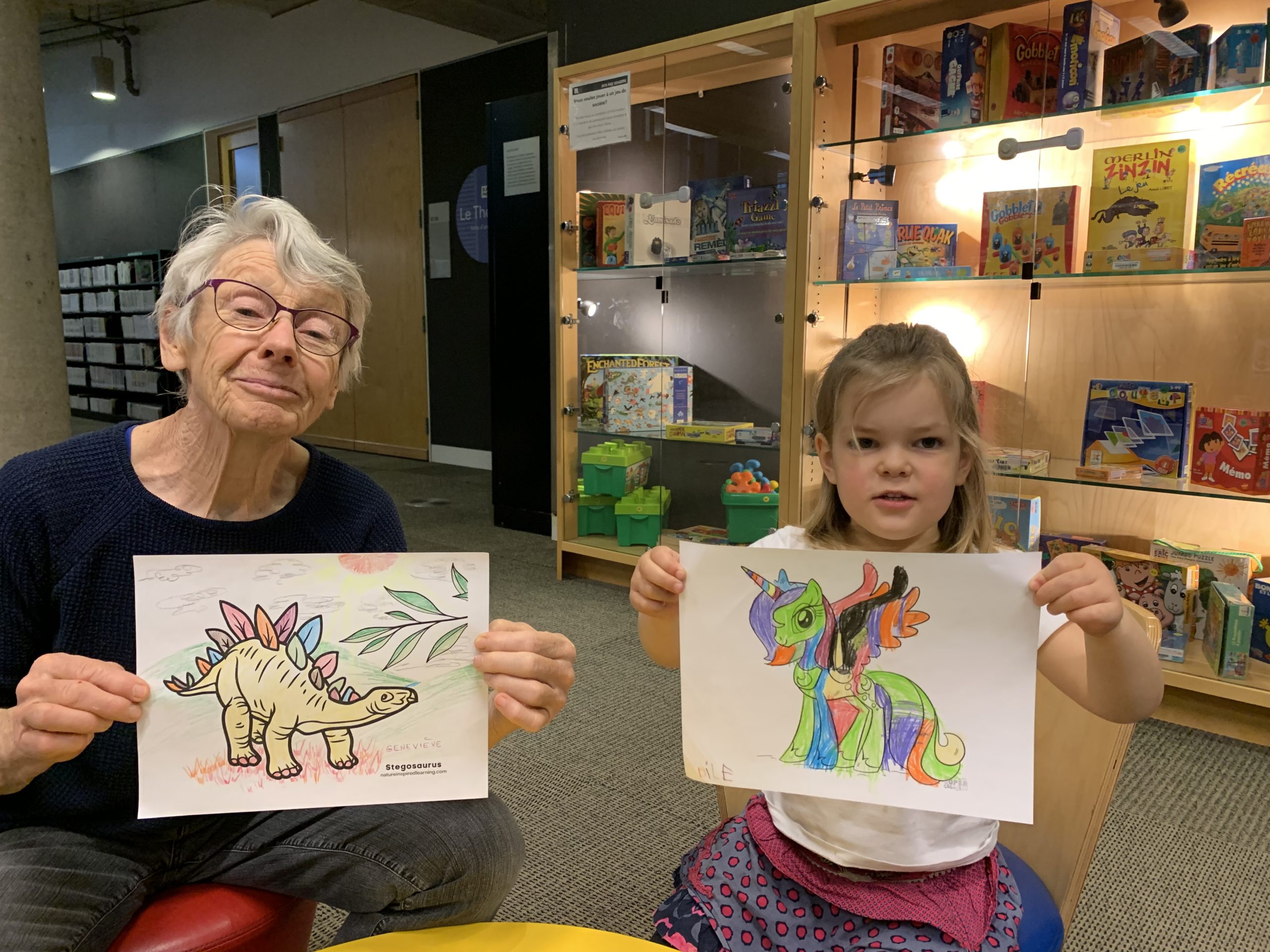 Et mercredi, médiathèque avec Odile (nous avons même été prises en photo par le photographe officiel de la médiathèque 😉 )