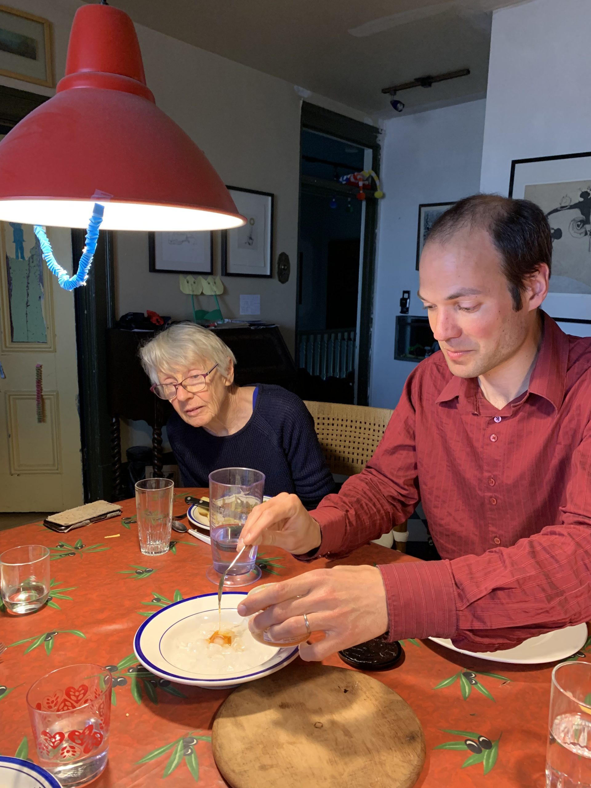 Mardi, achat de sirop d’érable au marché Jean Talon, retour de Thomas, et dégustation de maïs et de tire d’érable.