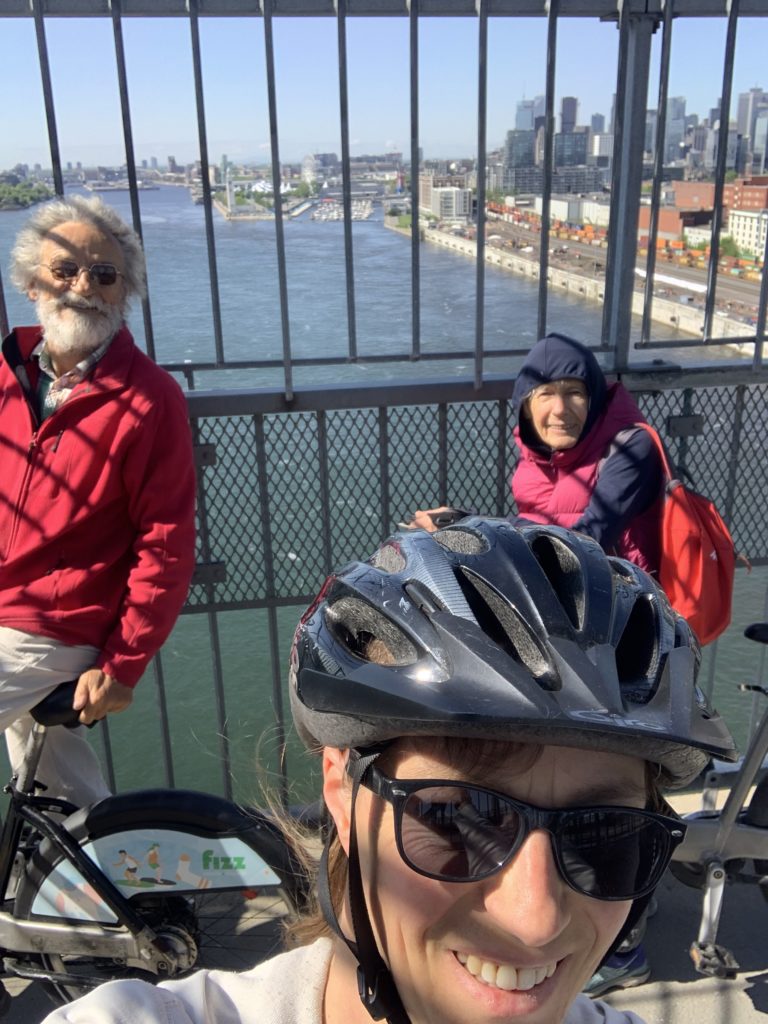 Aujourd’hui, Grand-Papa, Grand-Maman et moi sommes allés faire un grand tour à vélo dans Montréal. Nous avons traversé le pont Jacques Cartier jusqu’à l’île Sainte-Hélène. Nous avons traversé le parc Jean Drapeau, et quitté l’île par le pont Concorde. Nous avons ensuite continué vers le sud, traversé la zone industrielle avec l’usine Farine Five Roses, puis longé le canal Lachine jusqu’au marché Atwater. Nous y avons acheté encore du sirop d’érable, et de la tire d’érable. Nous sommes rentrés en longeant le canal sur l’autre rive, puis le vieux port.