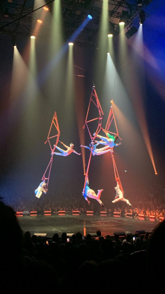 Ce soir, après le cours de théâtre d’Émile et Lucie, nous sommes allés voir le spectacle Echo du Cirque du Soleil ! Encore une soirée magique !!