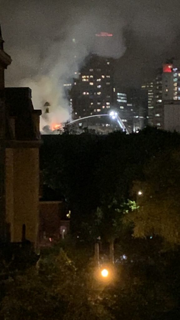En rentrant chez nous, nous avons constaté que l’incendie du monastère du Bon Pasteur, à deux pas de chez nous, qui s’était déclaré dans l’après-midi n’était toujours pas éteint ! Nous voyions les flammes et les lances à incendie depuis la terrasse !