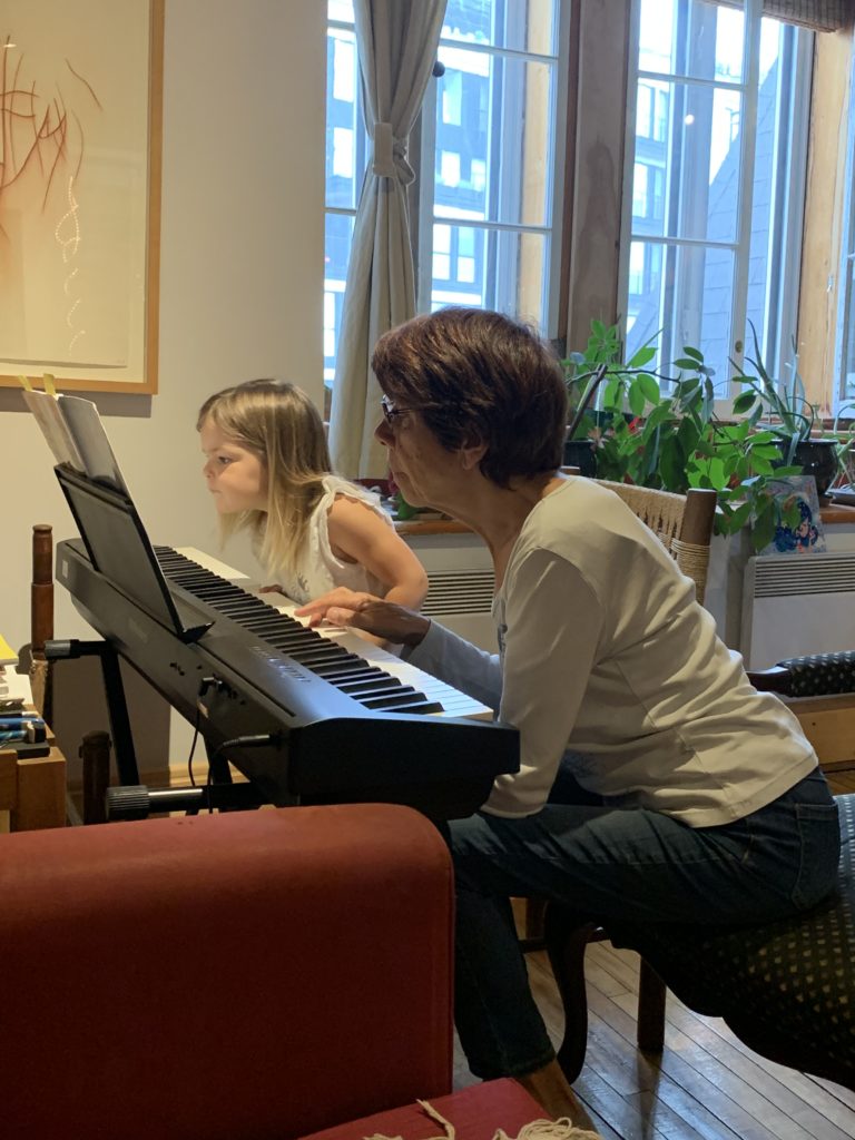 Malgré la météo maussade, nous sommes allés picniquer au Mont Royal ce soir. Nous avons récupéré Odile un peu plus tôt que d’habitude à la garderie – sa maîtresse Lila lui a du coup donné son goûter à emporter ! – puis Émile et Lucie à la sortie de l’école. Je suis montée en Yuba avec les enfants pendant que Thomas et ses parents montaient en bus.