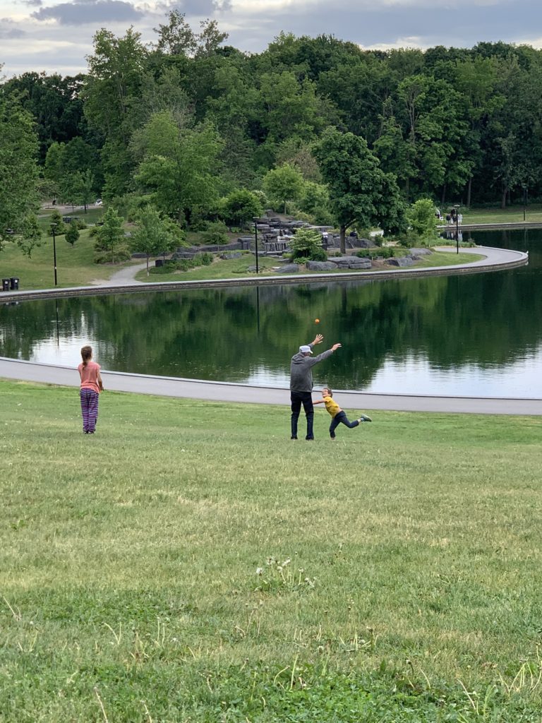 Nous avons d’abord fait le tour du belvédère Kondiaronk, puis sommes allés nous installer près du lac au Castors. Les enfants ont joué au ballon avec Pépi, Puis nous avons mangé avant que la pluie précipite un peu notre départ ! Une belle soirée.