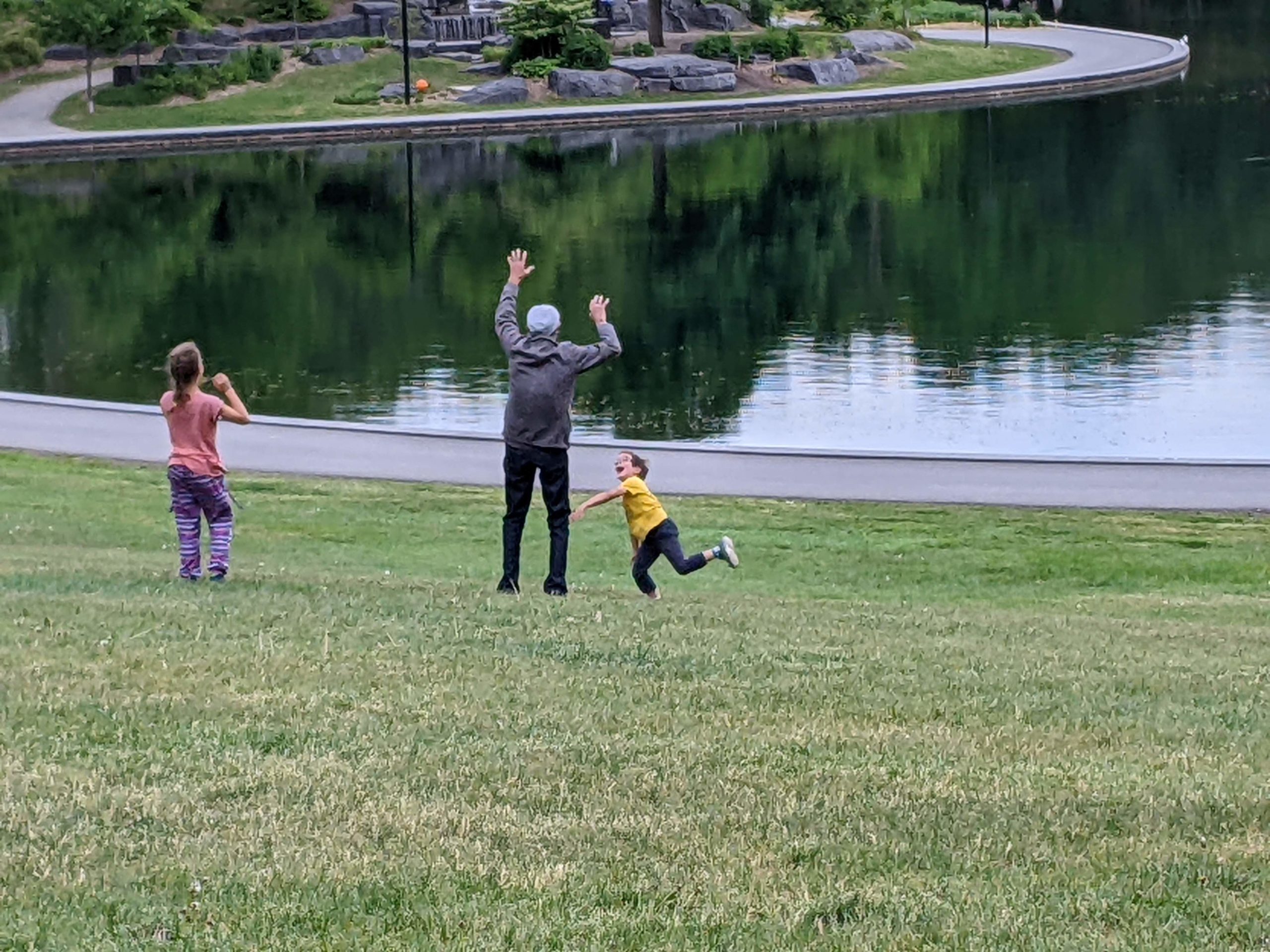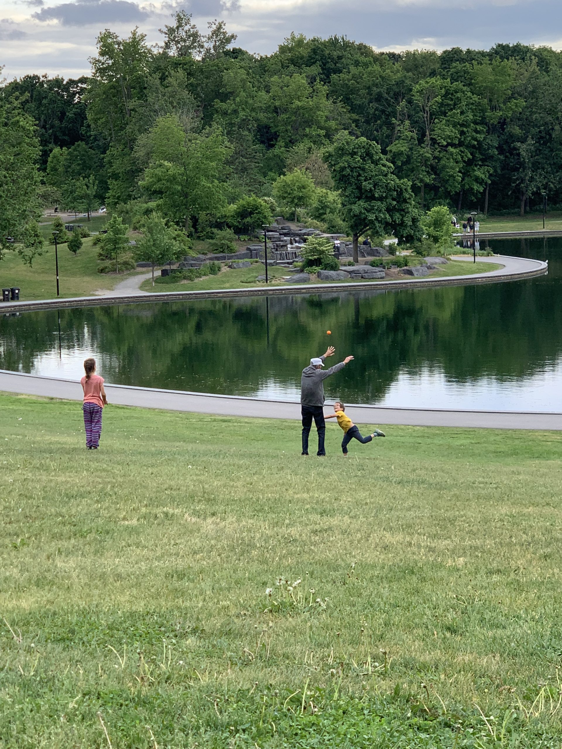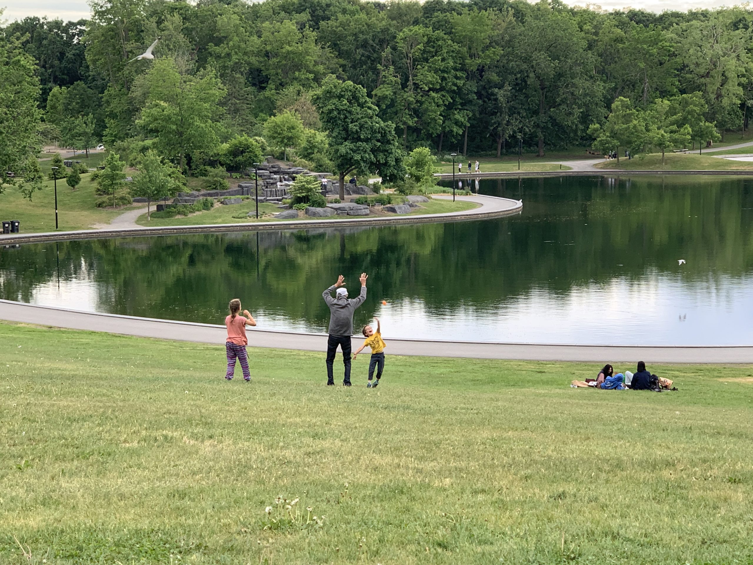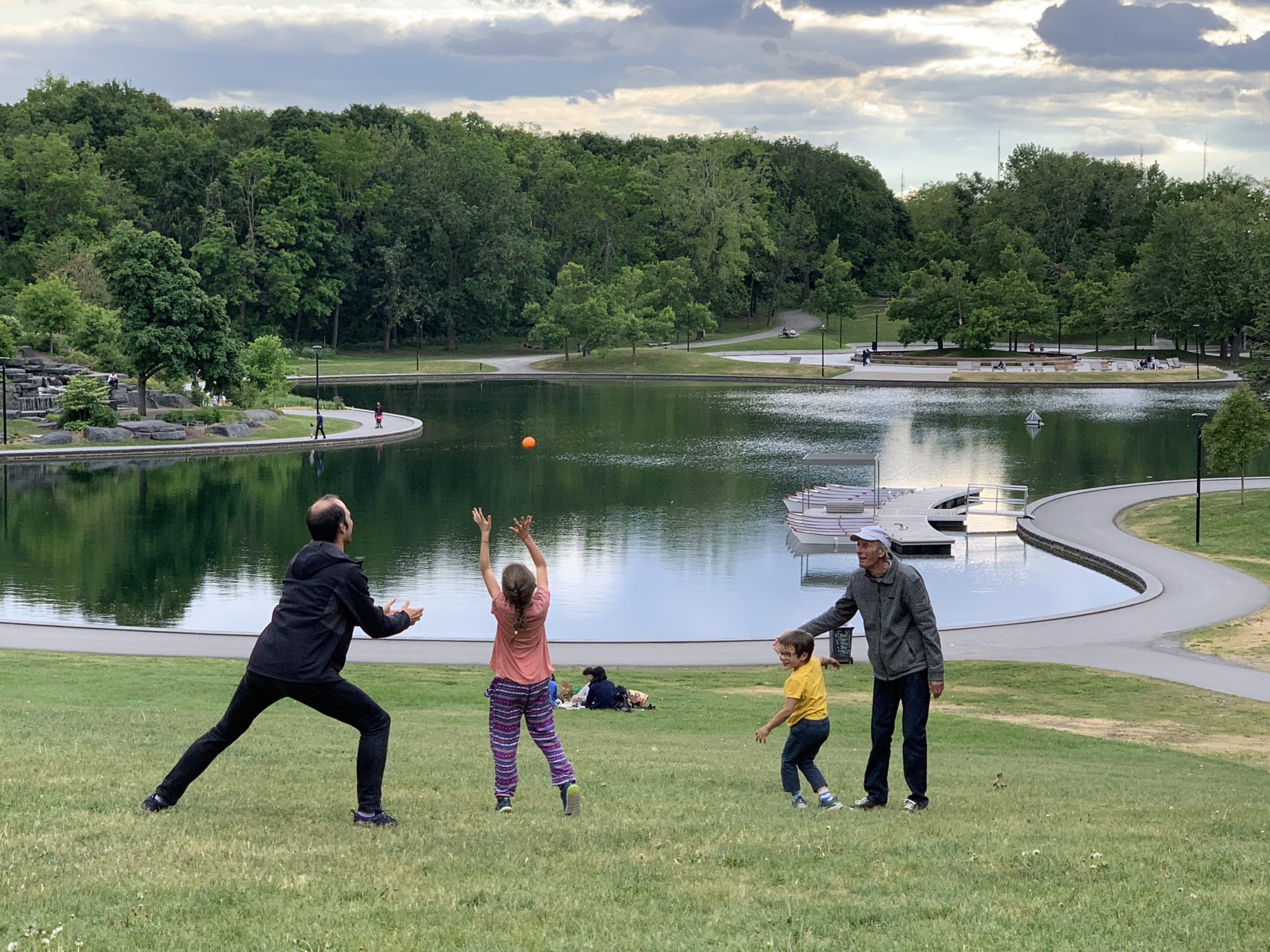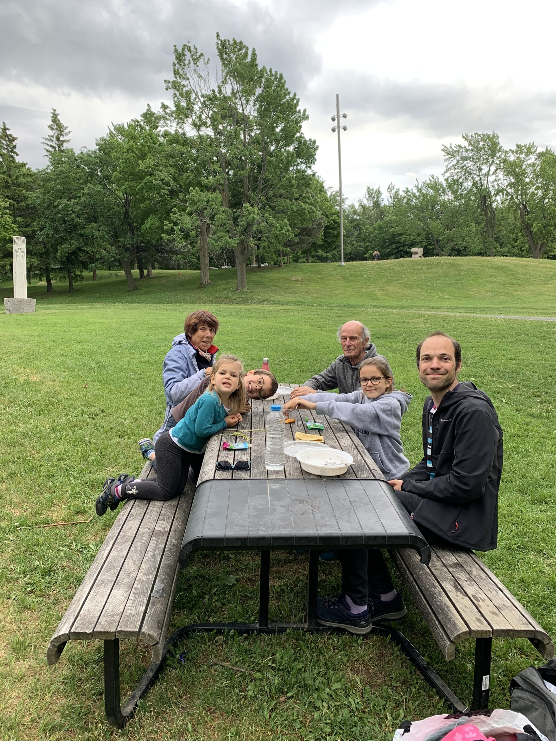 Nous avons d’abord fait le tour du belvédère Kondiaronk, puis sommes allés nous installer près du lac au Castors. Les enfants ont joué au ballon avec Pépi, Puis nous avons mangé avant que la pluie précipite un peu notre départ ! Une belle soirée.
