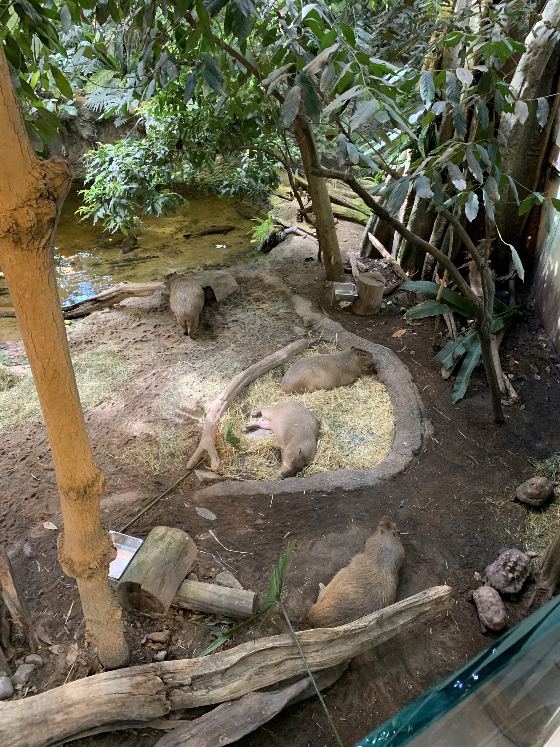 Après avoir mangé au café du jardin botanique , nous pensions aller au planétarium mais nous avons finalement décidé d’aller au biodome . Nous avons visité 4 parties : érablières des Laurentides , golfe du Saint – Laurent , puis nous avons eu très chaud à la forêt subtropicale humide avant d’aller ce rafraichir en regardant les manchots et les macareux entourés de murs de glace !
