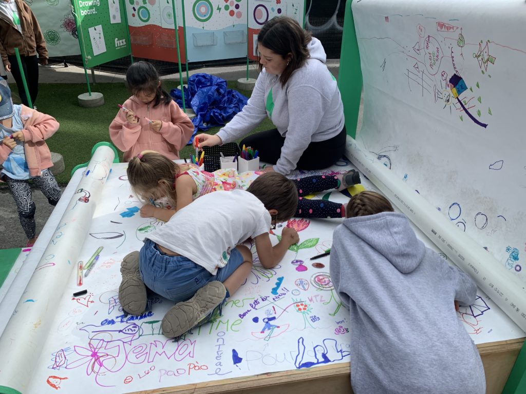 L’après midi, nous sommes retournés au festival Mural, pour enfin réussir à voir une “battle” de graffeurs. Il s’agissait même de la finale. En 1h30, chacun a donc du réaliser une murale en noir et blanc, et le gagnant a été désigné par le public en fonction du volume sonore. C’est celui de gauche qui a gagné, même si notre préférence allait à celle de droite 🙂