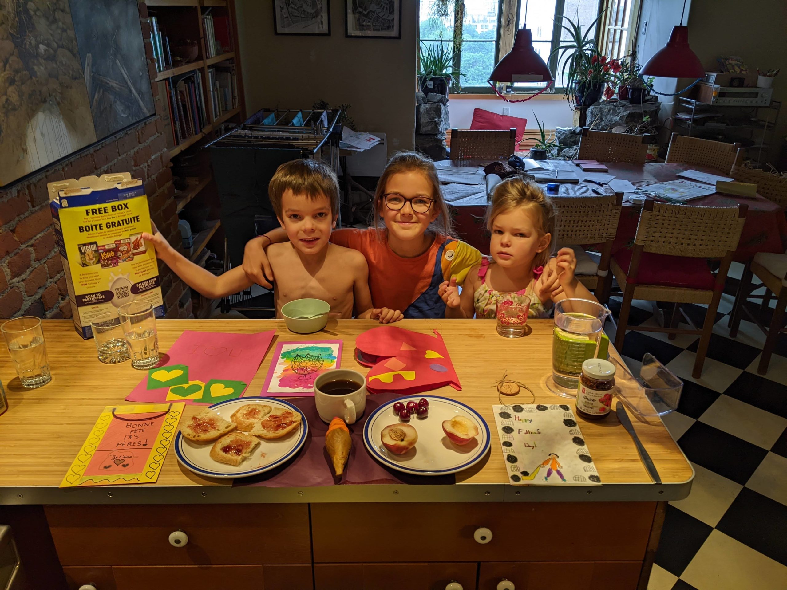 En ce dimanche de fête des pères, les enfants ont préparé le petit déjeuner pour leur papa.