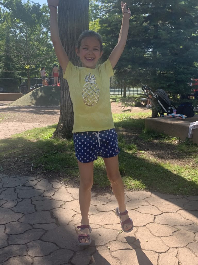 Ce soir, je suis allée les chercher, et nous avons été aux jeux d’eau dans un parc près de l’école où Lucie a justement été aujourd’hui avec sa classe.