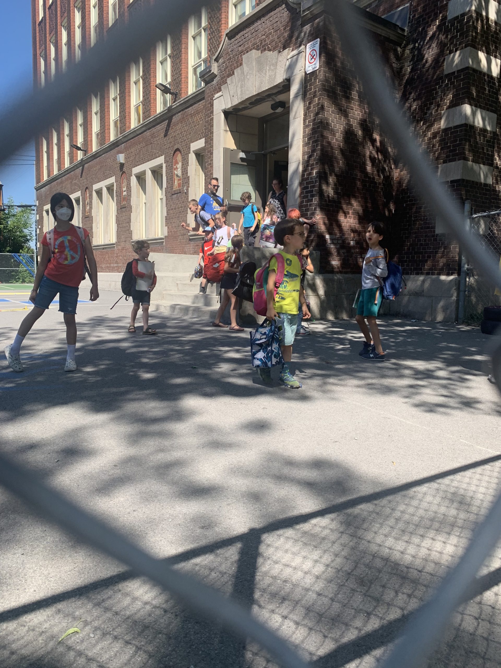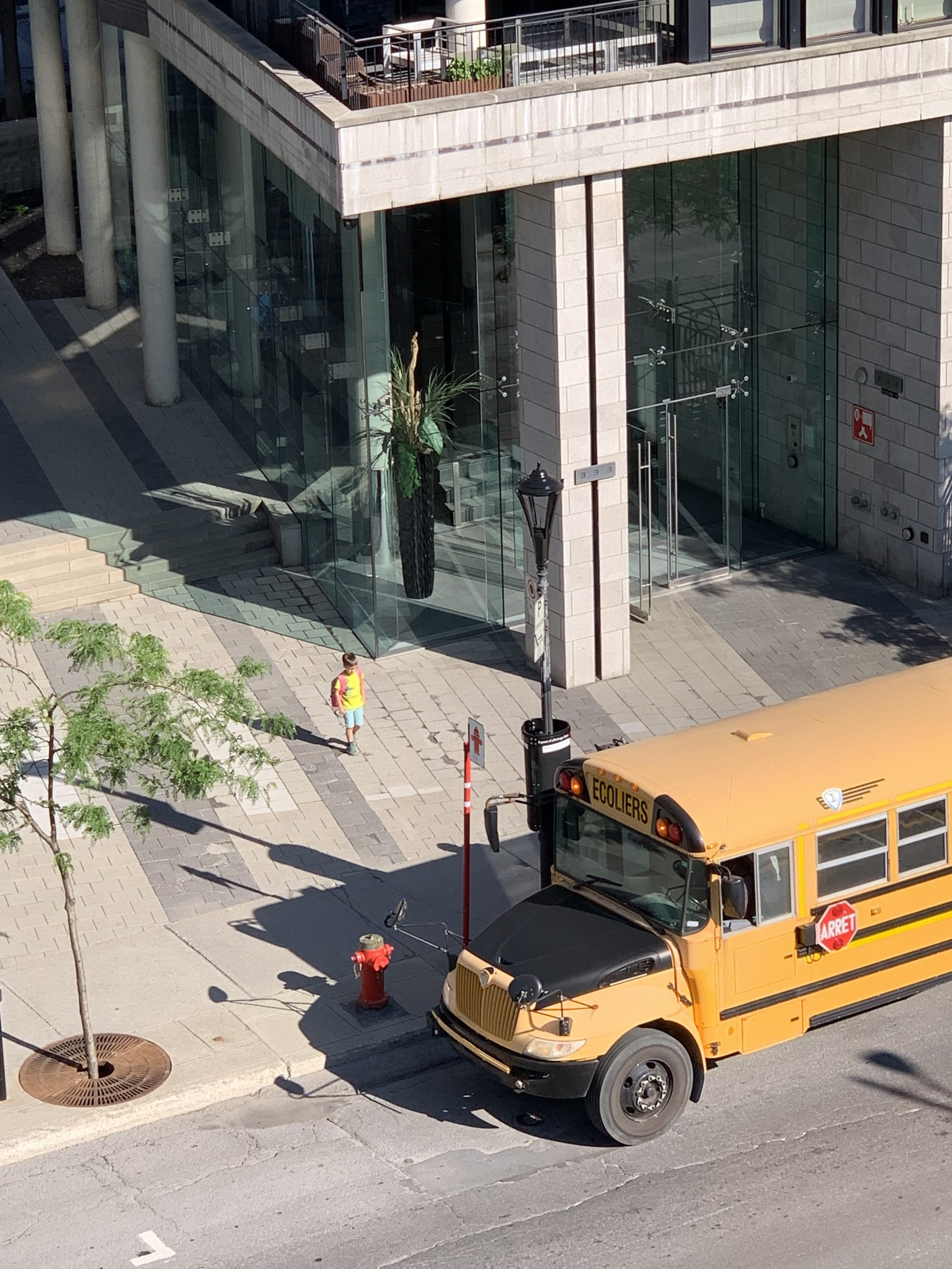 C’est le dernier jour d’école aujourd’hui pour Émile et Lucie aujourd’hui. Ce matin, Thomas et Odile les ont déposé au bus.