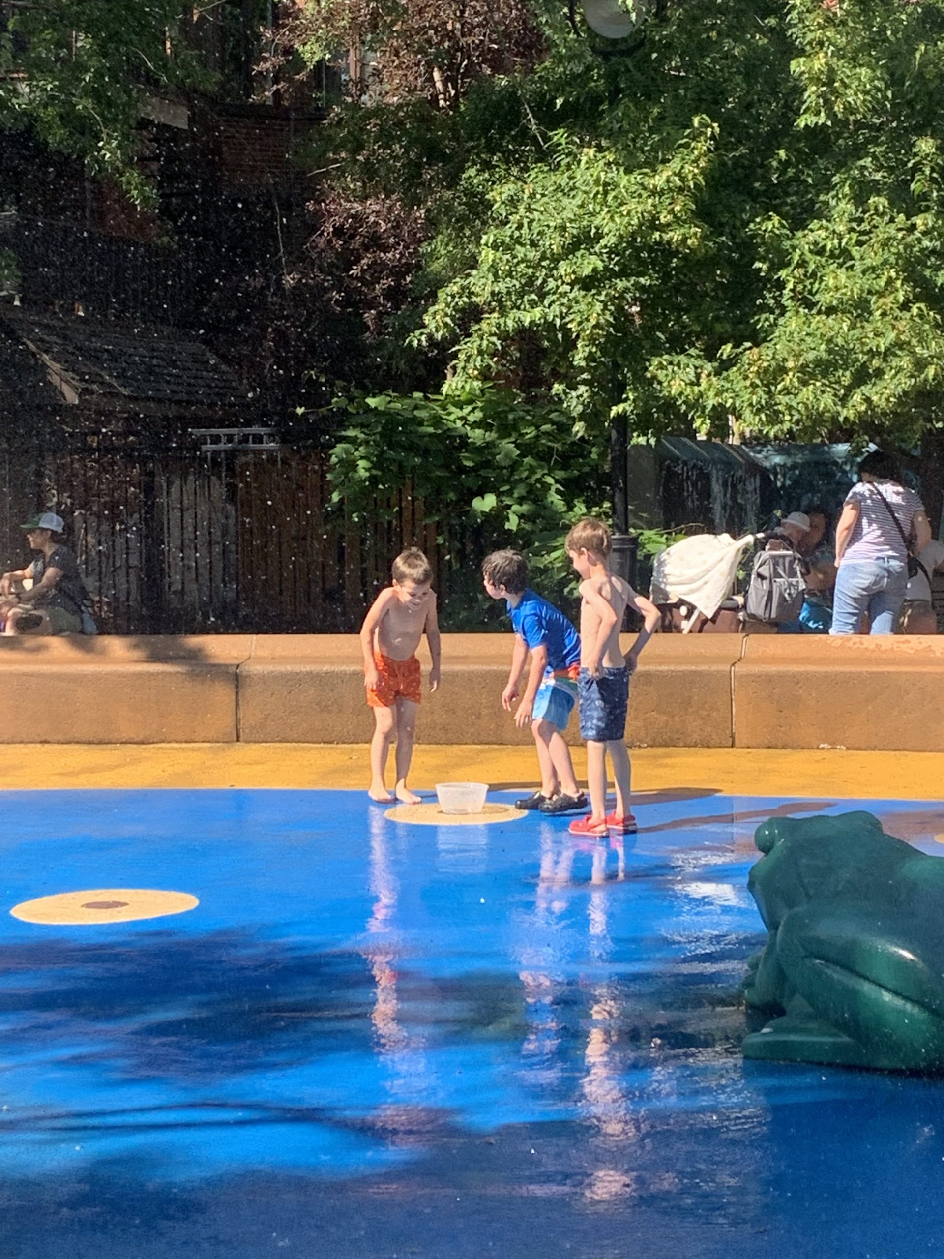Ce soir, je suis allée les chercher, et nous avons été aux jeux d’eau dans un parc près de l’école où Lucie a justement été aujourd’hui avec sa classe.