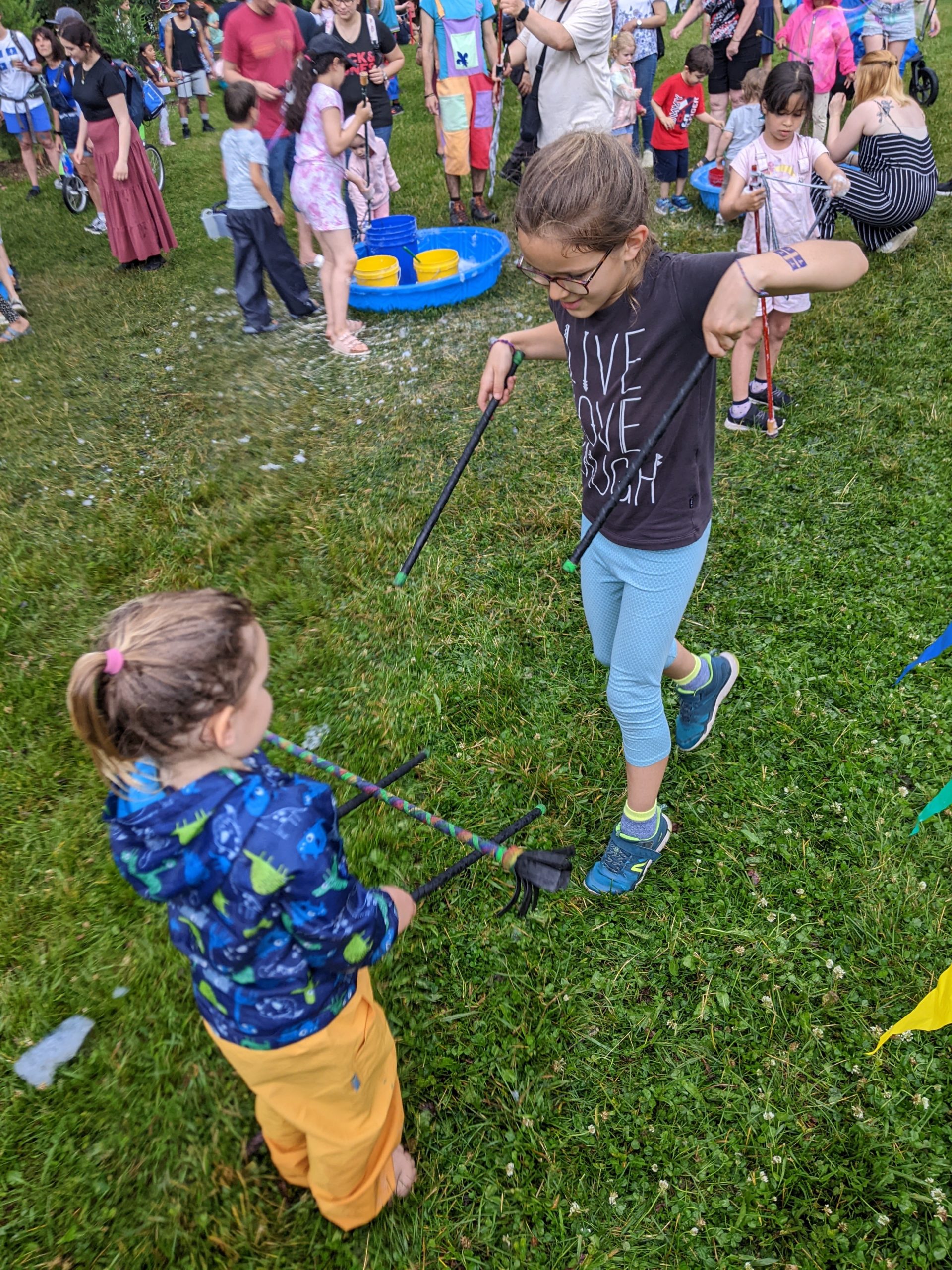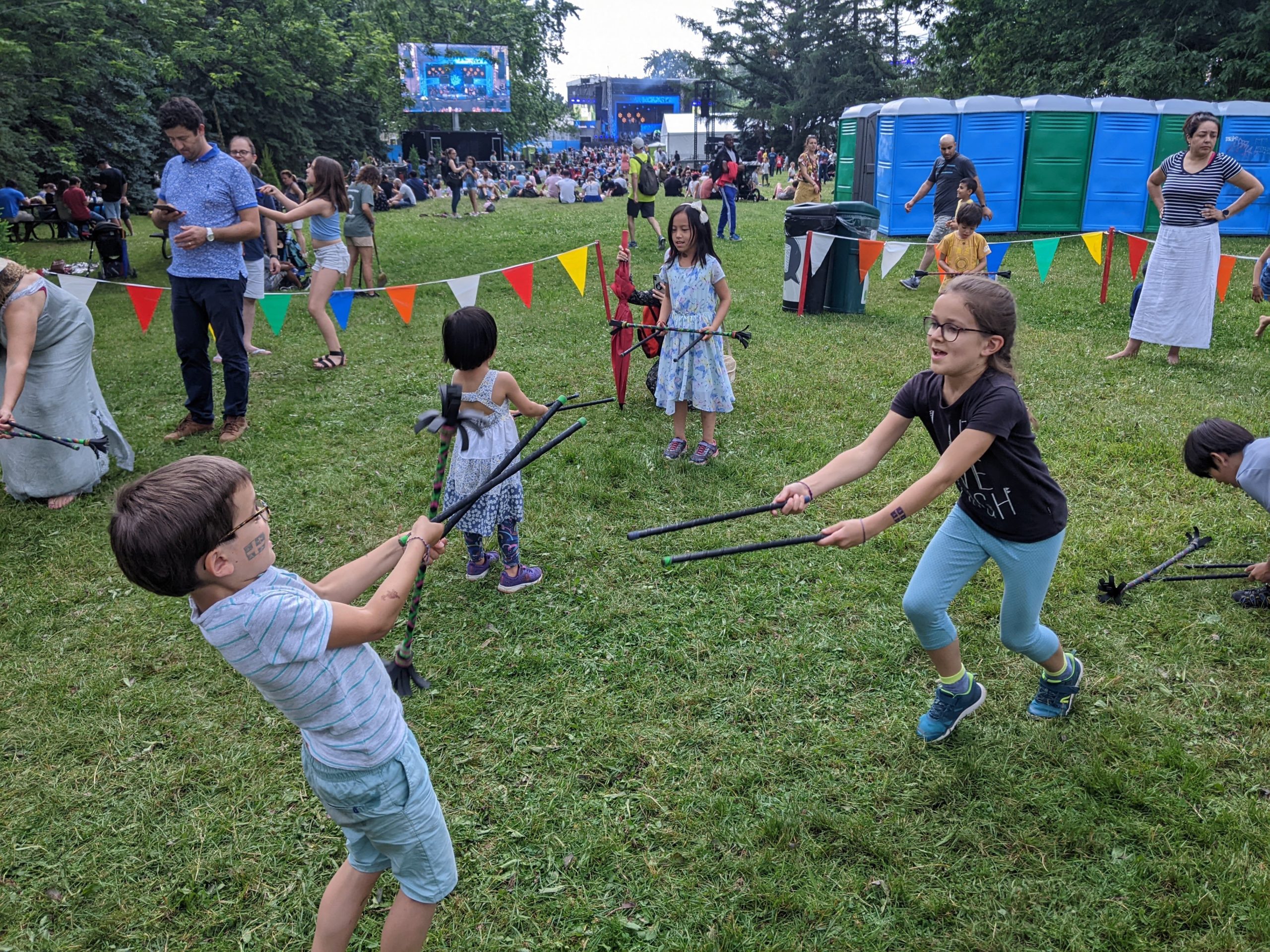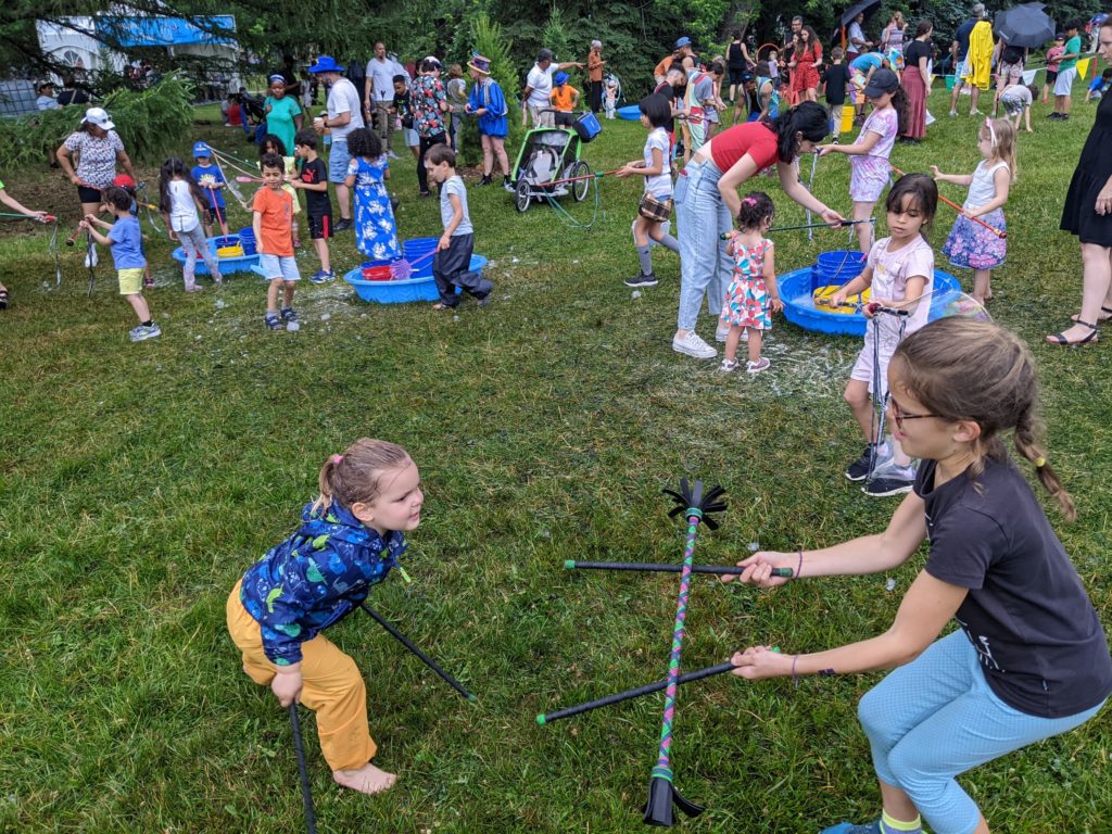 En attendant le concert, entre deux averses de pluie, il y avait plusieurs activités prévues pour les enfants : jeux de bulles, bâton du diable, cerceaux de houla-hoop. Tout le monde s’est bien amusé !
