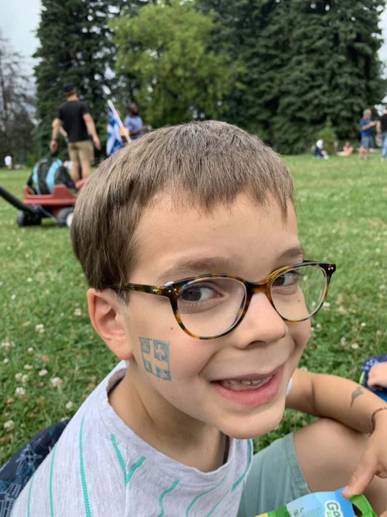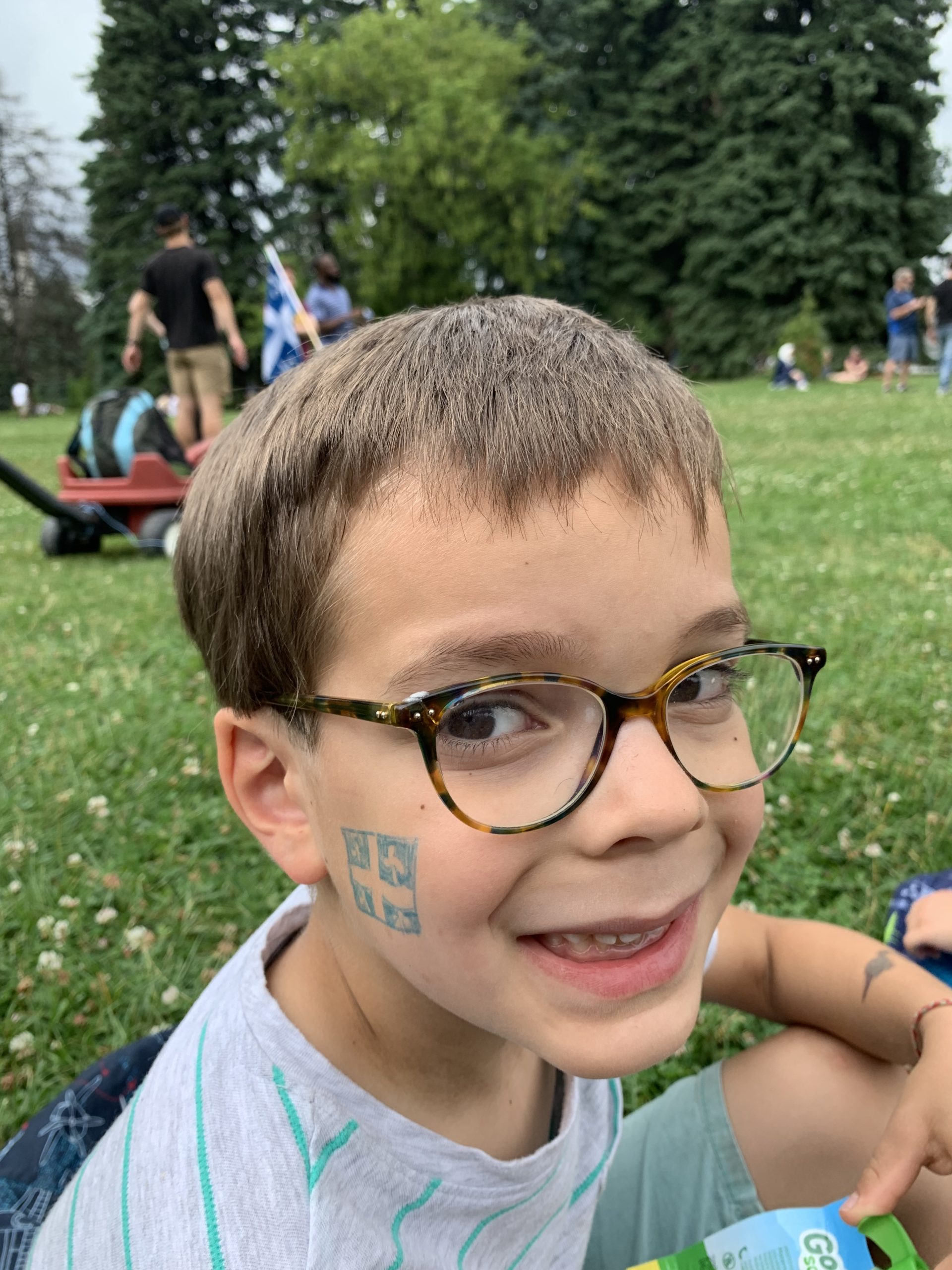 Puis nous sommes rentrés à l’appartement, pour nous préparer (malgré la pluie) pour le défilé de la Saint-Jean :