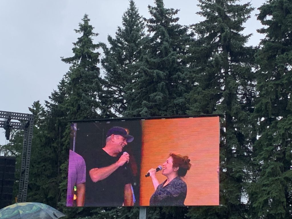 Le concert était retransmis en direct à la télévision, avec notamment Garou, Isabelle Boulay, et le chanteur du New Brunswick “P’tit Belliveau”, qui a chanté la chanson “Bonne Saint-Han” (la prononciation est volontaire). Nous avons pu les écouter en mangeant des queues de castor, chance !