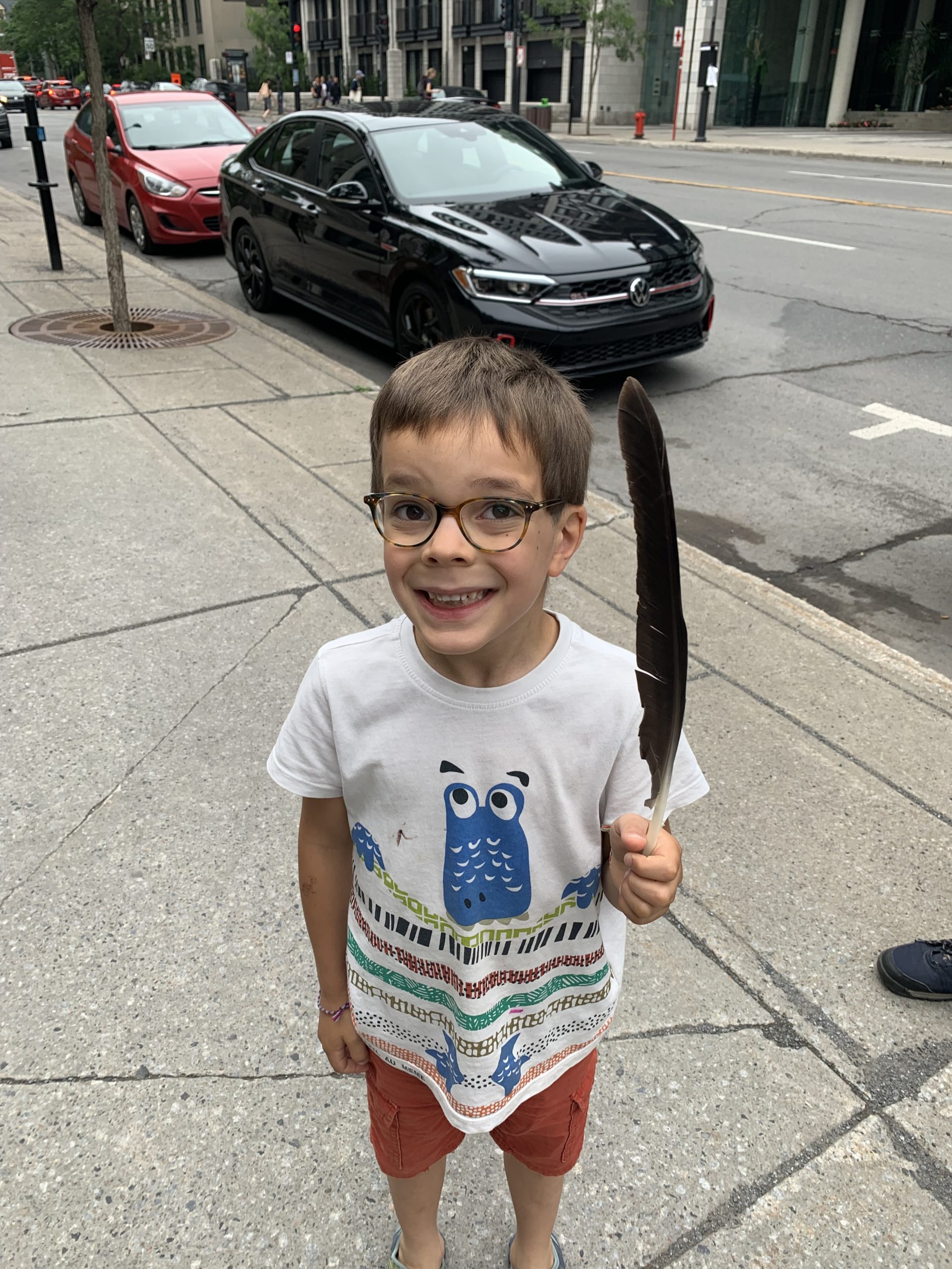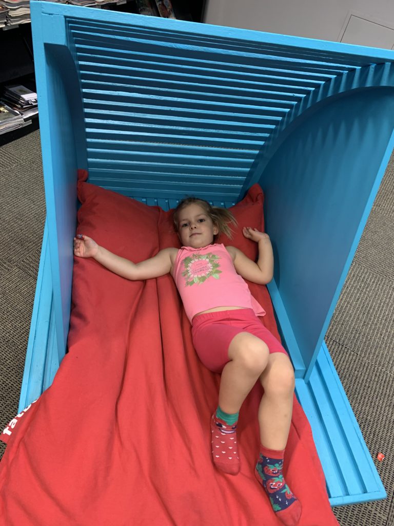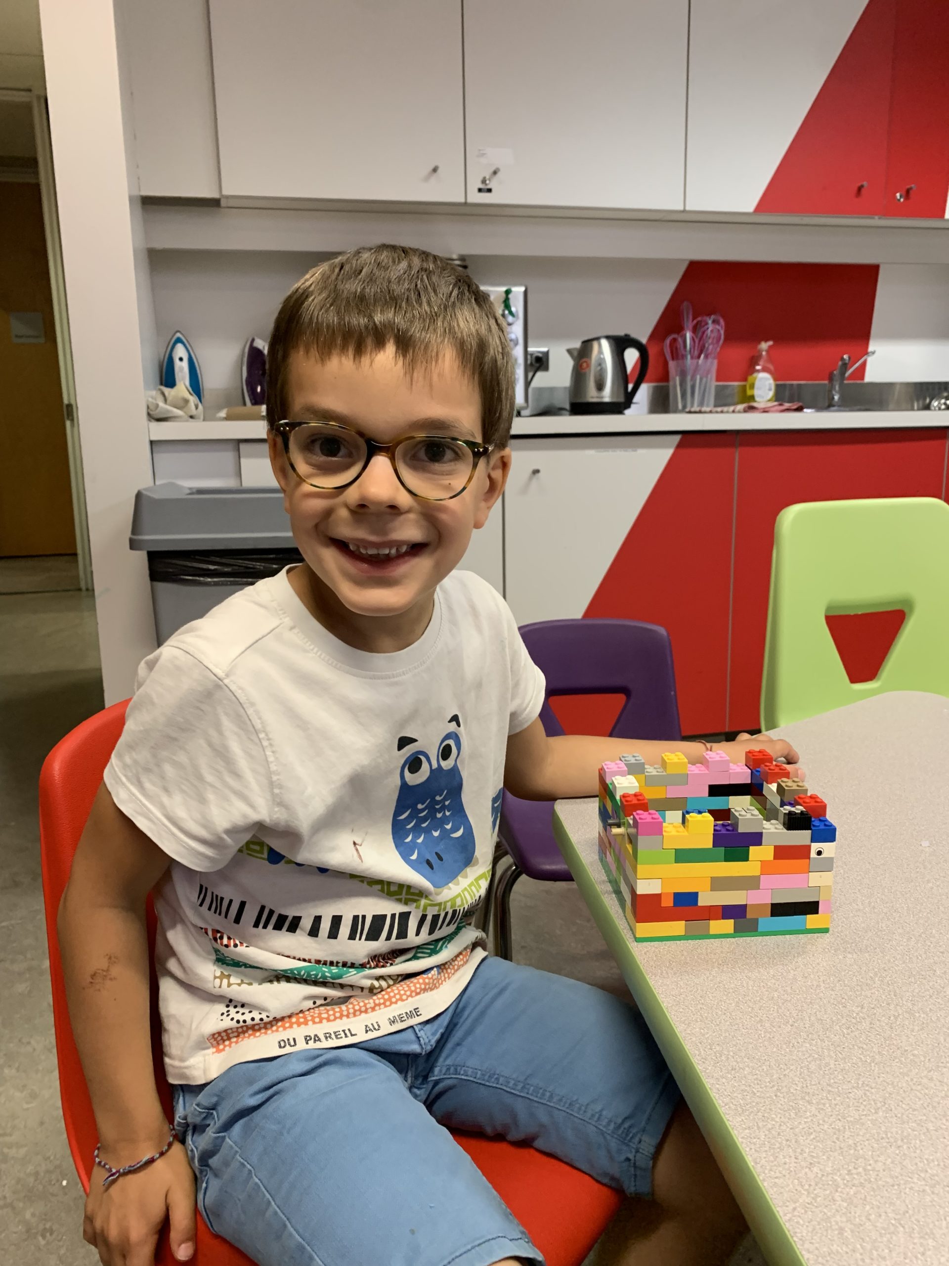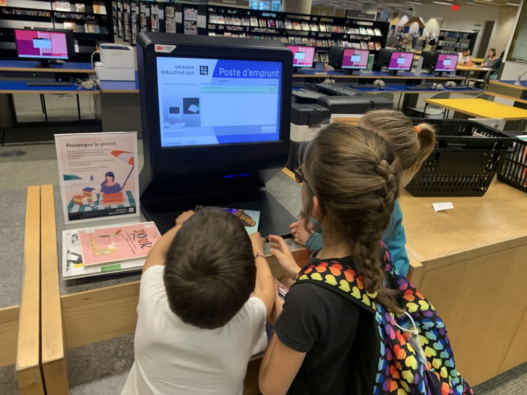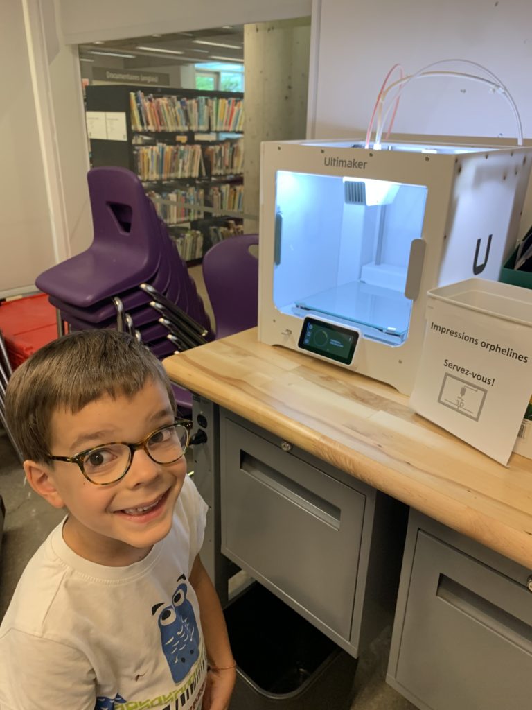 Mardi, nous sommes allés au musée Redpath, au Planétarium, puis à la Hutte de la médiathèque. C’est une salle d’arts créatifs où tout est à disposition des enfants : machines à coudre, imprimante 3D, robots à programmer, fabrication de macarons, legos, etc… Lucie y a fabriqué un coussin, et Émile a notamment imprimé une pyramide égyptienne avec l’imprimante 3D.