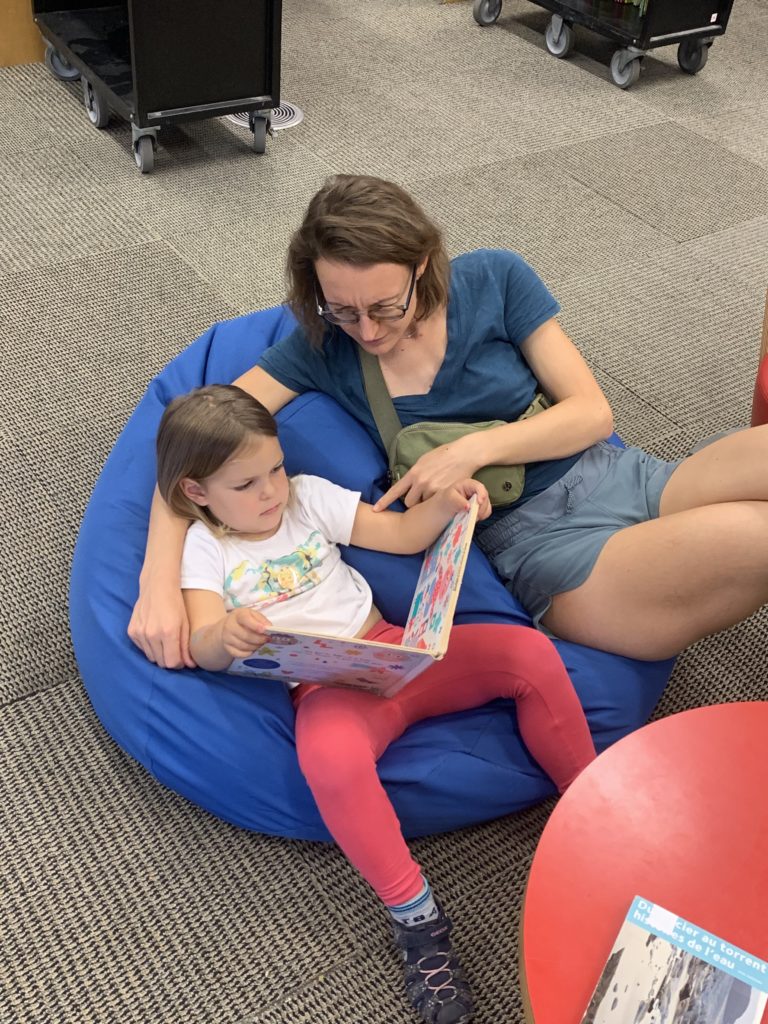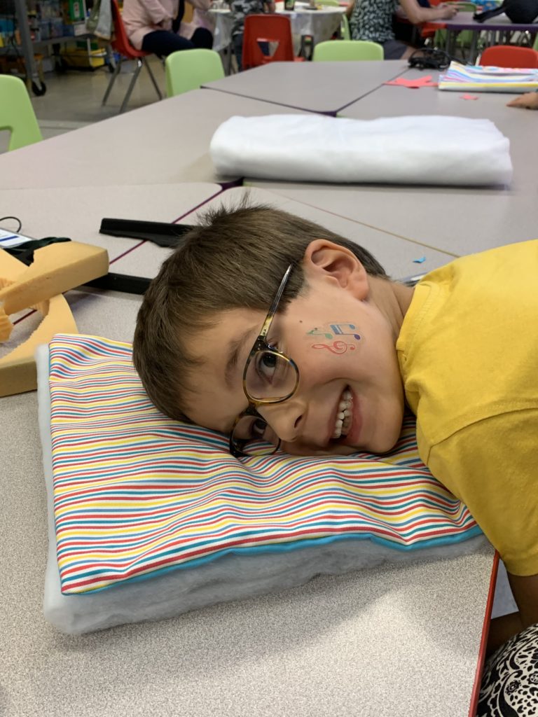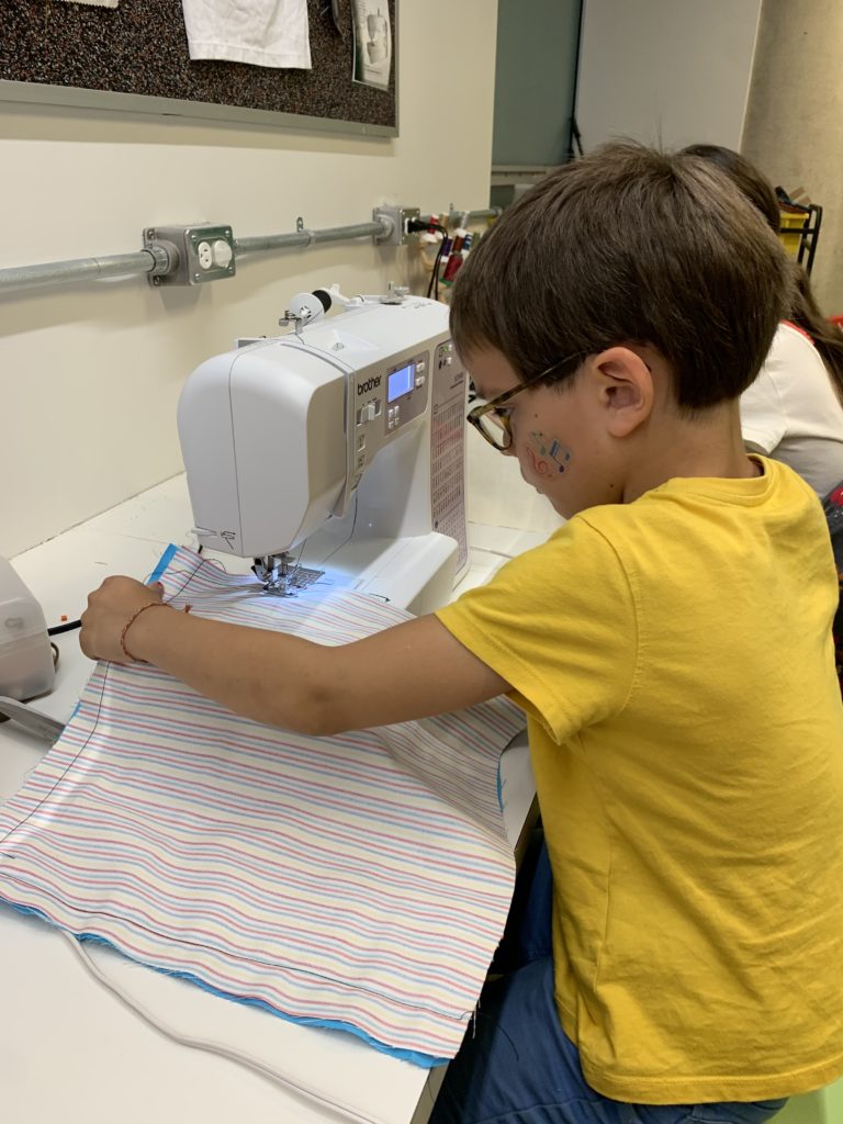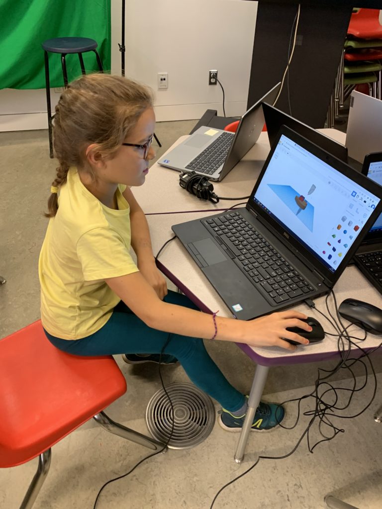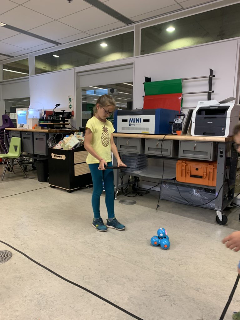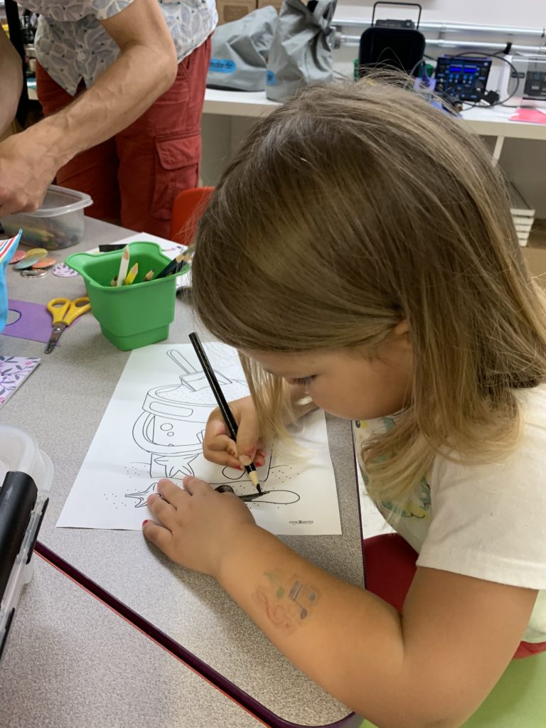 L’après-midi, nous sommes retournés à la Hutte, cette fois Lucie a fabriqué un petit porte-clé avec l’imprimante 3D et Émile s’est cousu un coussin. Odile est arrivé sur la fin de la séance et elle a fabriqué plusieurs petits macarons (des badges).