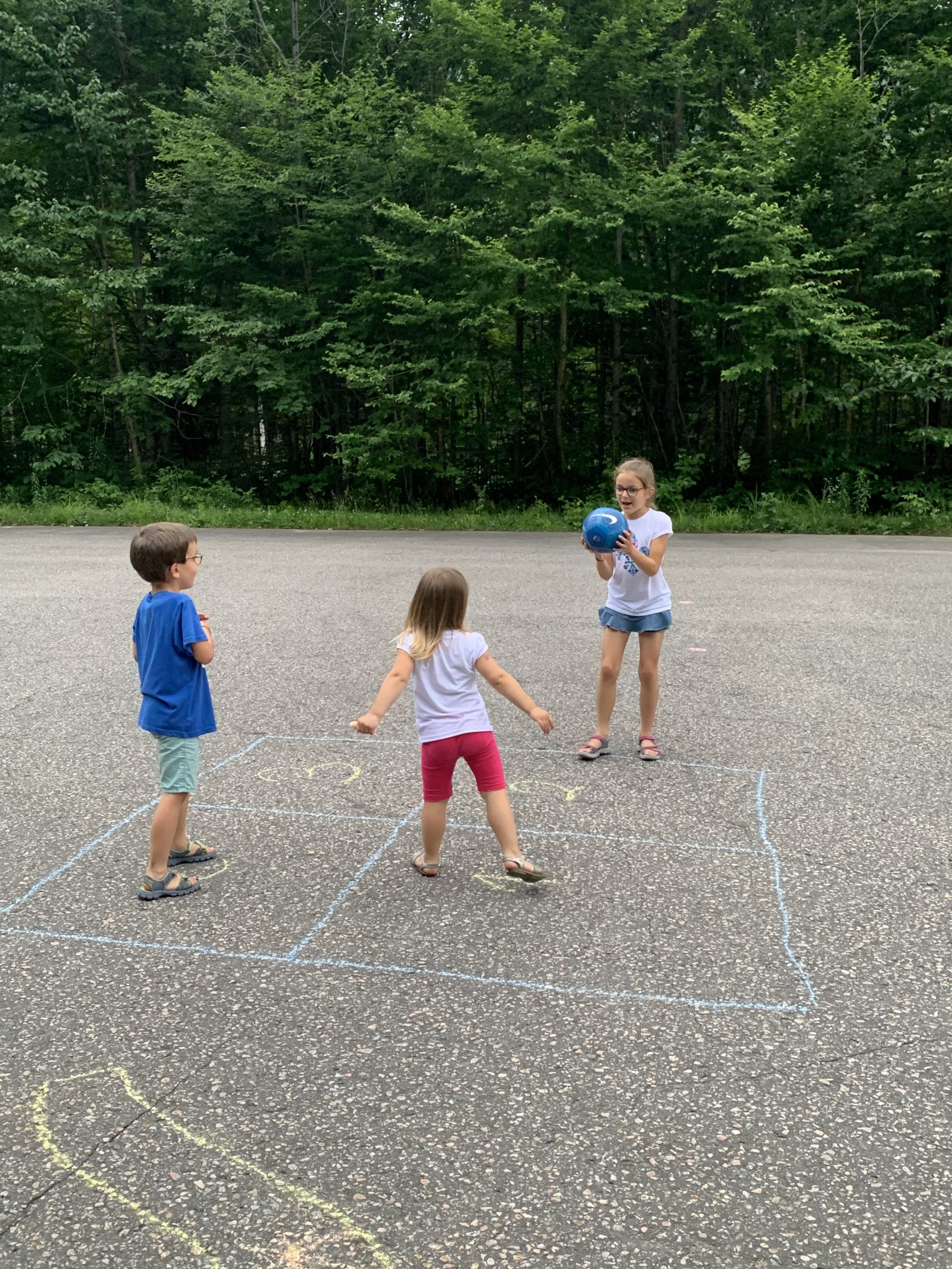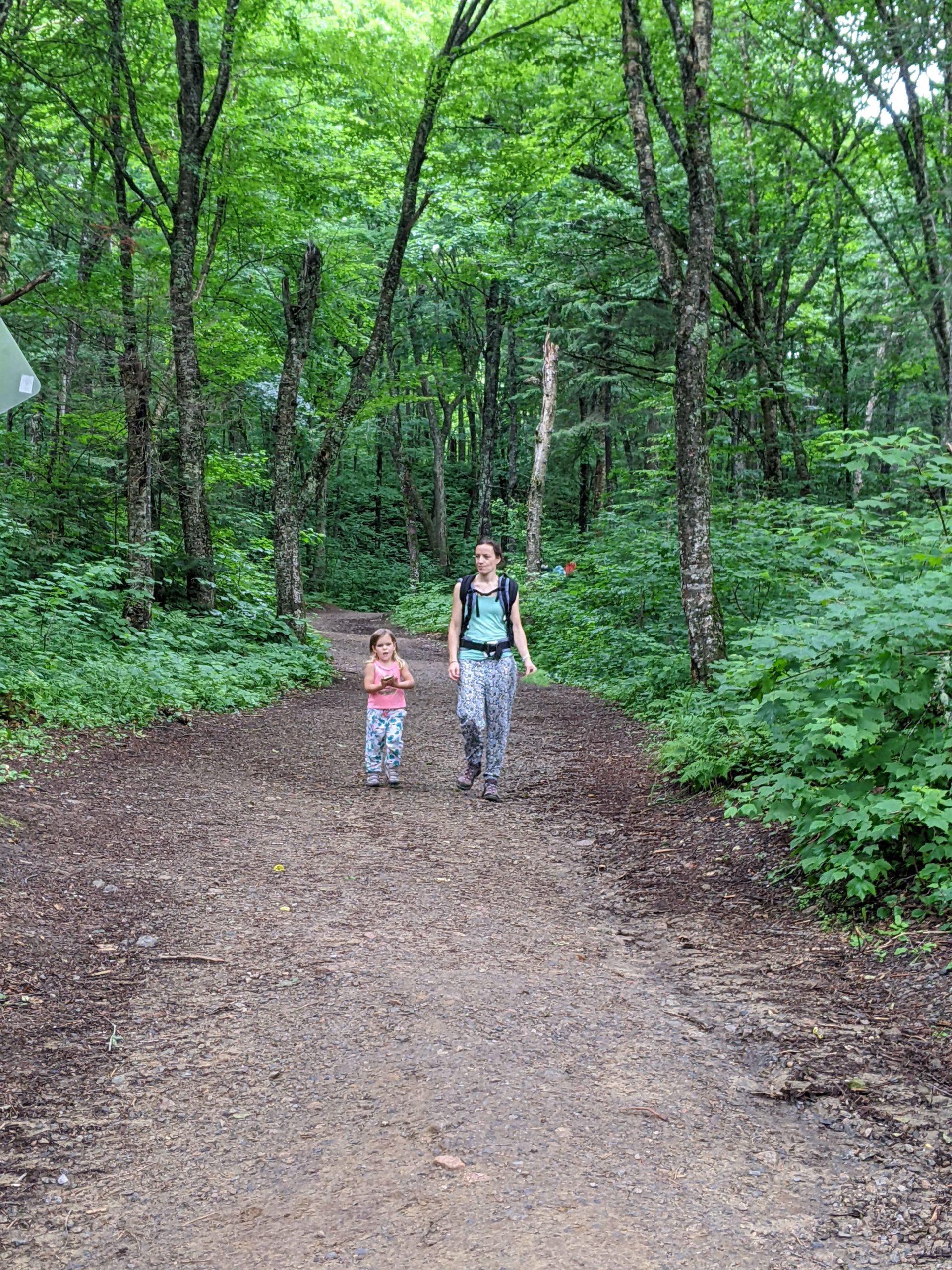 Notre première étape est le Parc National de la Jacques Cartier. Nous avions réservé une place de camping pour deux nuit. En fait, il s’agit d’une place sur un parking de camping car, ce n’est pas le plus bucolique, mais Émile est ravi de pouvoir taper dans son ballon, et les filles de pouvoir dessiner avec les craies.