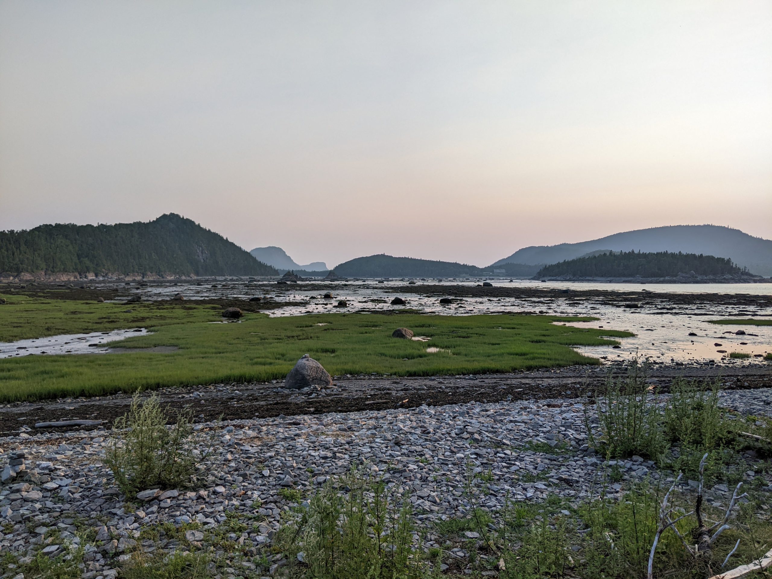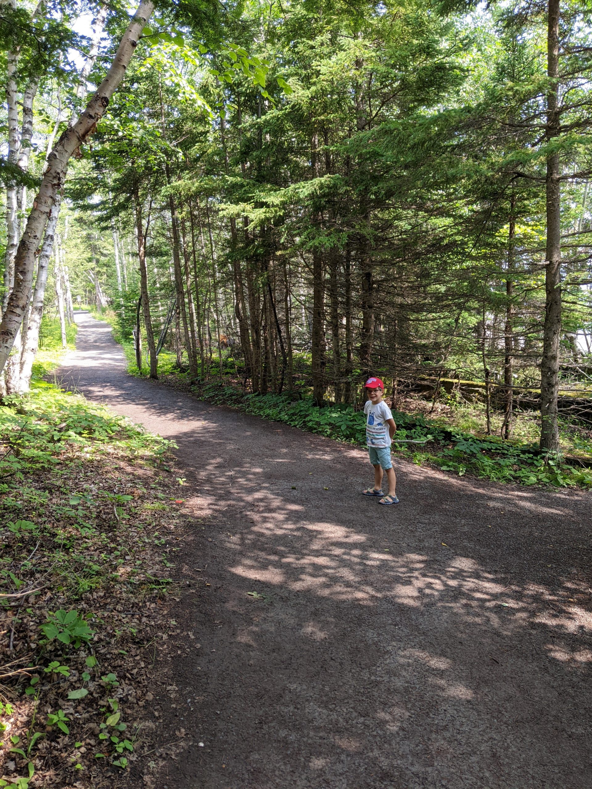 Le lendemain, nous sommes allés visiter le parc du Bic. Assez petit, c’est un concentré de paysages de natures variés : collines, forêts, prairies, marécages, plages, îles… nous avons fait une balade qui a commencé par une prairie, puis de la forêt.
