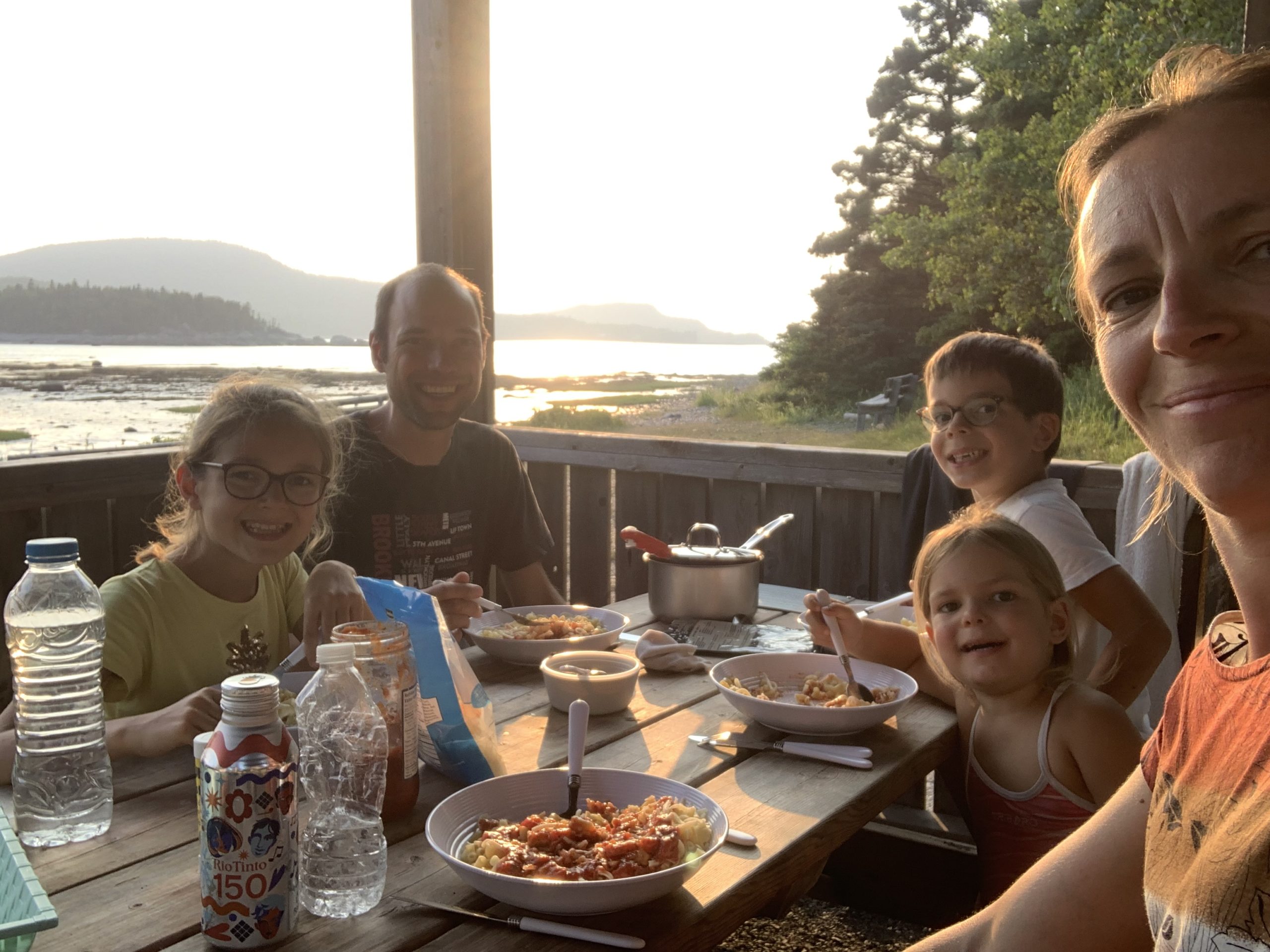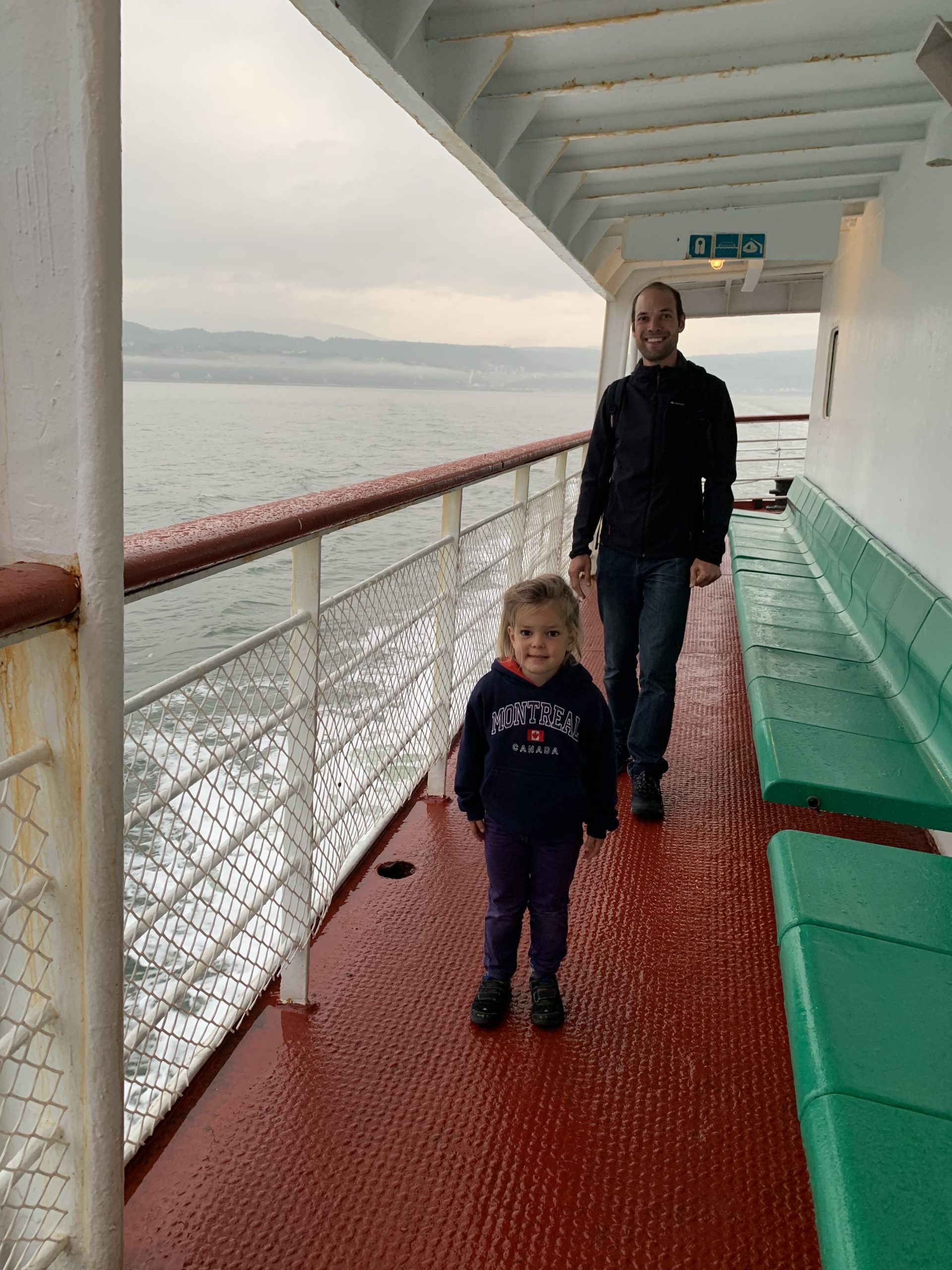 Nous avons traversé le St-Laurent à bord du ferry reliant St-Siméon à Rivière-du-Loup : 1h30 de traversée, avant de dormir dans le camping municipal de St-Fabien.