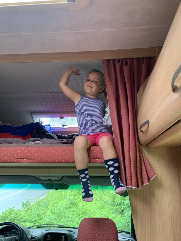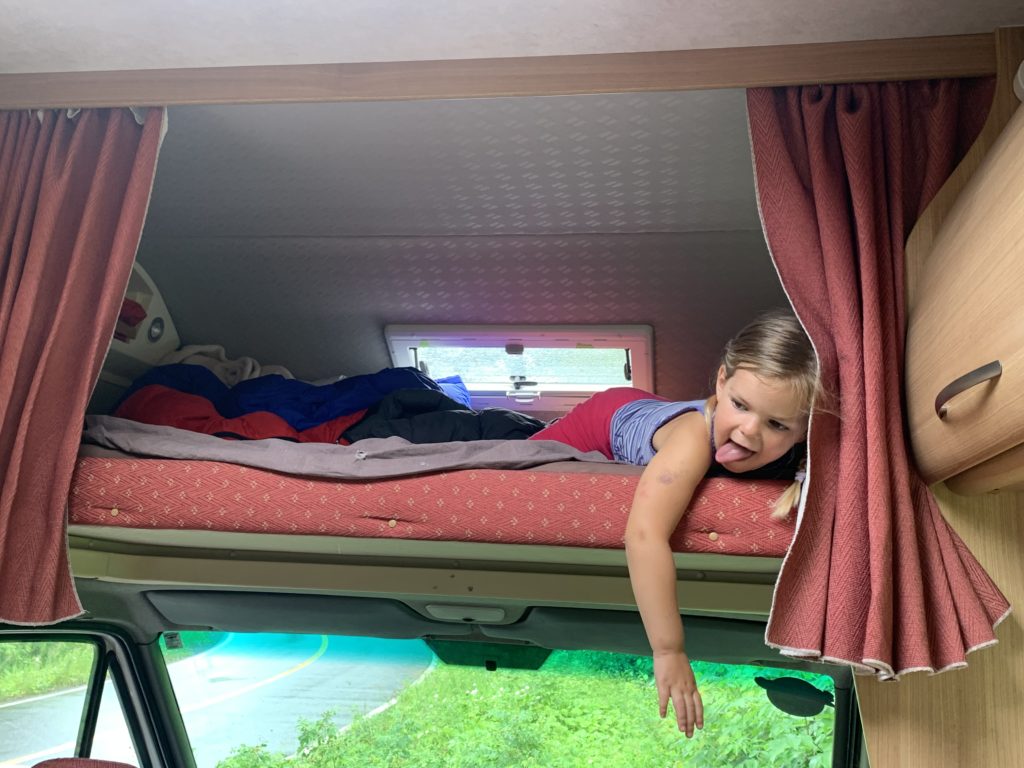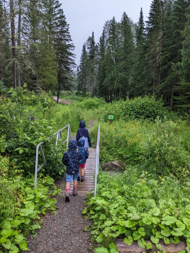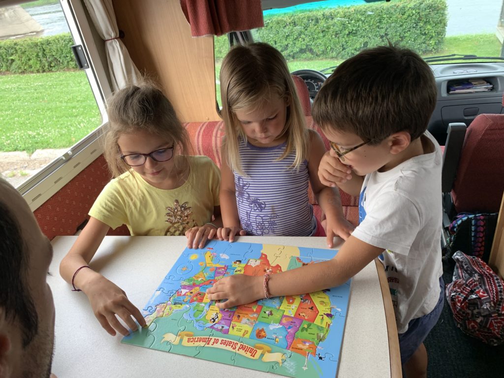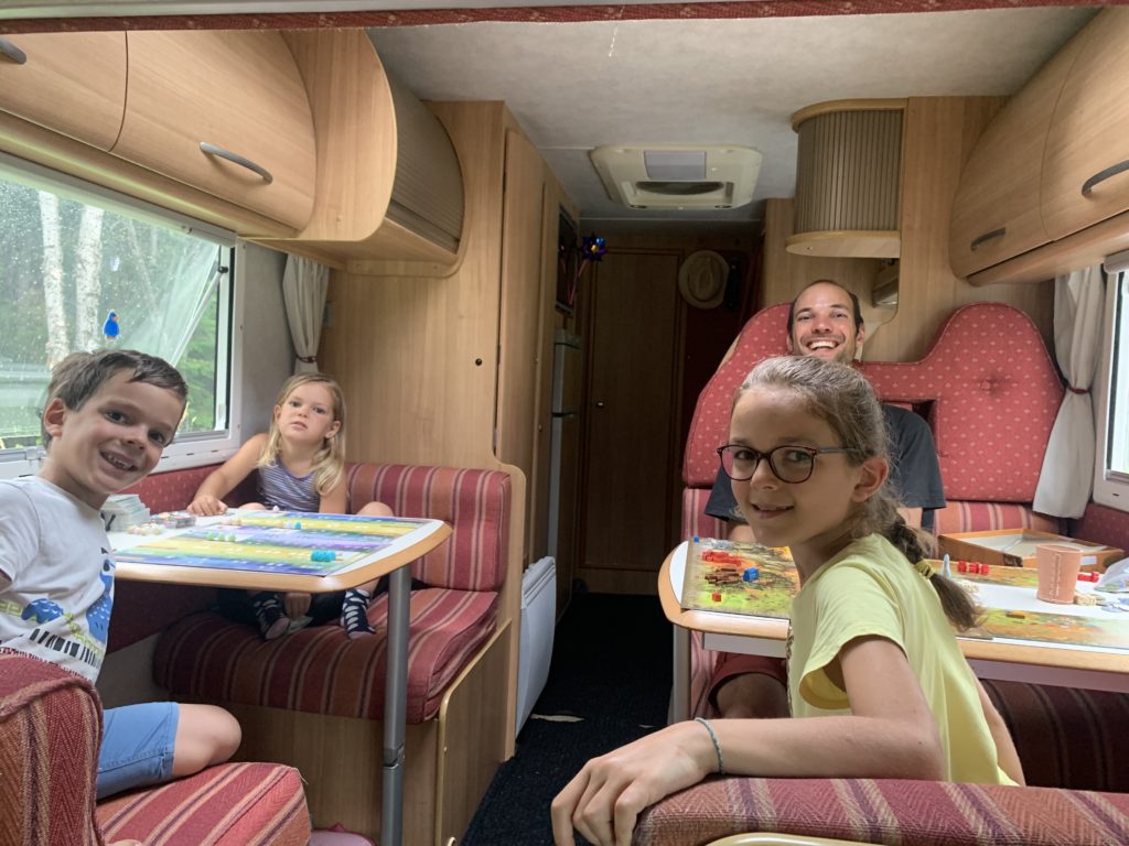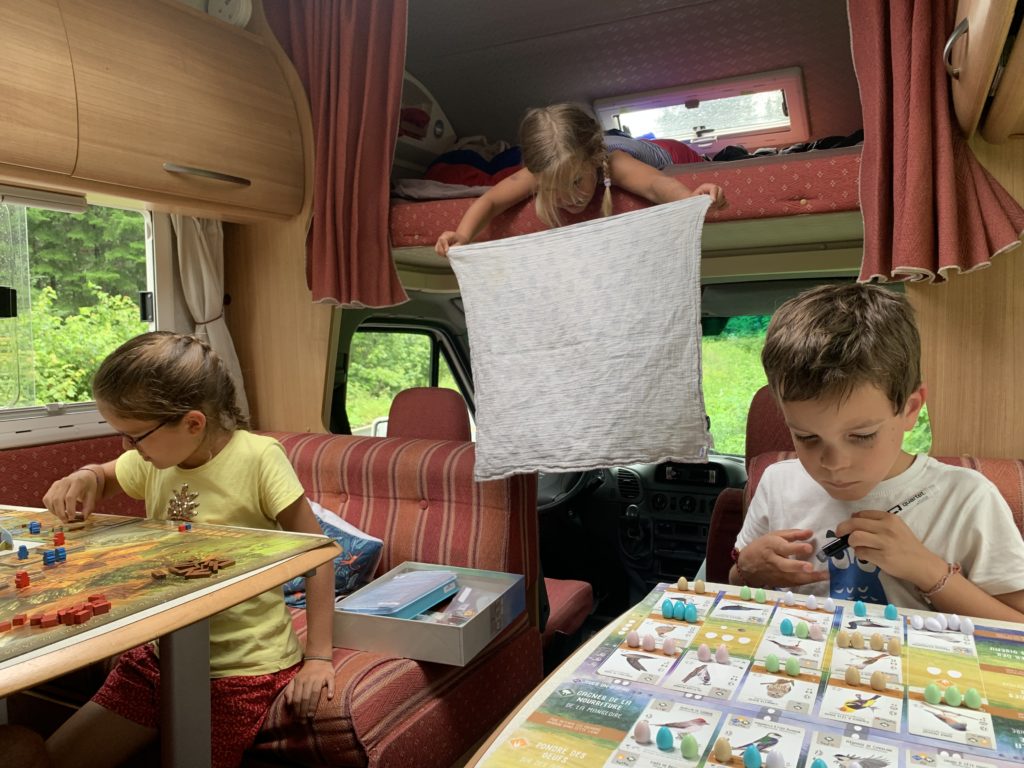 Nous avions juste commencé le parcours ludique quand l’averse est arrivée. Heureusement, nous avons pu nous réfugier au sec, et après quelques jeux, la pluie s’était arrêtée. Les enfants ont pu retourner profiter du parcours, avant que nous reprenions la route direction le New Brunswick !