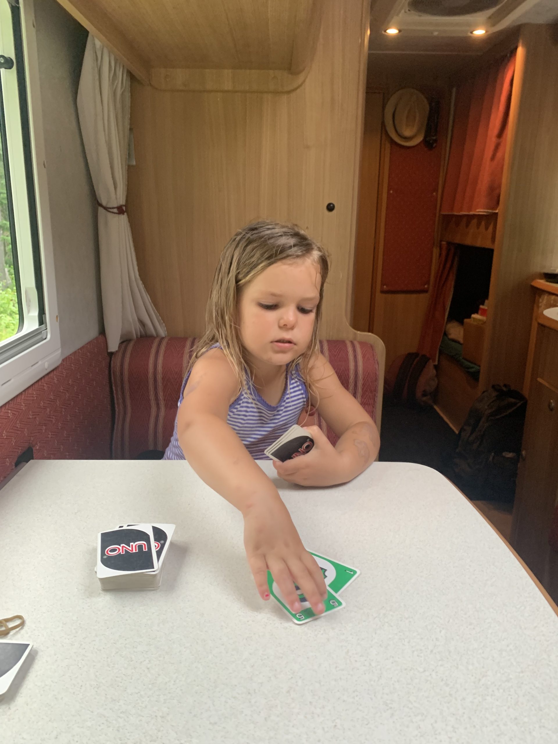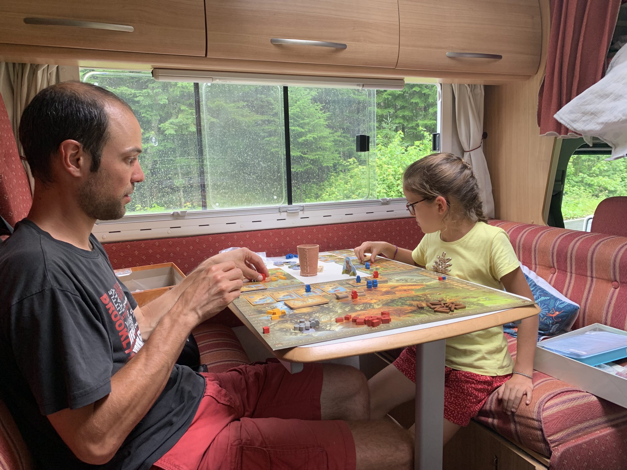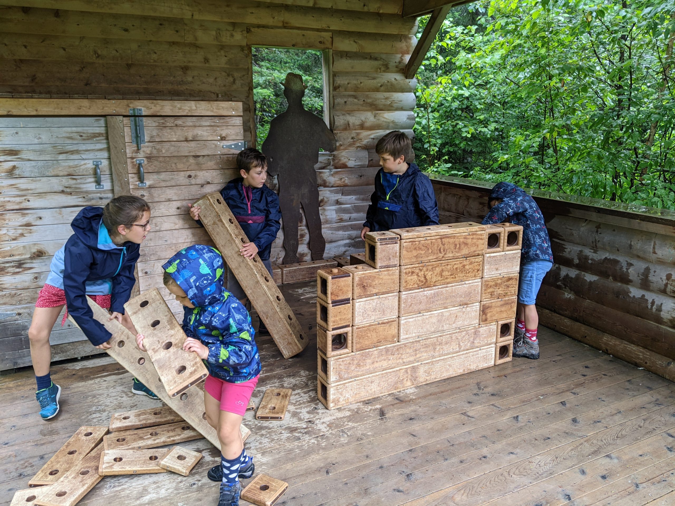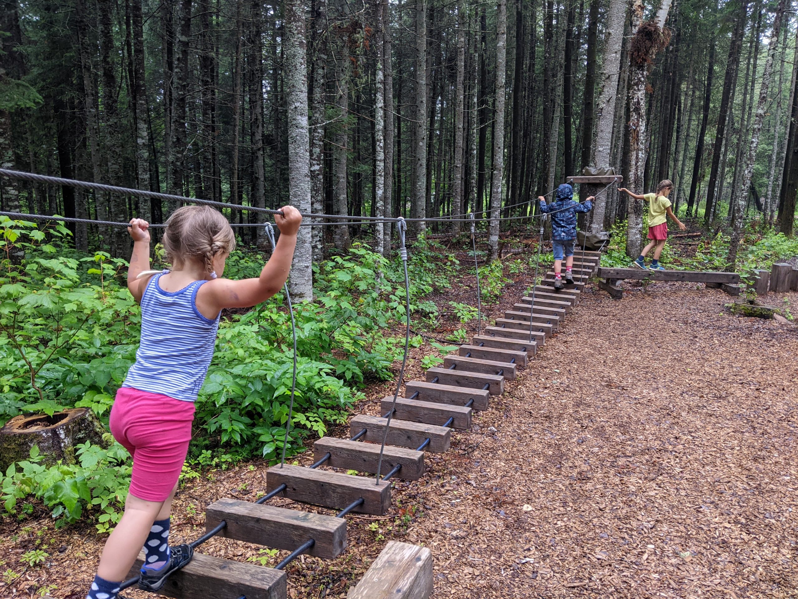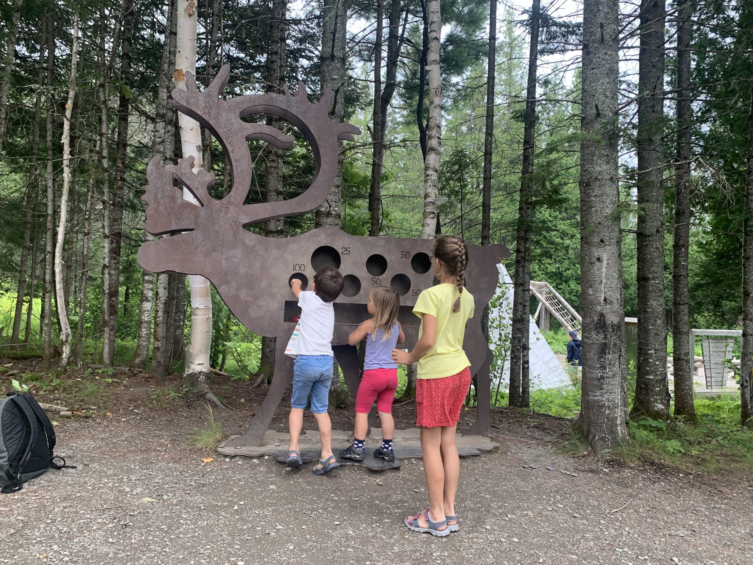 Nous avions juste commencé le parcours ludique quand l’averse est arrivée. Heureusement, nous avons pu nous réfugier au sec, et après quelques jeux, la pluie s’était arrêtée. Les enfants ont pu retourner profiter du parcours, avant que nous reprenions la route direction le New Brunswick !