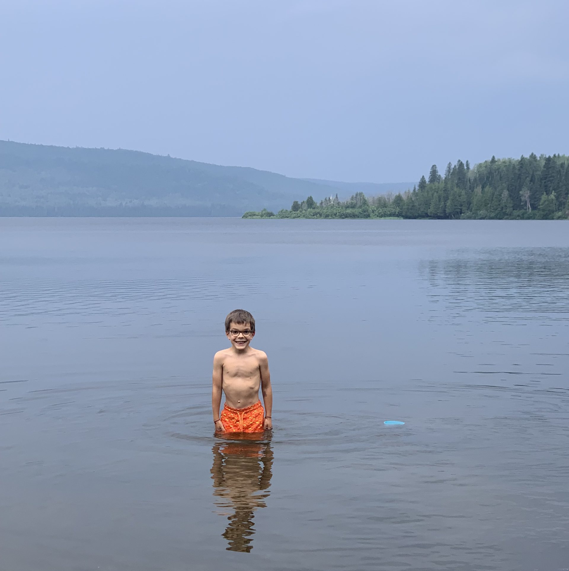 Nous avons beaucoup tourné pour arriver au parc du lac Temiscouata ! Les itinéraires proposés par Google étaient inexistants, et le parc particulièrement difficile d’accès, mais nous avons fini par y arriver ! Picnic au bord du lac puis plage.