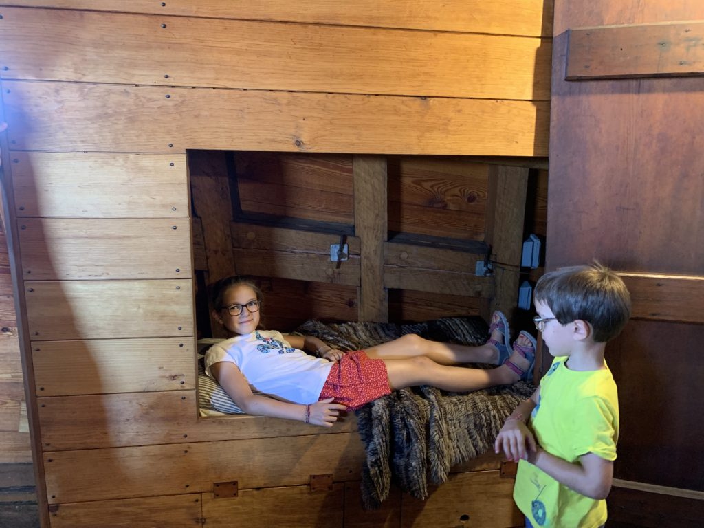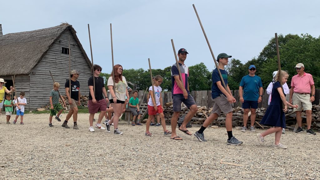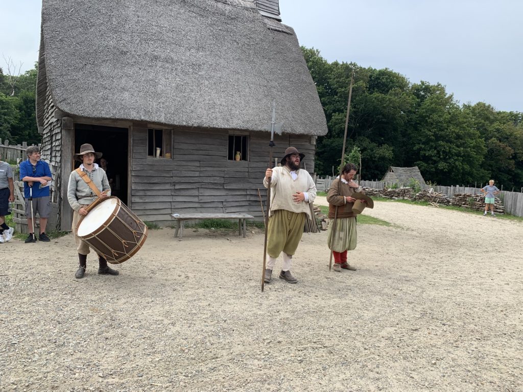 Nous avons donc visité le village reconstitué de Plymouth de l’an 1627, où l’on peut interagir avec des acteurs costumés. Nous avons par exemple aidé une habitante à récolter des graines d’épinards. Ou encore fait un entrainement de maniement d’armes avec d’autres villageois.