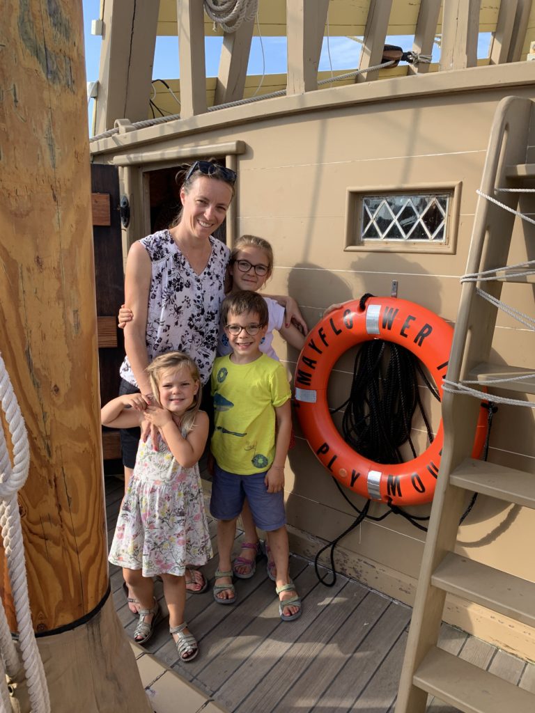 Sur la route entre Boston et Cape Cod, nous nous sommes arrêtés à Plymouth. En 1620, après avoir traversé l’Atlantique à bord du Mayflower et accosté à Cape Cod au lieu de New York, puis erré plusieurs semaines à la recherche d’un endroit accueillant, les pèlerins ont débarqué ici. Ils y ont trouvé un village abandonné par les Wampanoag quelques années auparavant (tous morts d’une épidémie). Ils ont fondé l’un des plus vieux villages des États-Unis, et malgré le fort taux de mortalité le premier hiver, notamment grâce à l’aide des autochtones (dont les remerciements sont à l’origine de Thanksgiving), la colonie a perduré.