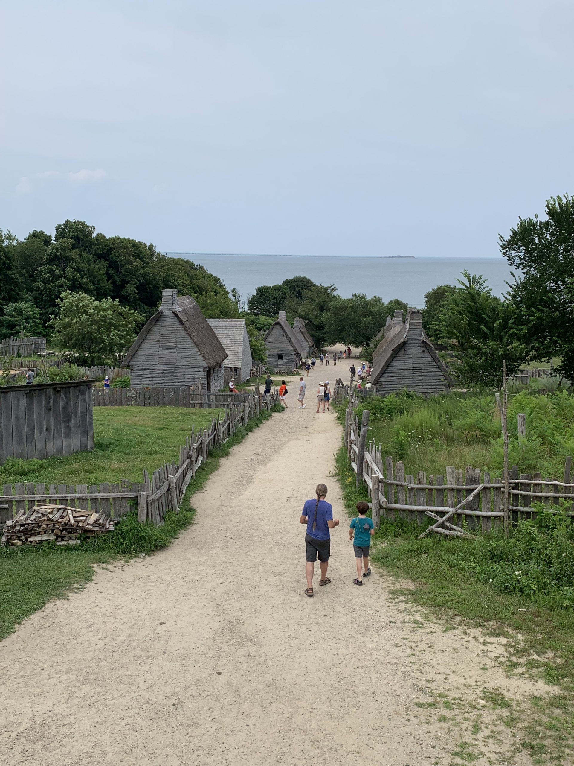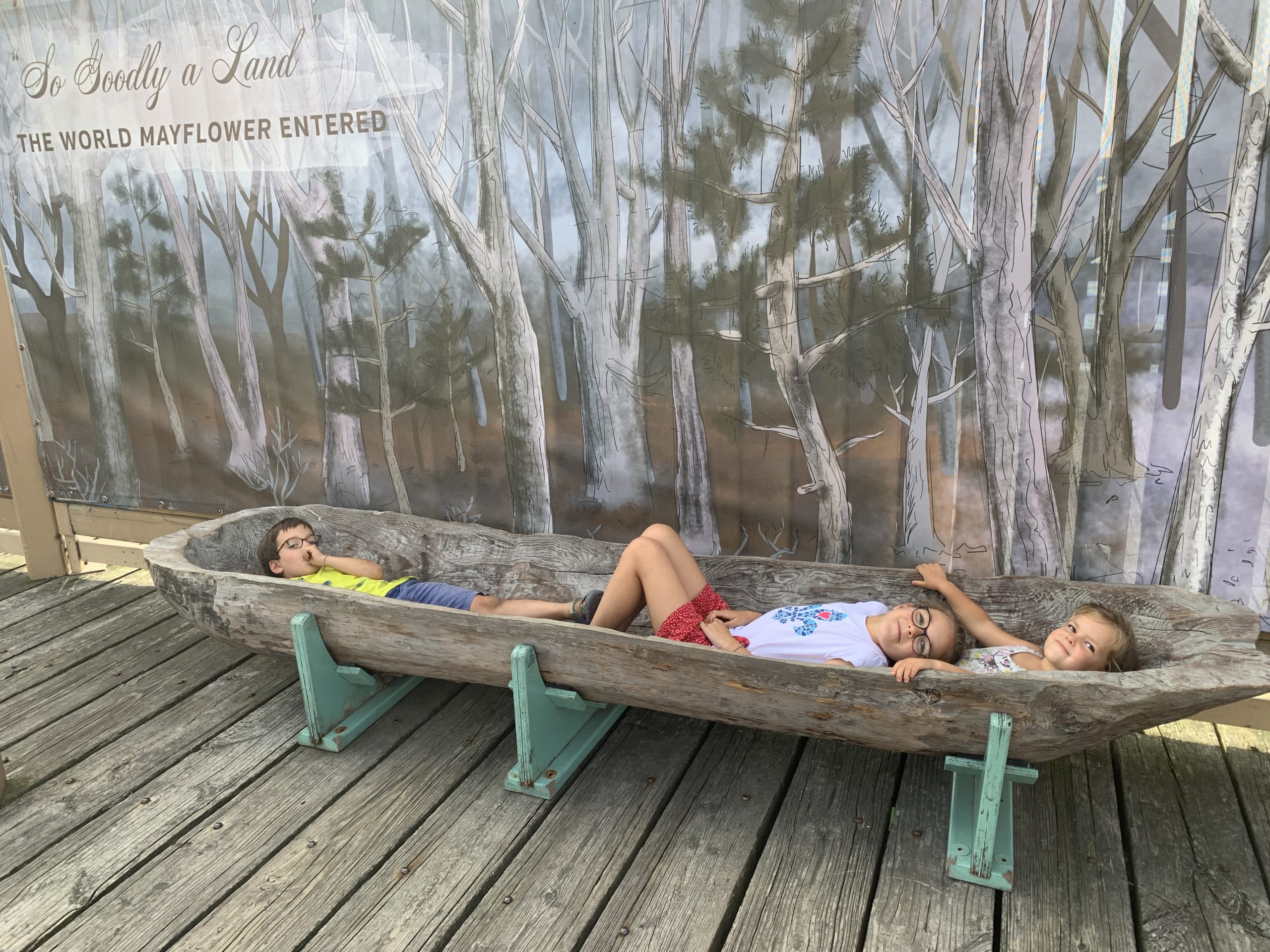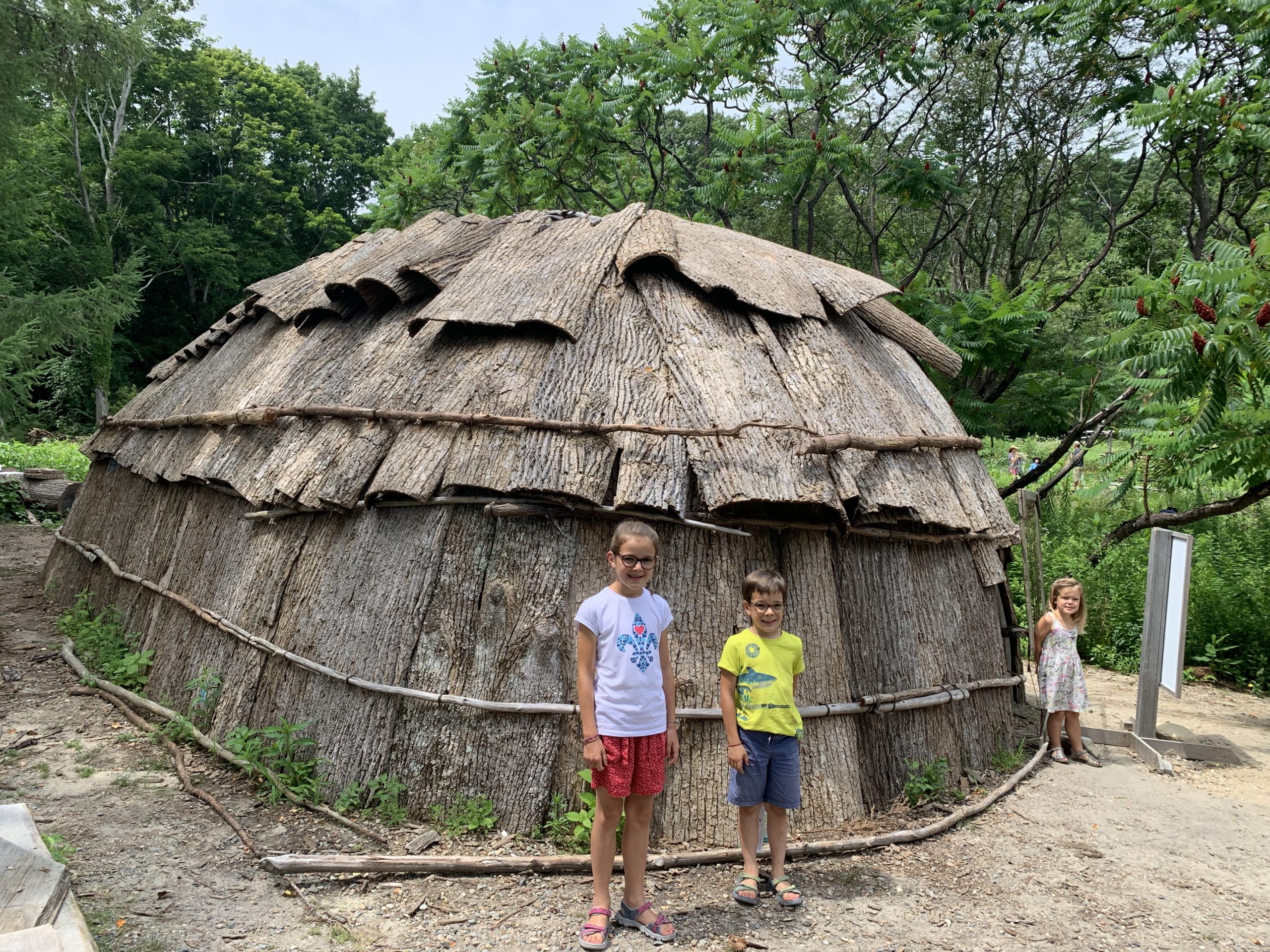 Sur la route entre Boston et Cape Cod, nous nous sommes arrêtés à Plymouth. En 1620, après avoir traversé l’Atlantique à bord du Mayflower et accosté à Cape Cod au lieu de New York, puis erré plusieurs semaines à la recherche d’un endroit accueillant, les pèlerins ont débarqué ici. Ils y ont trouvé un village abandonné par les Wampanoag quelques années auparavant (tous morts d’une épidémie). Ils ont fondé l’un des plus vieux villages des États-Unis, et malgré le fort taux de mortalité le premier hiver, notamment grâce à l’aide des autochtones (dont les remerciements sont à l’origine de Thanksgiving), la colonie a perduré.