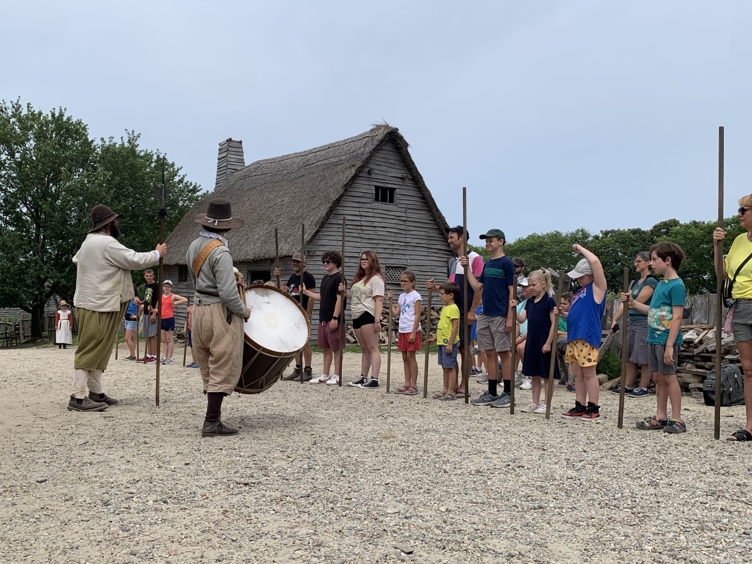Nous avons donc visité le village reconstitué de Plymouth de l’an 1627, où l’on peut interagir avec des acteurs costumés. Nous avons par exemple aidé une habitante à récolter des graines d’épinards. Ou encore fait un entrainement de maniement d’armes avec d’autres villageois.