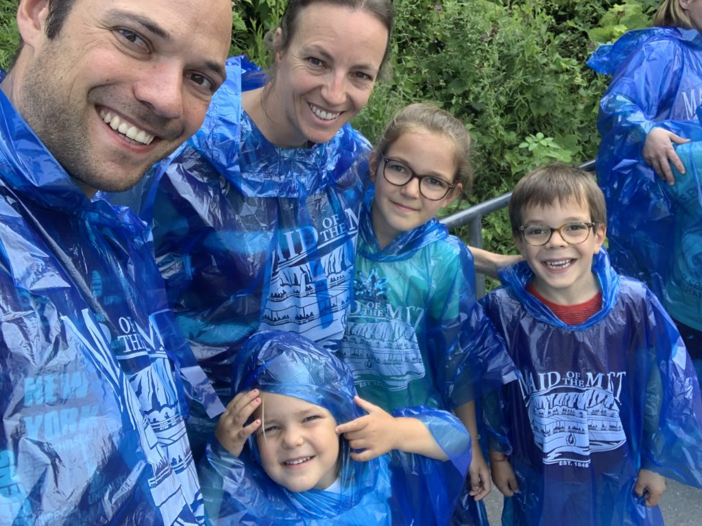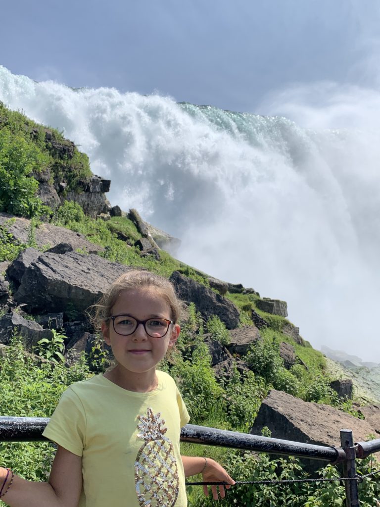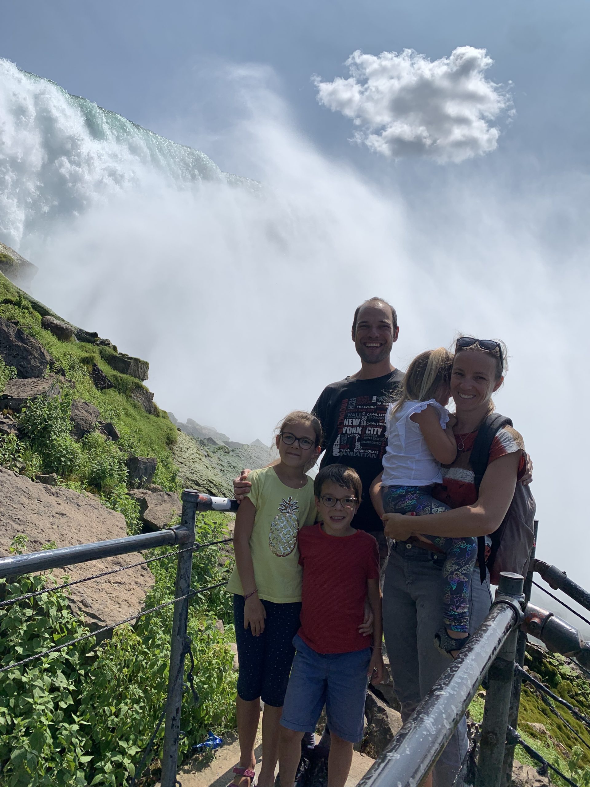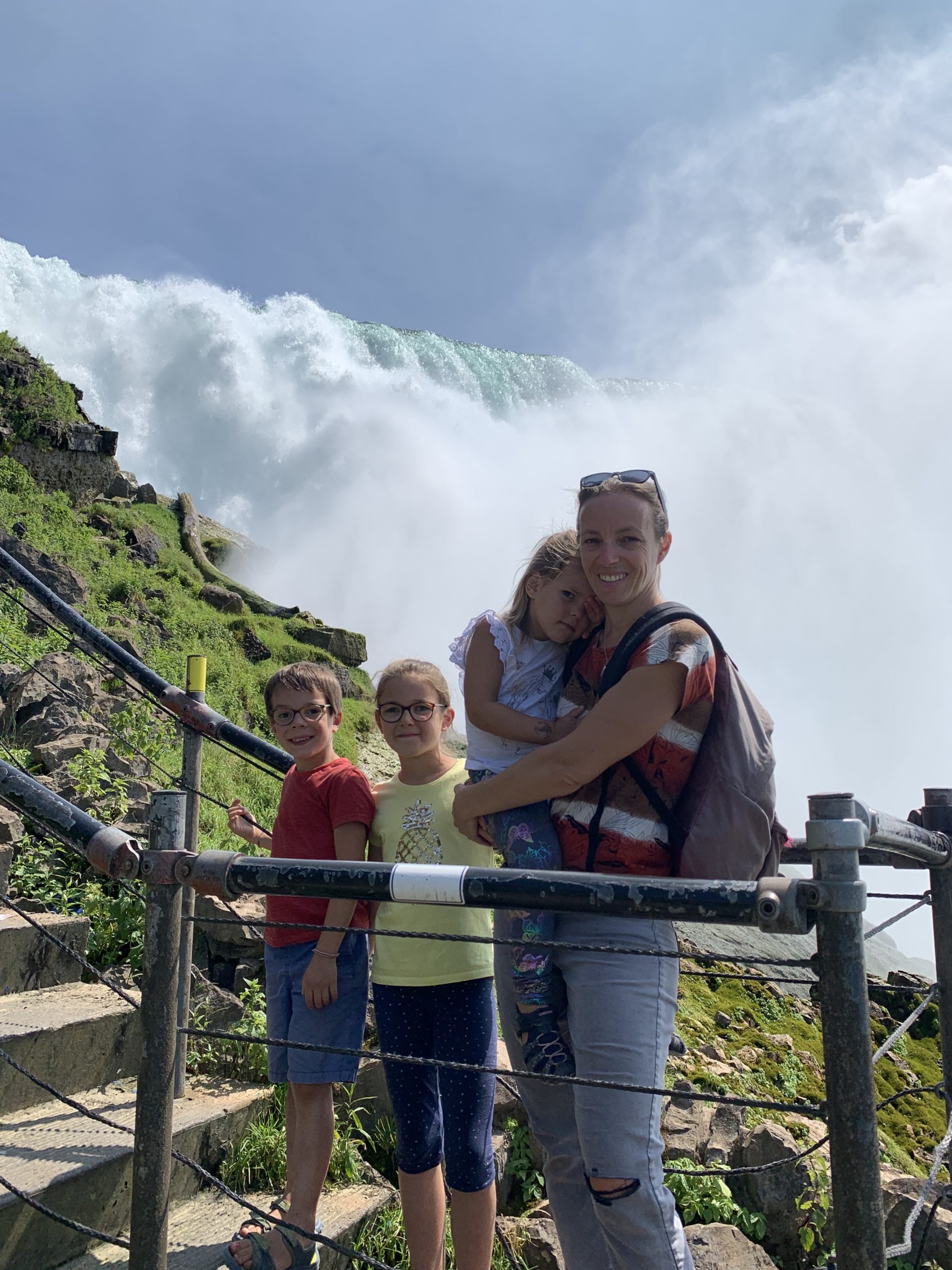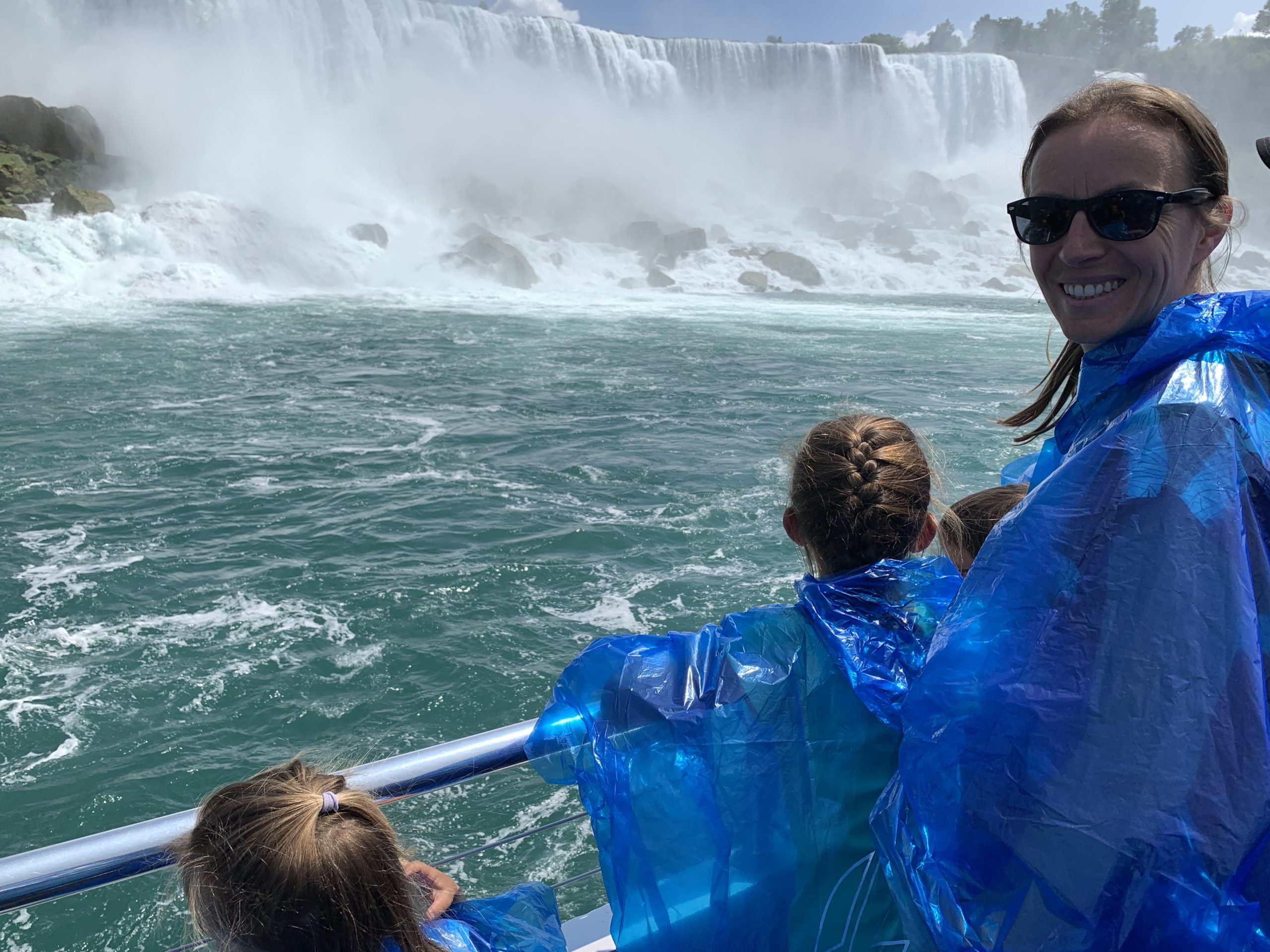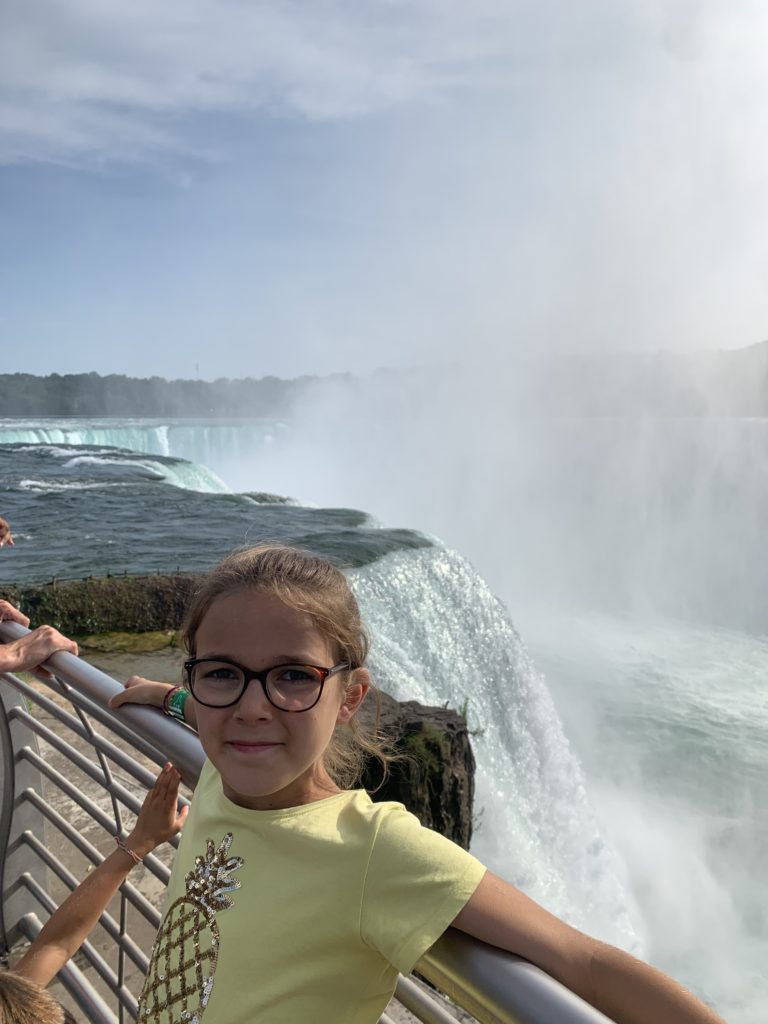 Nous avons fait le tour en bateau depuis le côté américain, avec des manteau bleus (les américains étaient rouges). Les enfants ont été très impressionnés de la vue des chutes, mais pas tellement ravis de prendre leur douche (pourtant bien utile 😉 ).