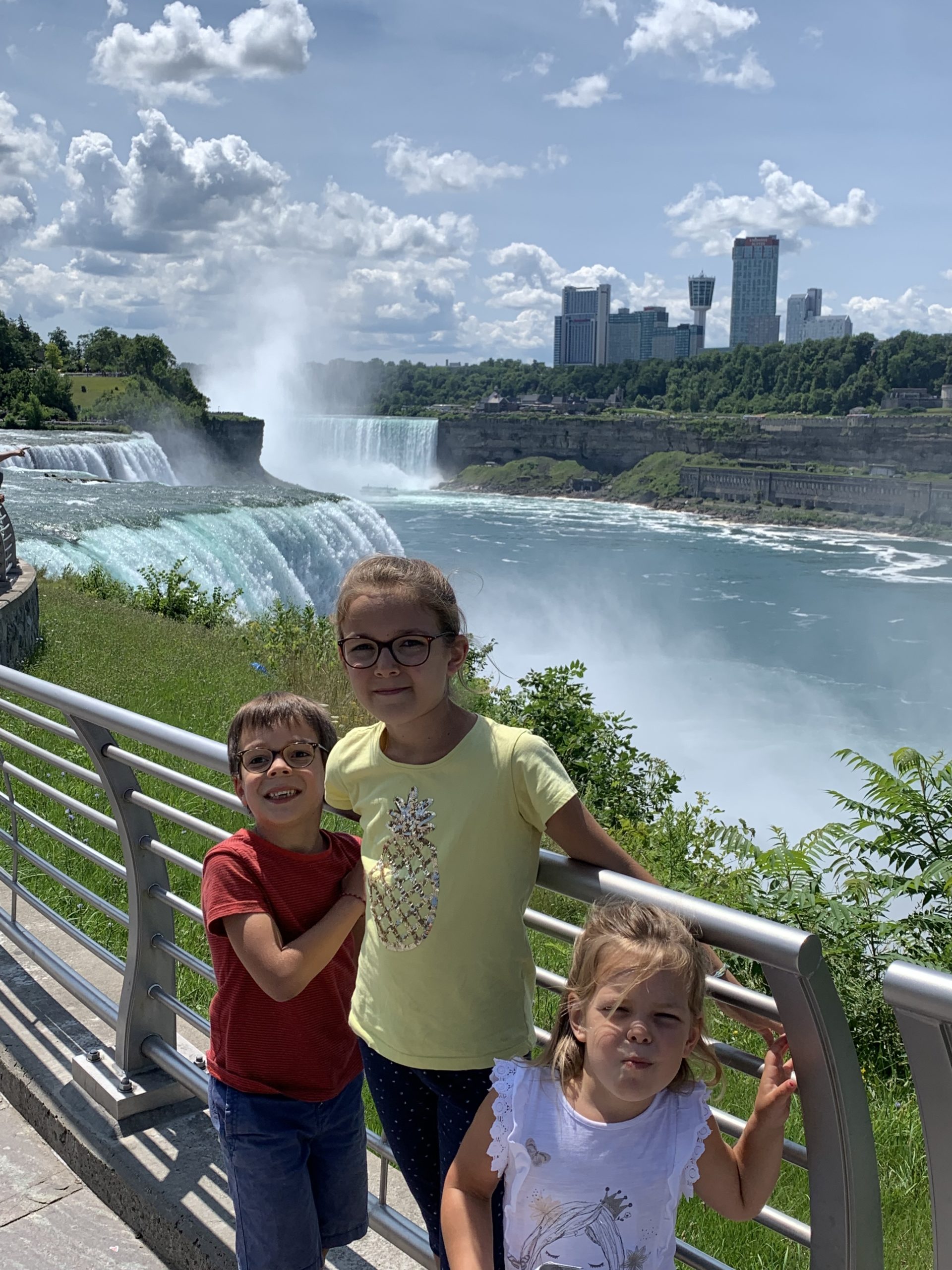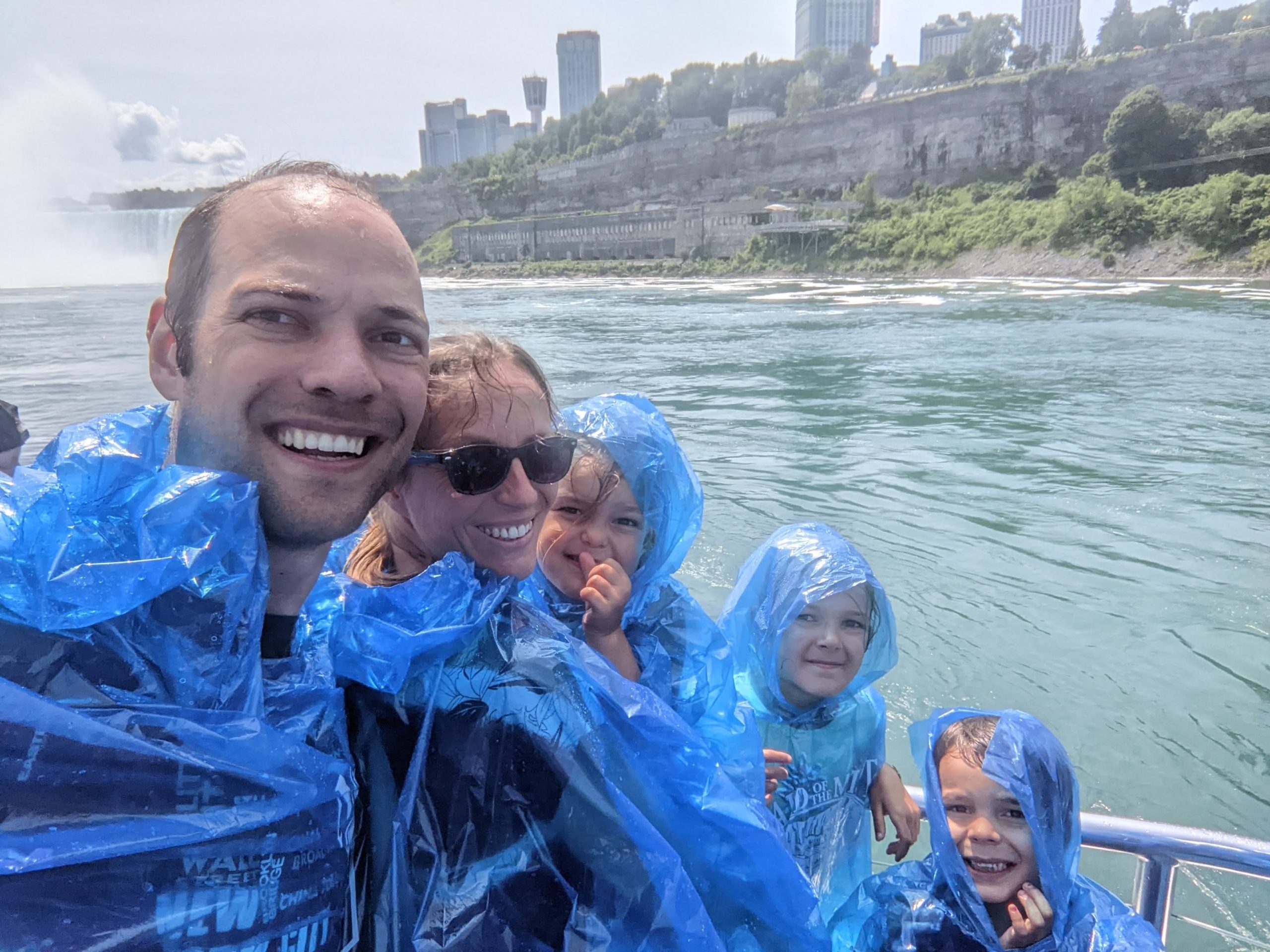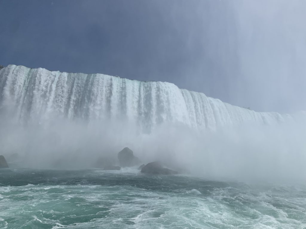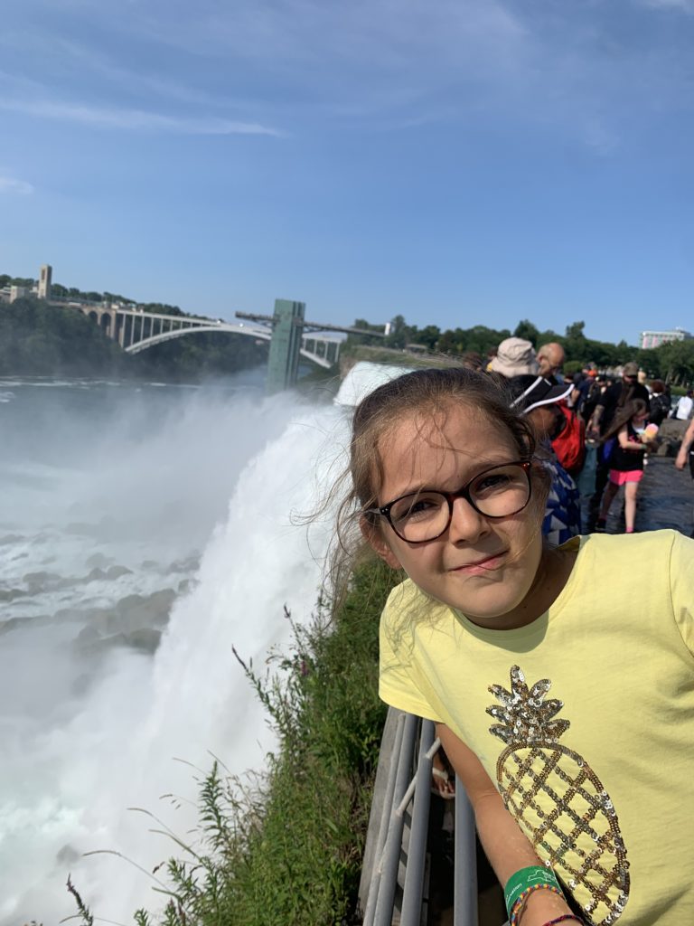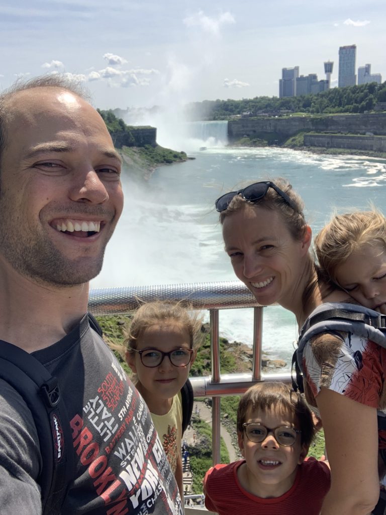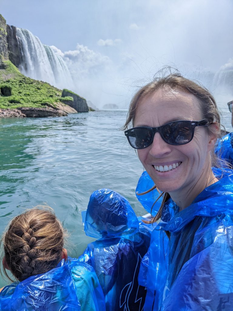 Nous avons fait le tour en bateau depuis le côté américain, avec des manteau bleus (les américains étaient rouges). Les enfants ont été très impressionnés de la vue des chutes, mais pas tellement ravis de prendre leur douche (pourtant bien utile 😉 ).