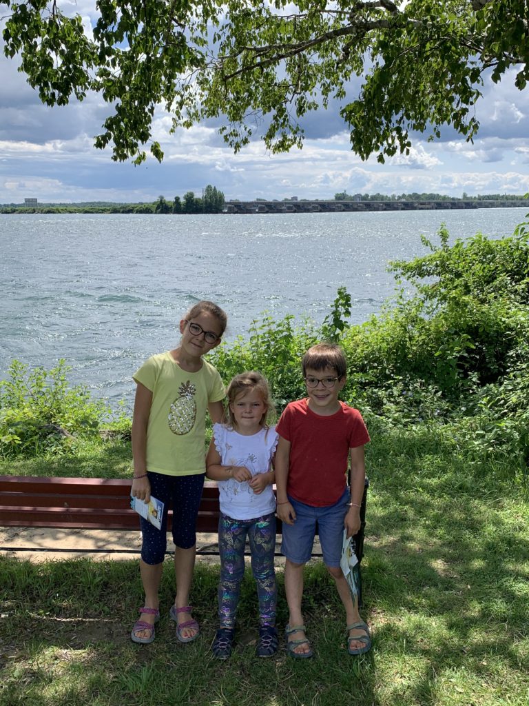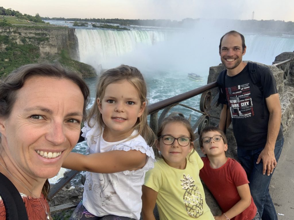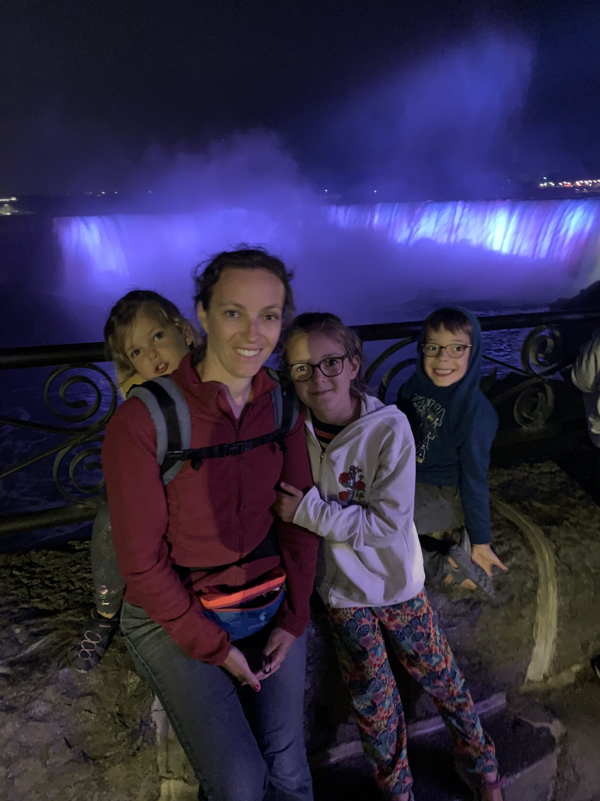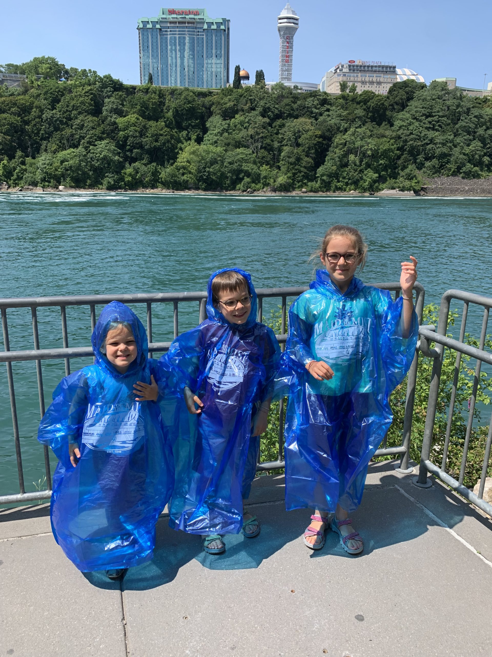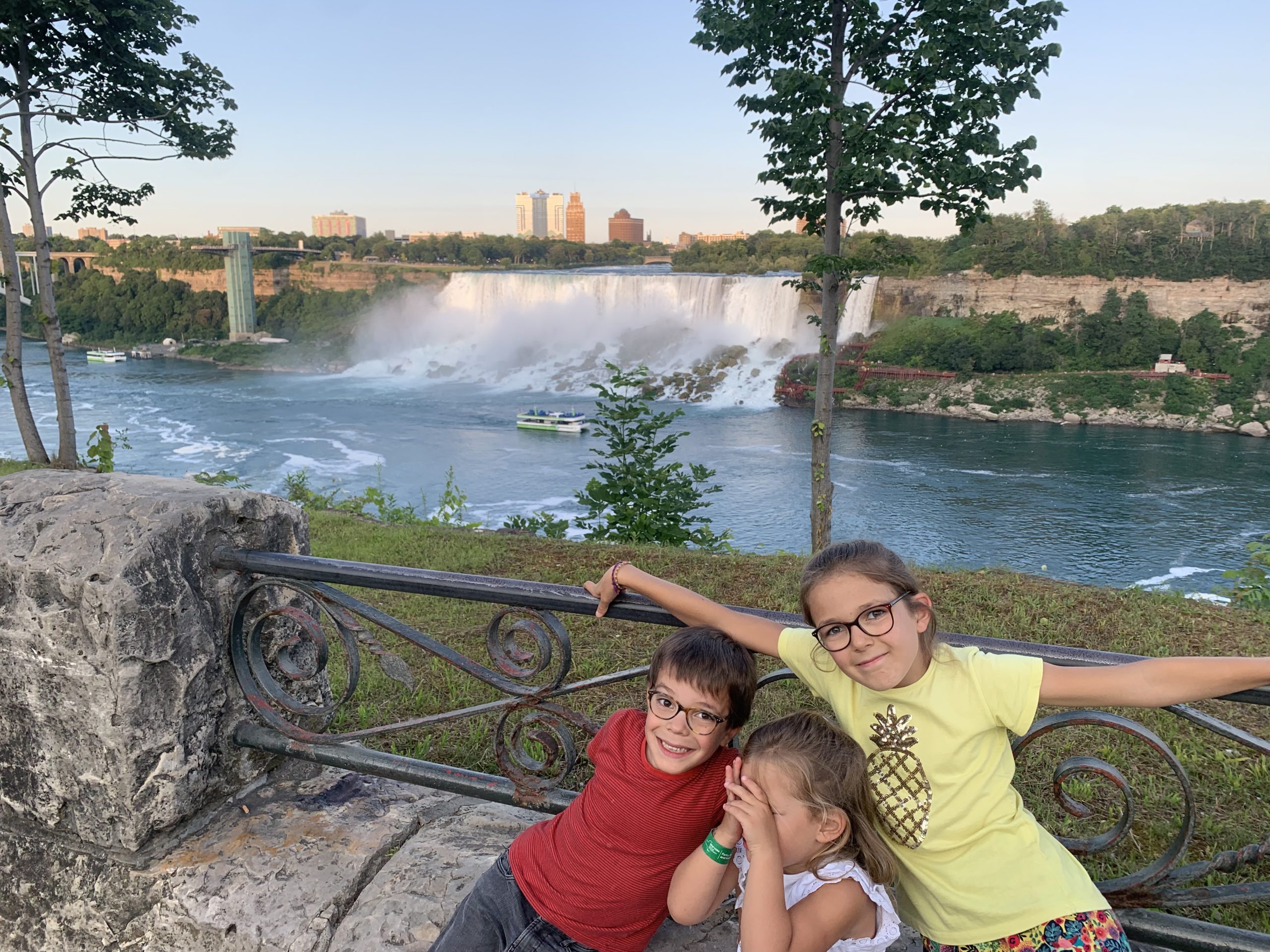 Nous avons fait le tour en bateau depuis le côté américain, avec des manteau bleus (les américains étaient rouges). Les enfants ont été très impressionnés de la vue des chutes, mais pas tellement ravis de prendre leur douche (pourtant bien utile 😉 ).