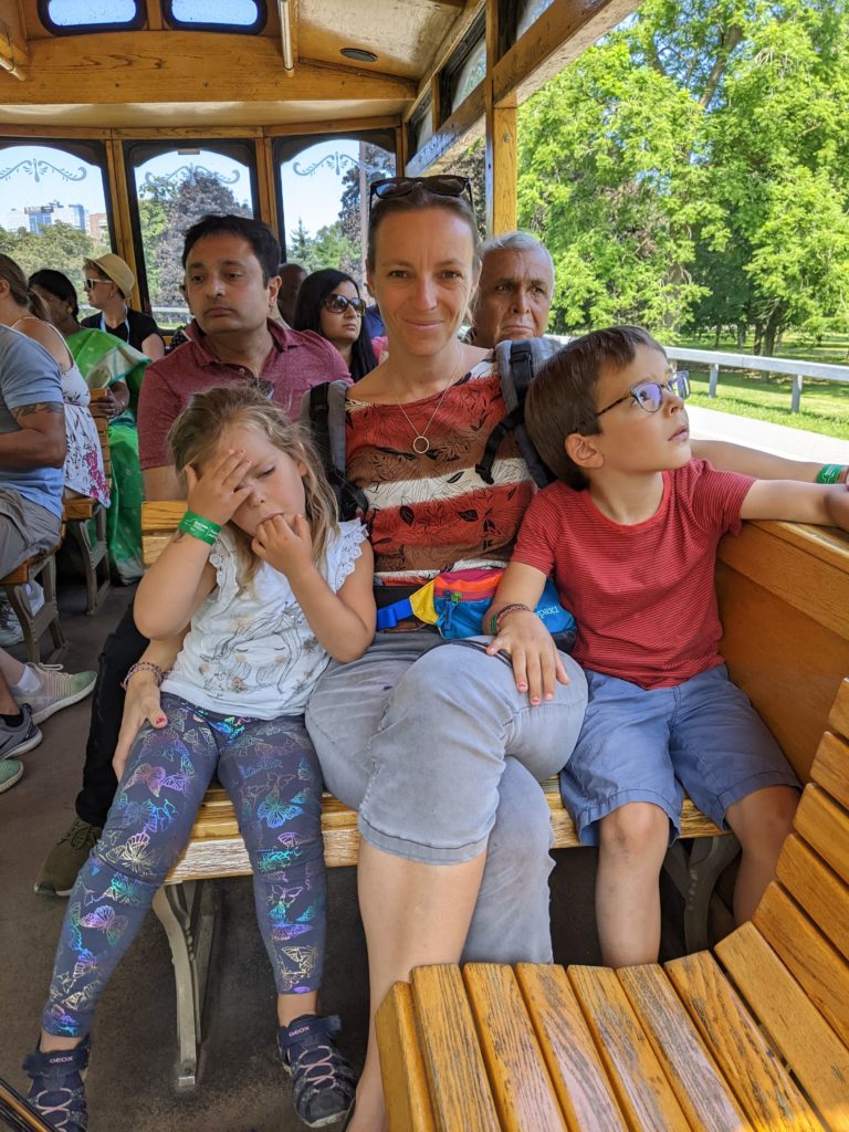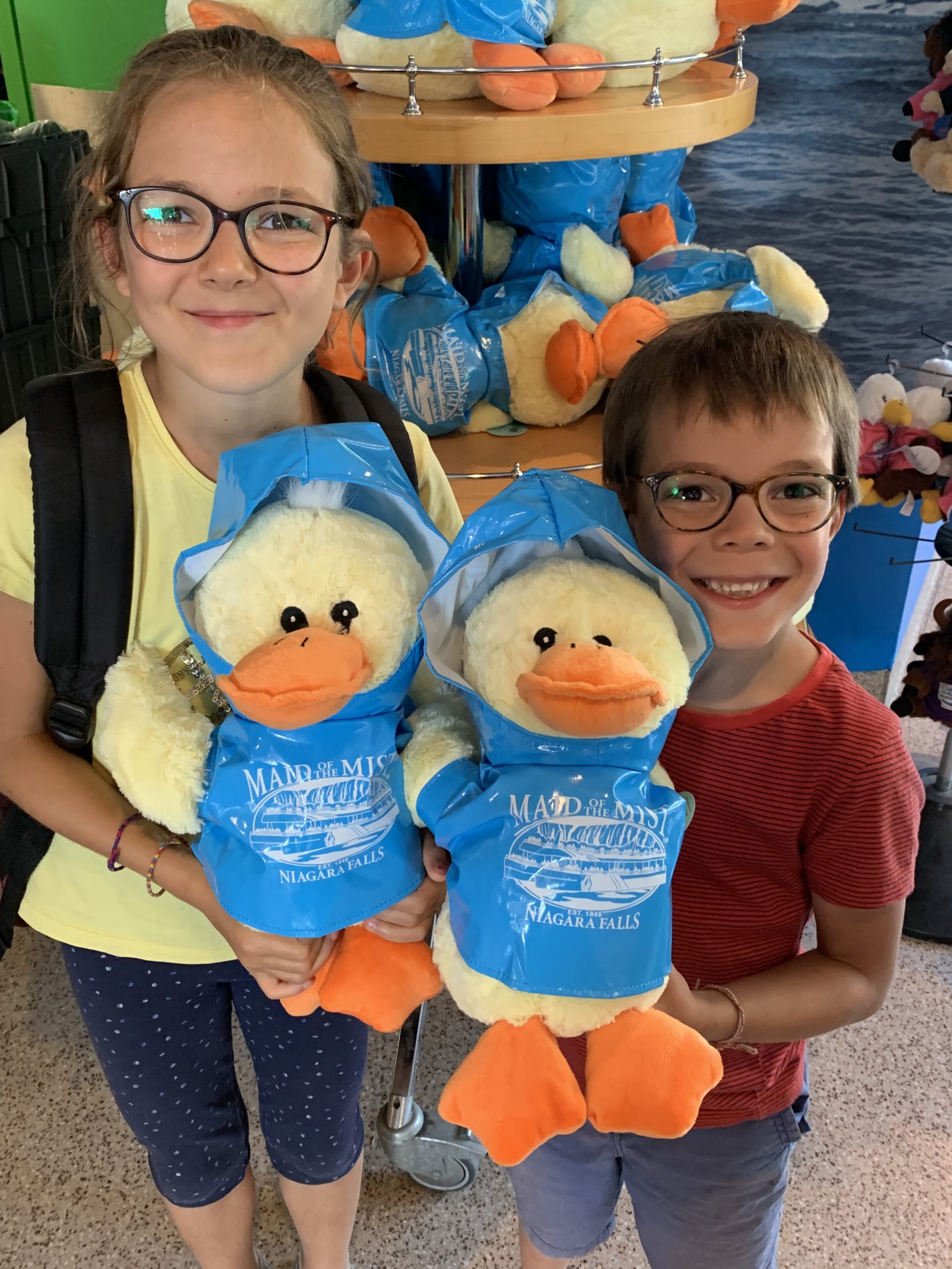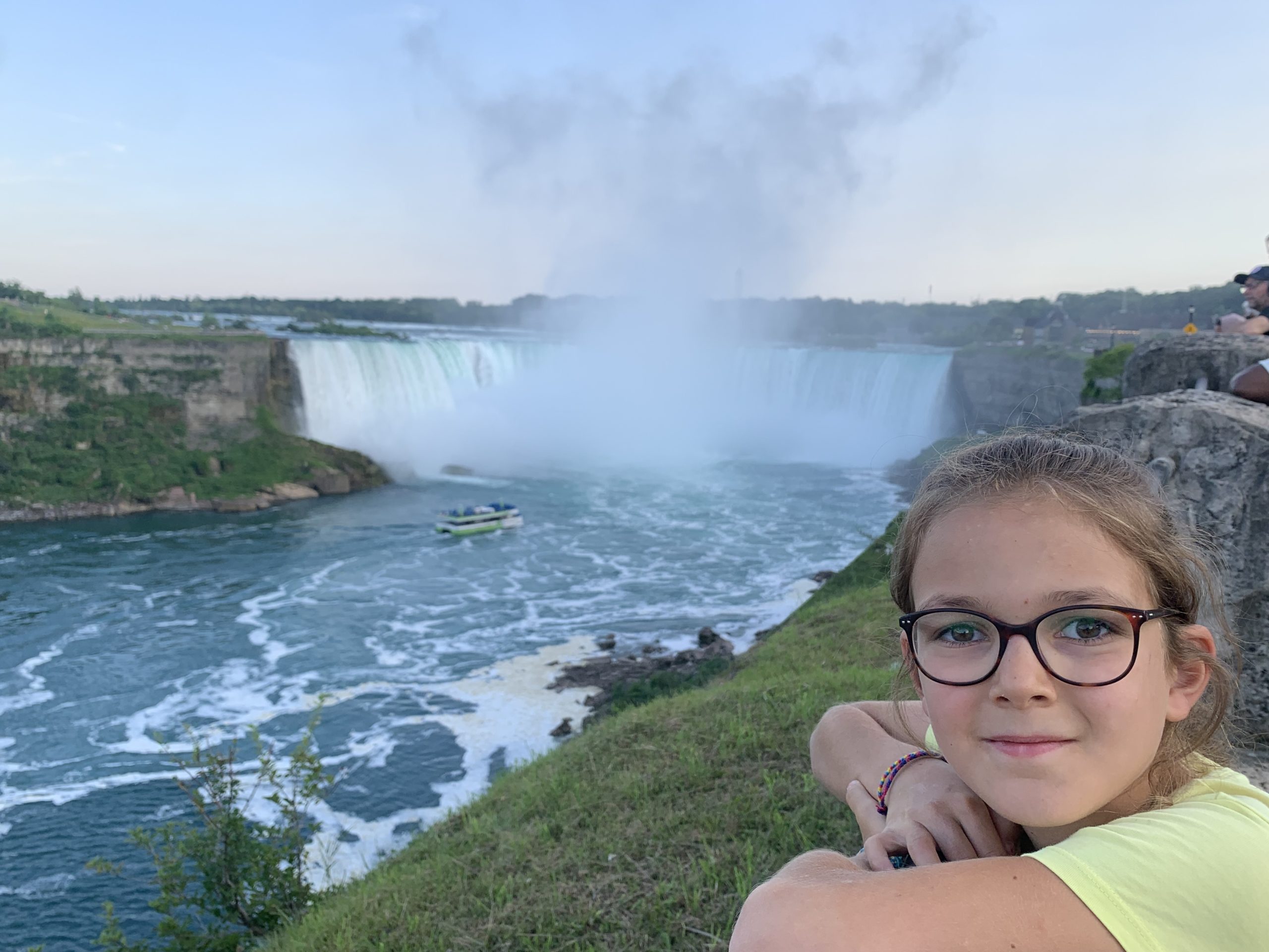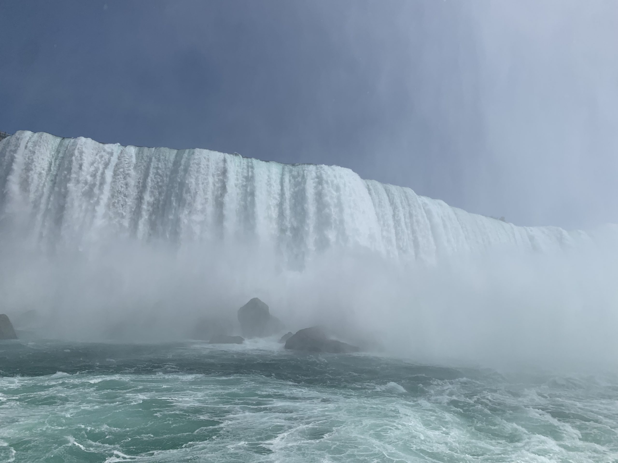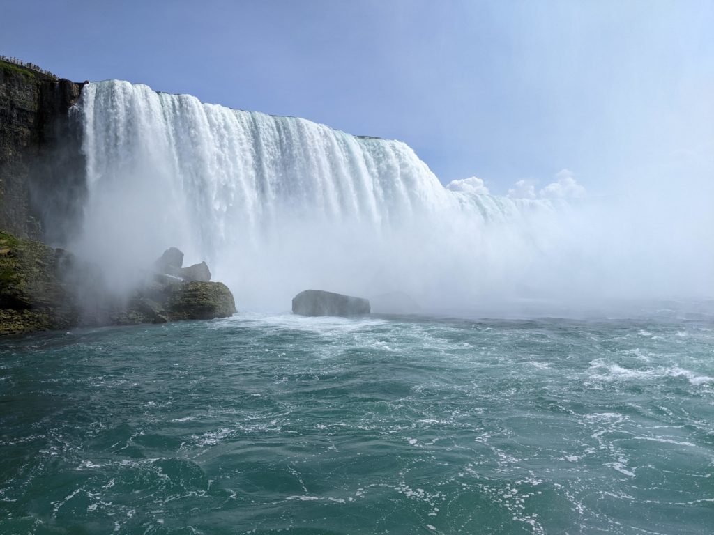 Nous avons fait le tour en bateau depuis le côté américain, avec des manteau bleus (les américains étaient rouges). Les enfants ont été très impressionnés de la vue des chutes, mais pas tellement ravis de prendre leur douche (pourtant bien utile 😉 ).