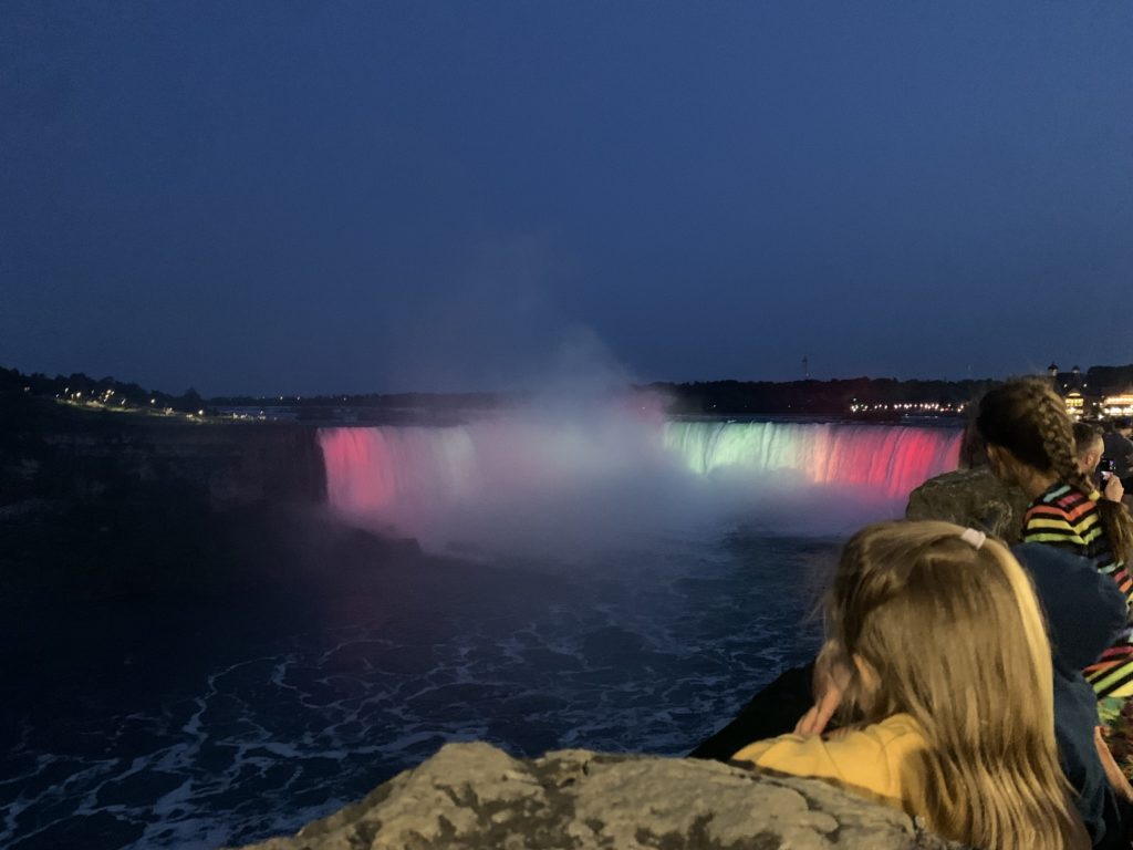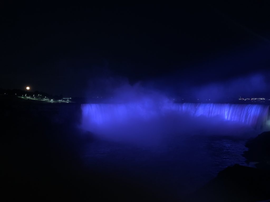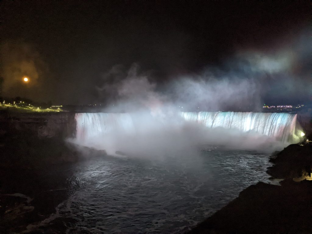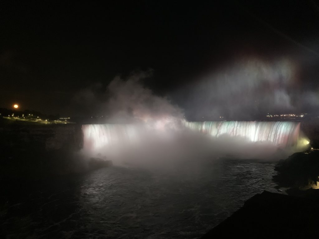 Nous avons traversé le pont et passé la frontière pour nous garer un peu plus loin. La vue des chutes depuis le côté canadien est vraiment spectaculaire. Nous avons picniqué face aux chutes, en attendant le coucher du soleil, et le lever de la lune.