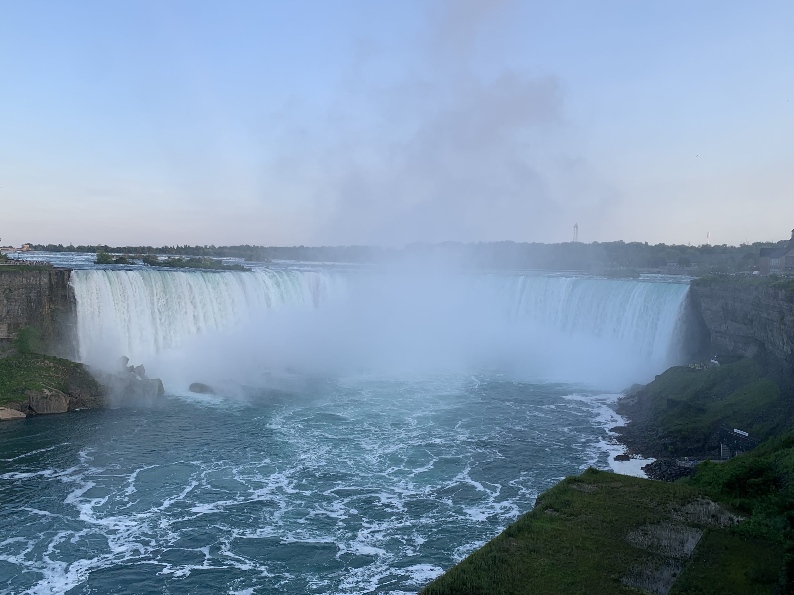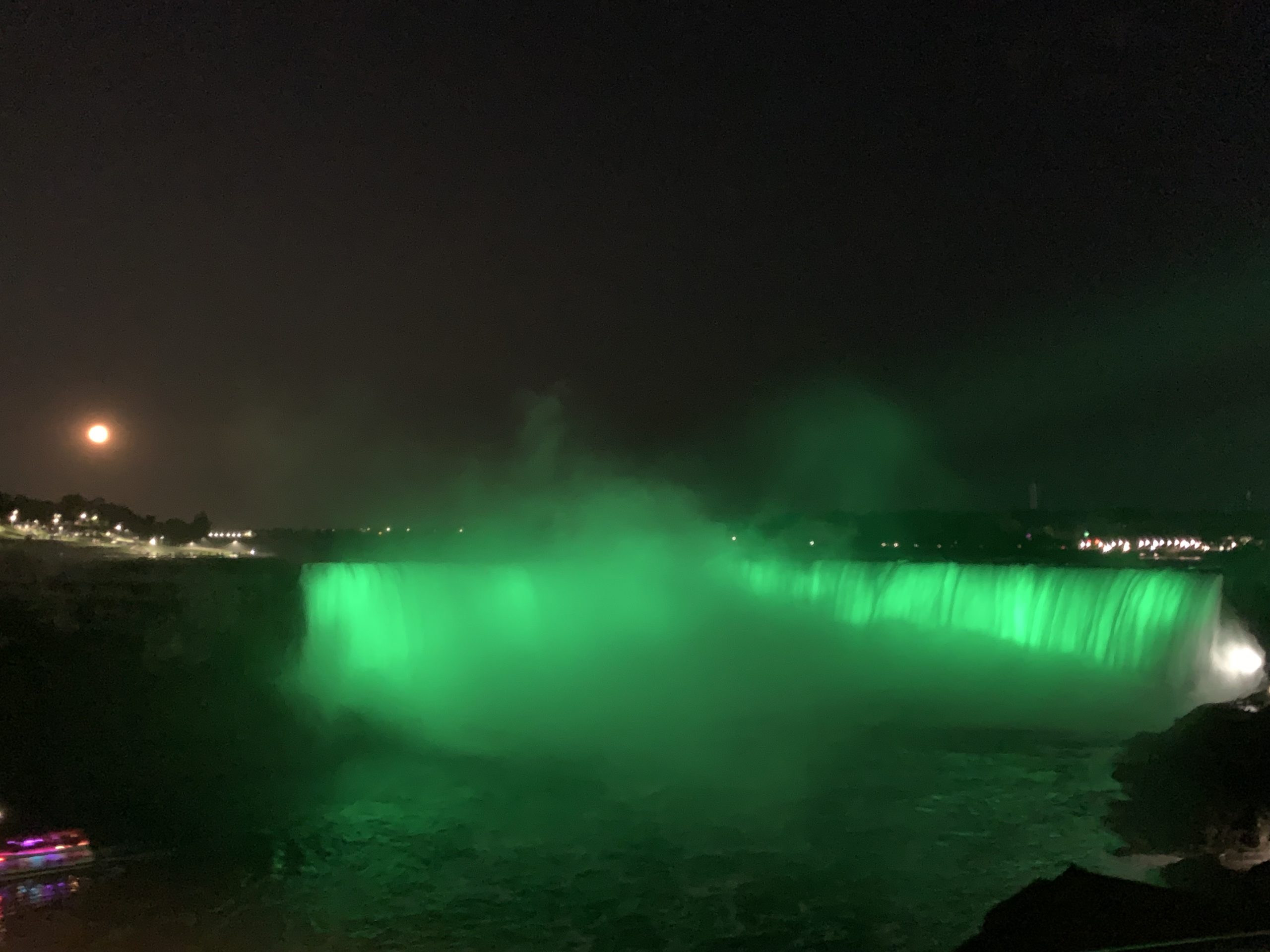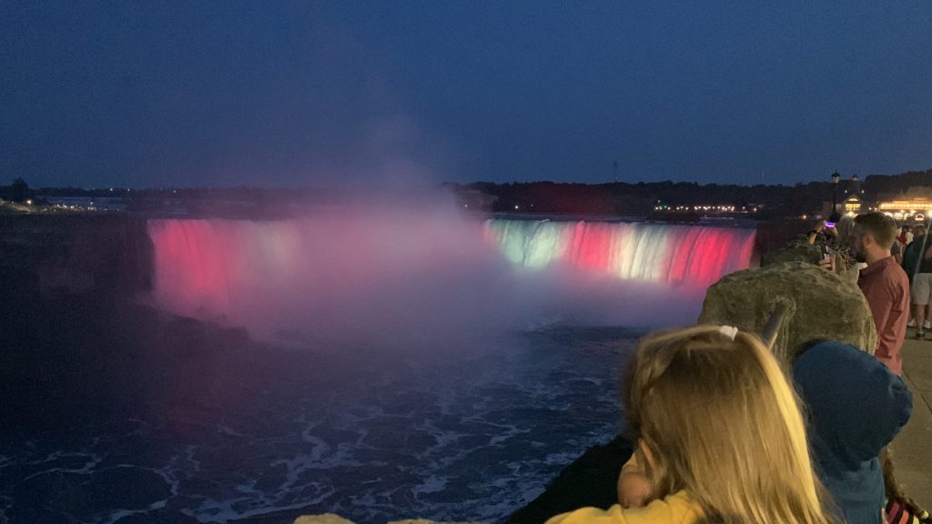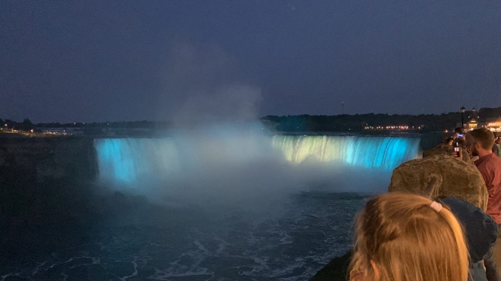 Nous avons traversé le pont et passé la frontière pour nous garer un peu plus loin. La vue des chutes depuis le côté canadien est vraiment spectaculaire. Nous avons picniqué face aux chutes, en attendant le coucher du soleil, et le lever de la lune.