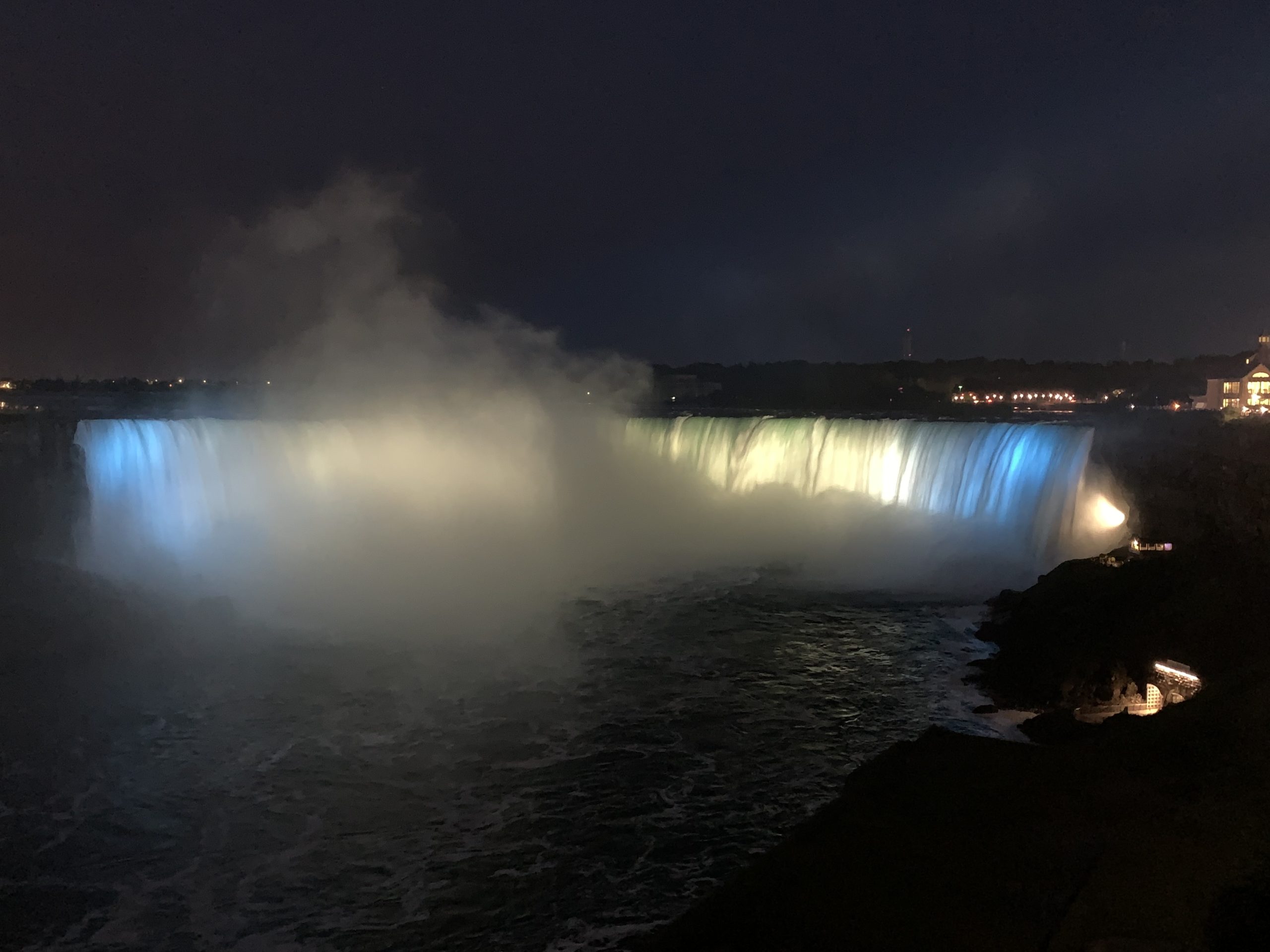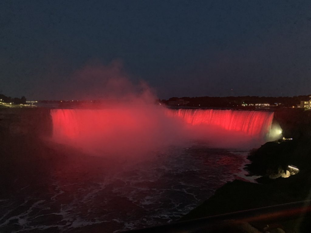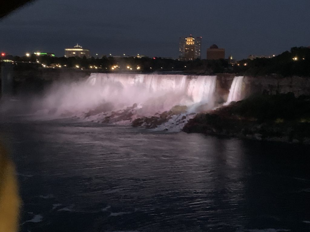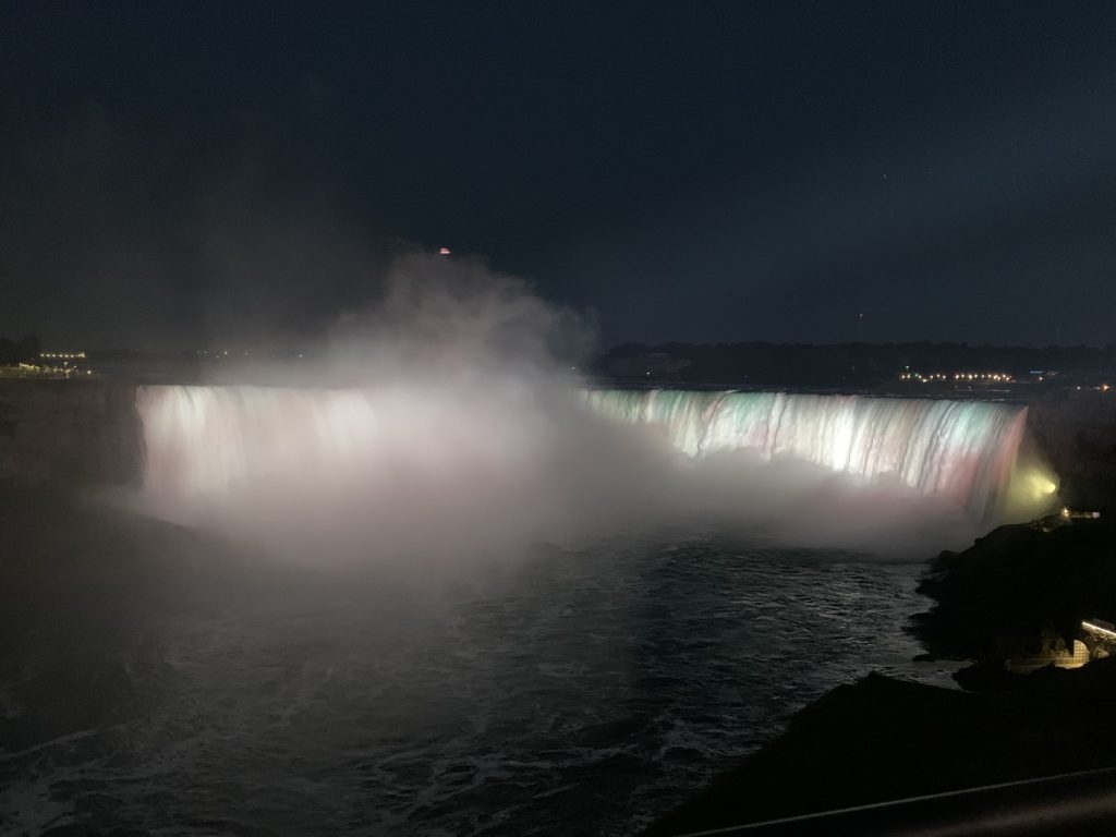 Nous avons ainsi pu profiter des illuminations noctunes, et pour finir du feu d’artifice (qui n’a duré que 10minutes et qui a été tiré non pas au dessus des chutes mais dans la vallée un peu en aval). Un beau spectacle !